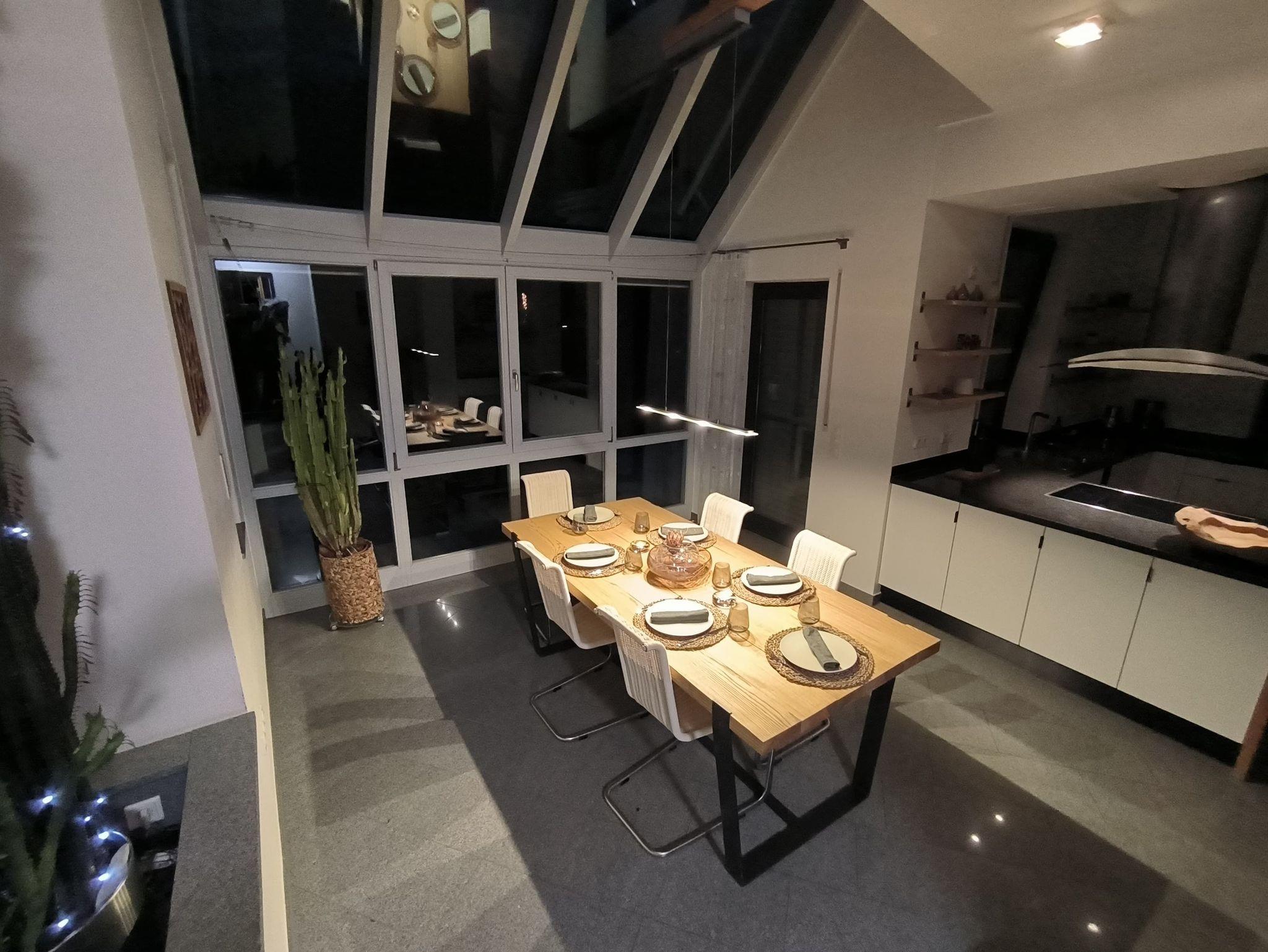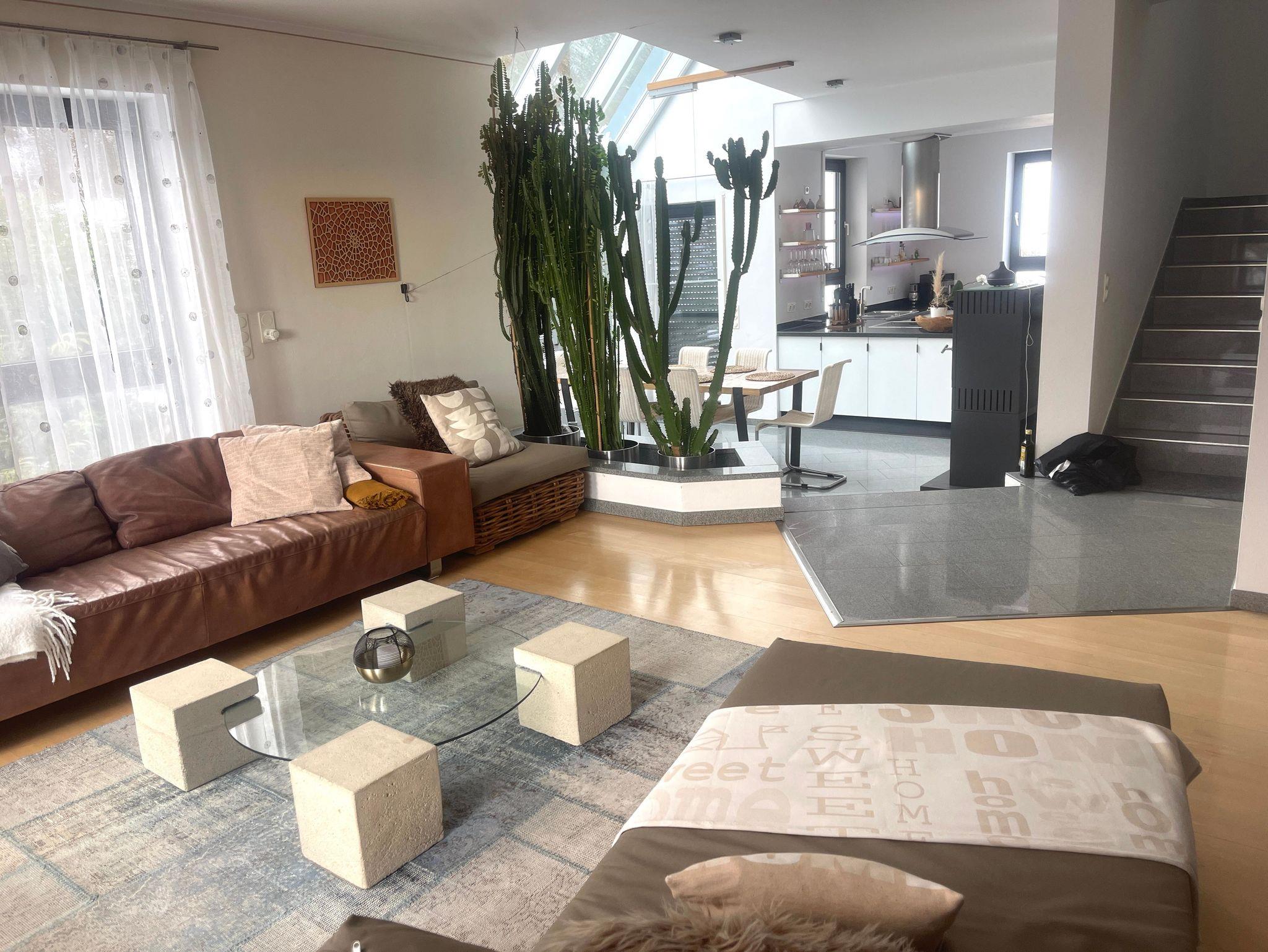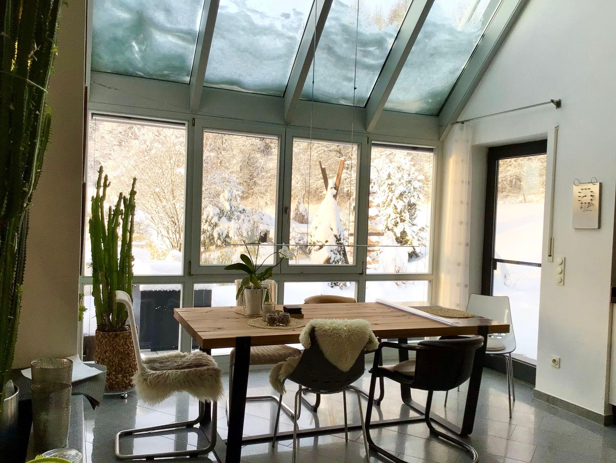 Die voll ausgestattete Küche fügt sich harmonisch in den offenen Wohn- und Essbereich ein und überzeugt mit Funktionalität und Stil. Großzügige Fenster und der angrenzende Wintergarten sorgen für ein helles, freundliches Ambiente. An kühlen Tagen schafft der Schwedenofen eine besonders gemütliche Atmosphäre - ideal für entspannte Abende daheim.