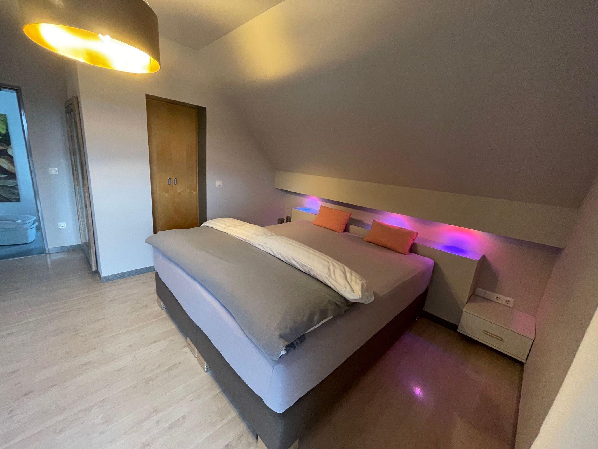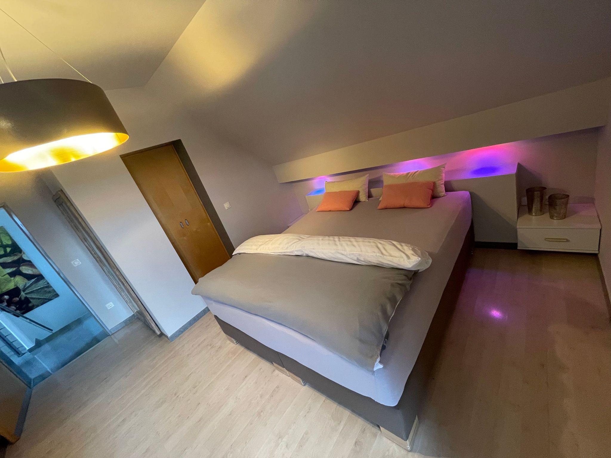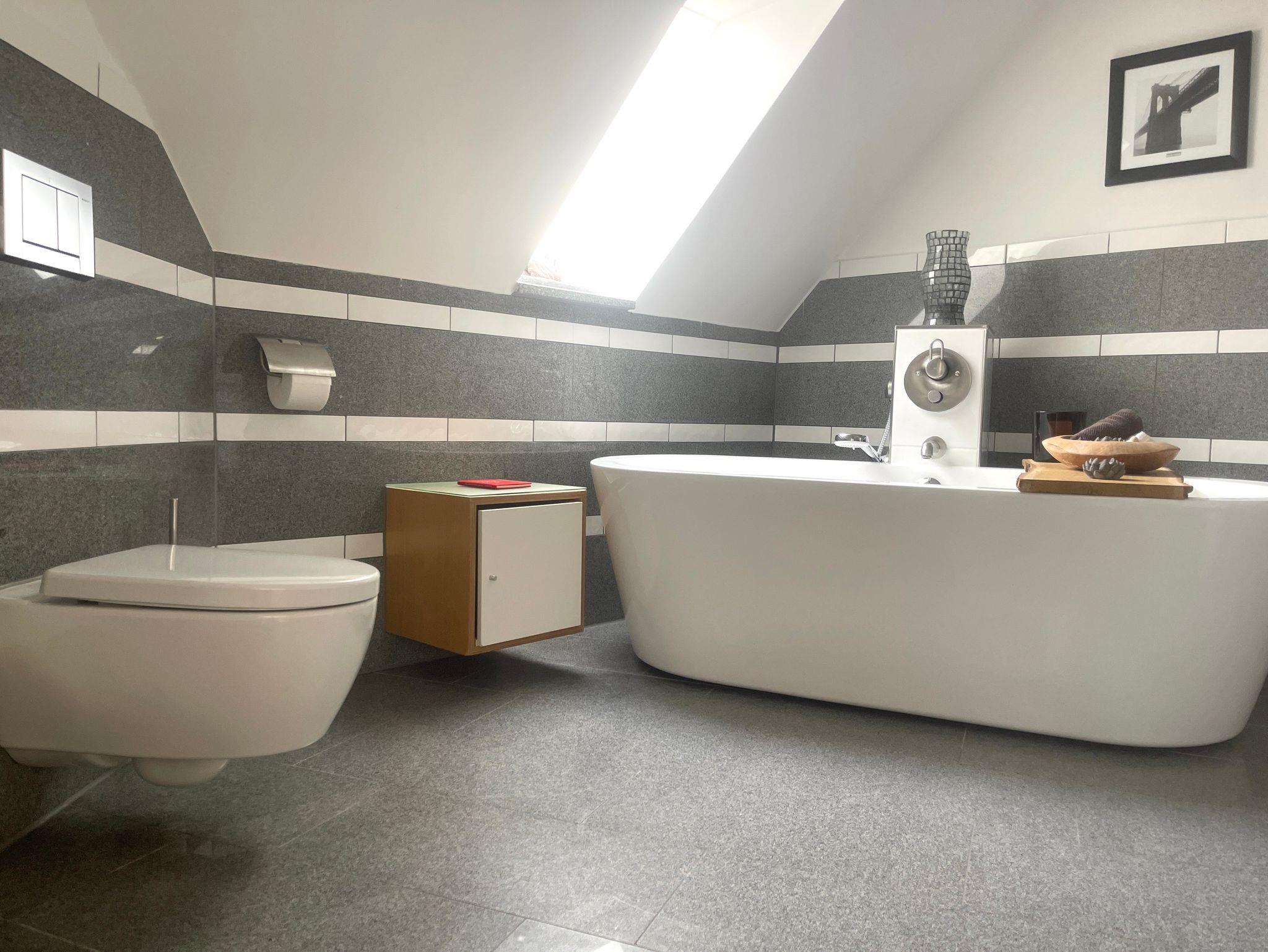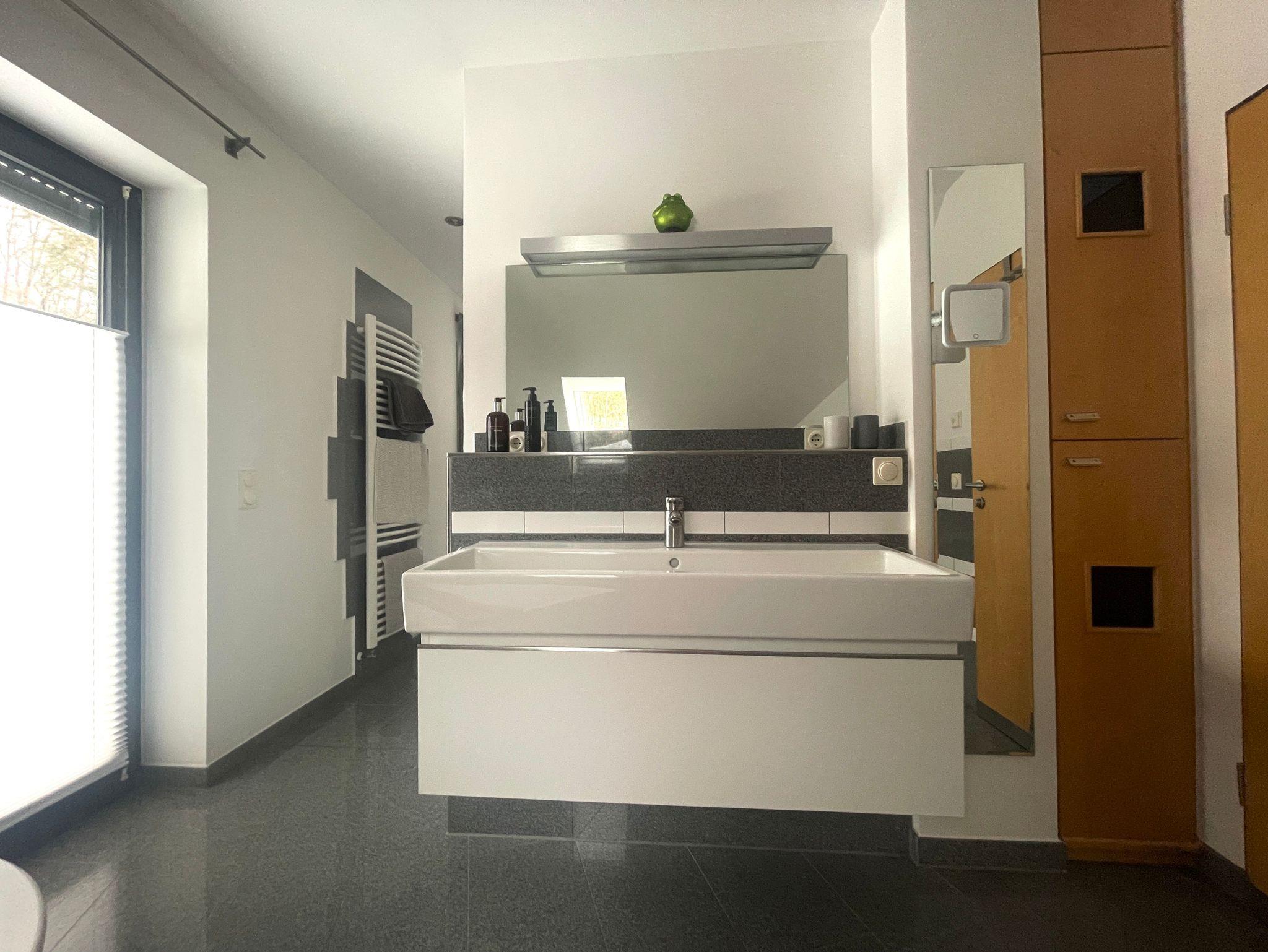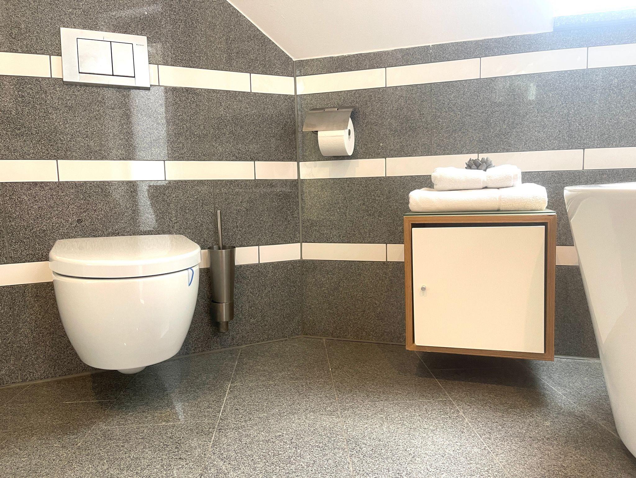 Im OG erwarten Sie drei helle und gemütliche Schlafzimmer sowie eine offene Galerie mit Blick in den Wohnbereich. Das moderne Badezimmer lässt keine Wünsche offen: Mit freistehender Badewanne, ebenerdiger Dusche und eigener Sauna wird Ihr Aufenthalt zum privaten Wellnesserlebnis.