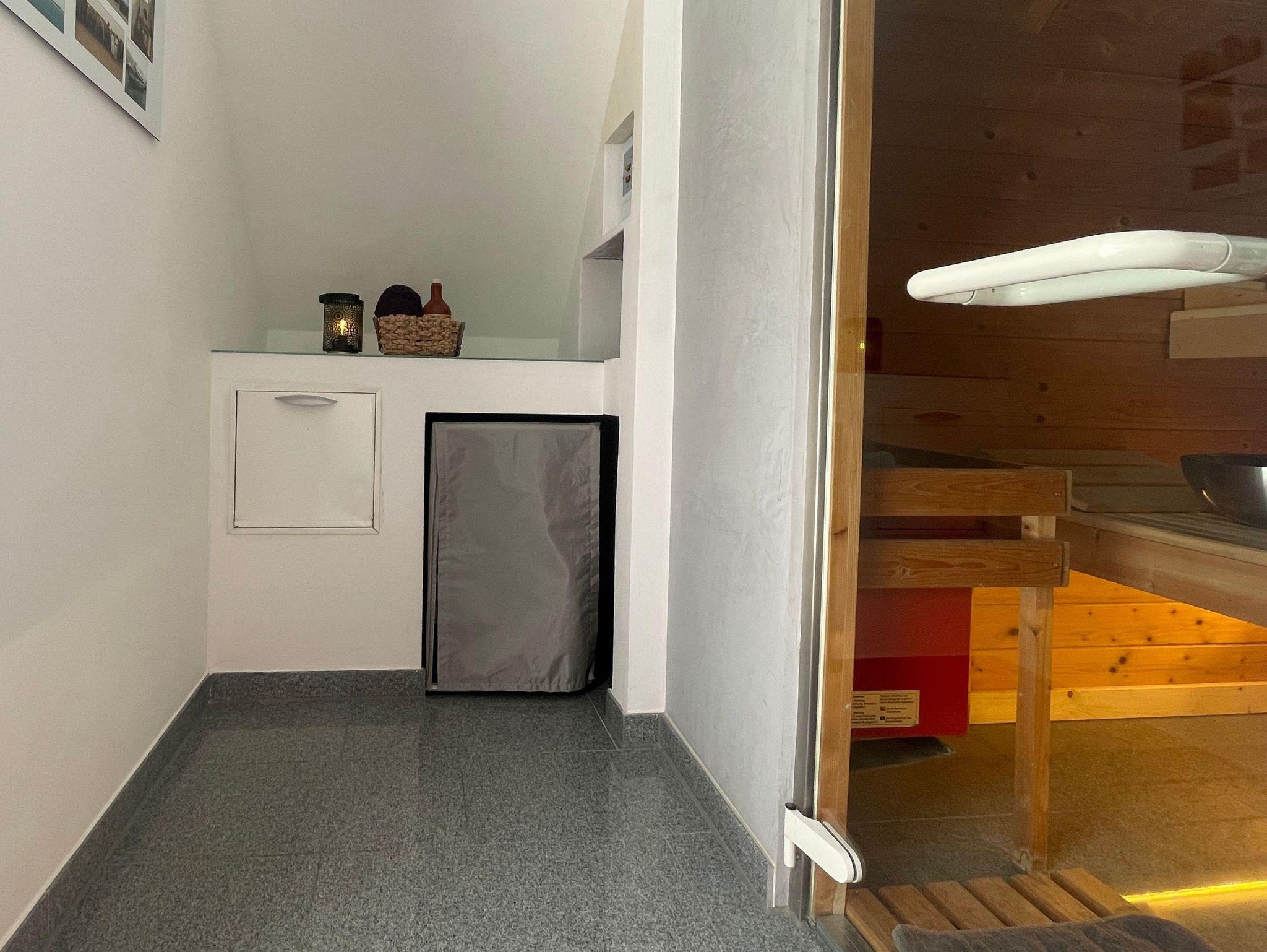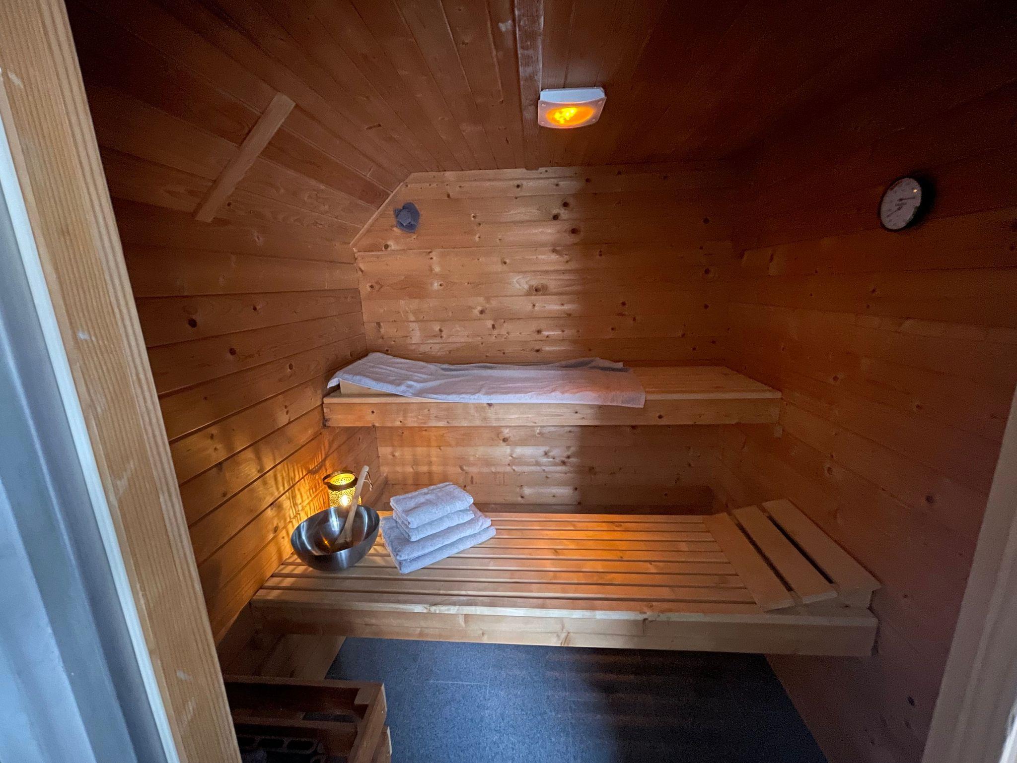Für die Benutzung der Sauna fällt eine geringe Gebühr vor Ort an.