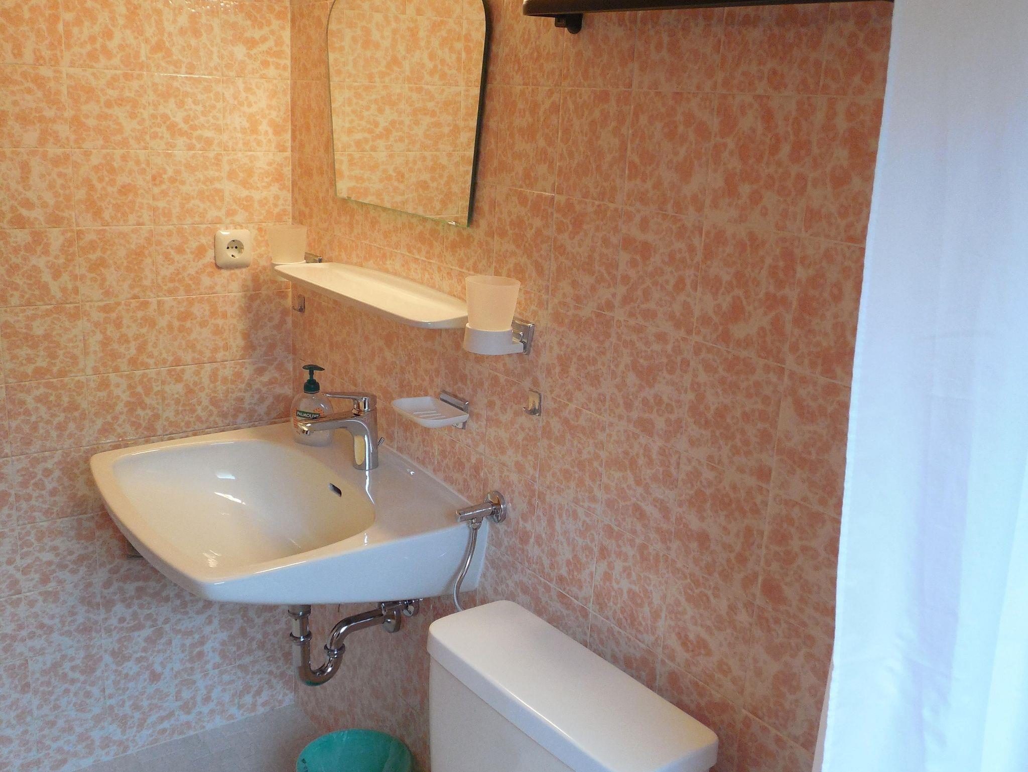 Ferienwohnung für 2-4 Personen im 1. Stock, Wohnküche mit Backofen, Geschirrspüler und 4-Plattenherd, Flachbild-Kabel-TV, Radio, 2 Schlafzimmer: 1 x mit Dusche/WC und 1 x mit Badewanne/WC, Rauchen nur auf dem Balkon möglich, kostenloses WLAN, Waschmaschine (Nutzung gegen Gebühr)