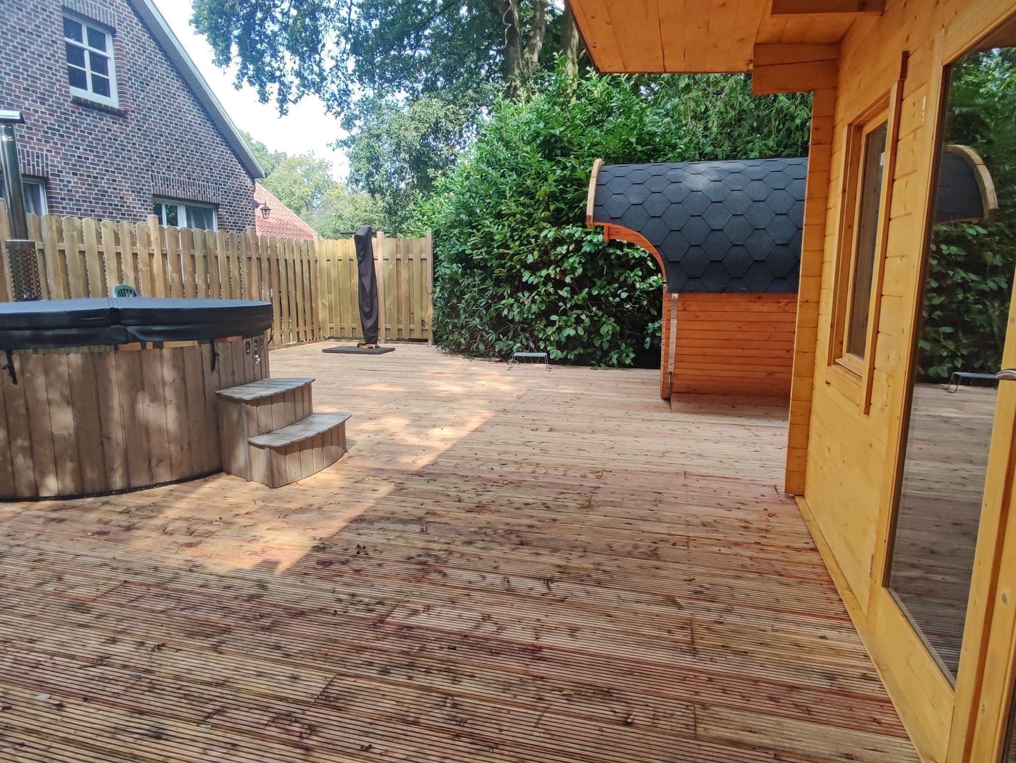 Und im Garten können Sie unsere zwei Terrassen in idyllischer Lage nutzen. Gartenmöbel und -liegen und eine Grillmöglichkeit stehen Ihnen ebenfalls zur Verfügung. Gerne können Sie uns auch auf unseren Bauernhof gegenüber besuchen (mit Kühen, Kälber, Pferden, Hühner, Hunden und Katzen). Die Saunalandschaft ist auf Anfrage und Aufpreis sowie vorheriger Absprach zubuchbar.