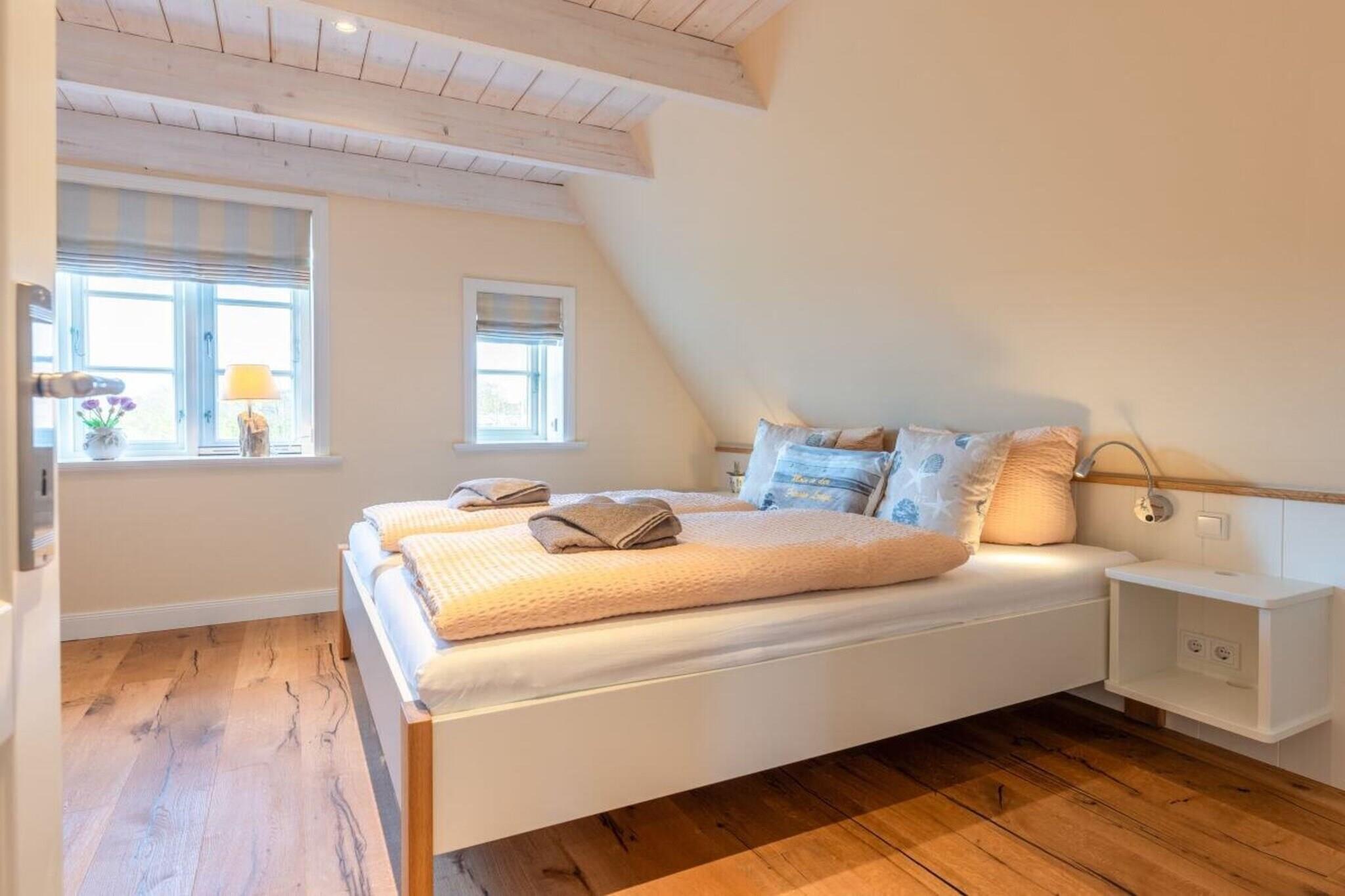 I stueetagen finder du et stilfuldt køkken med et elegant vinkøleskab, et toilet, en sauna med bruser, en entré, et praktisk opbevaringsrum samt en stue og spisestue med direkte adgang til terrassen. Ovenpå er der to hyggelige soveværelser, et brusebadeværelse og en entré. Og loftet tilbyder det ultimative afslapningsområde til afslapning! Haven er fuldt indhegnet og omgivet af vegetation. Cykler kan parkeres i cykelgaragen. Beliggende i et roligt boligområde i Utersum, er der restauranter, butikker og et bageri inden for gåafstand. Stranden ligger kun omkring 700 meter væk.