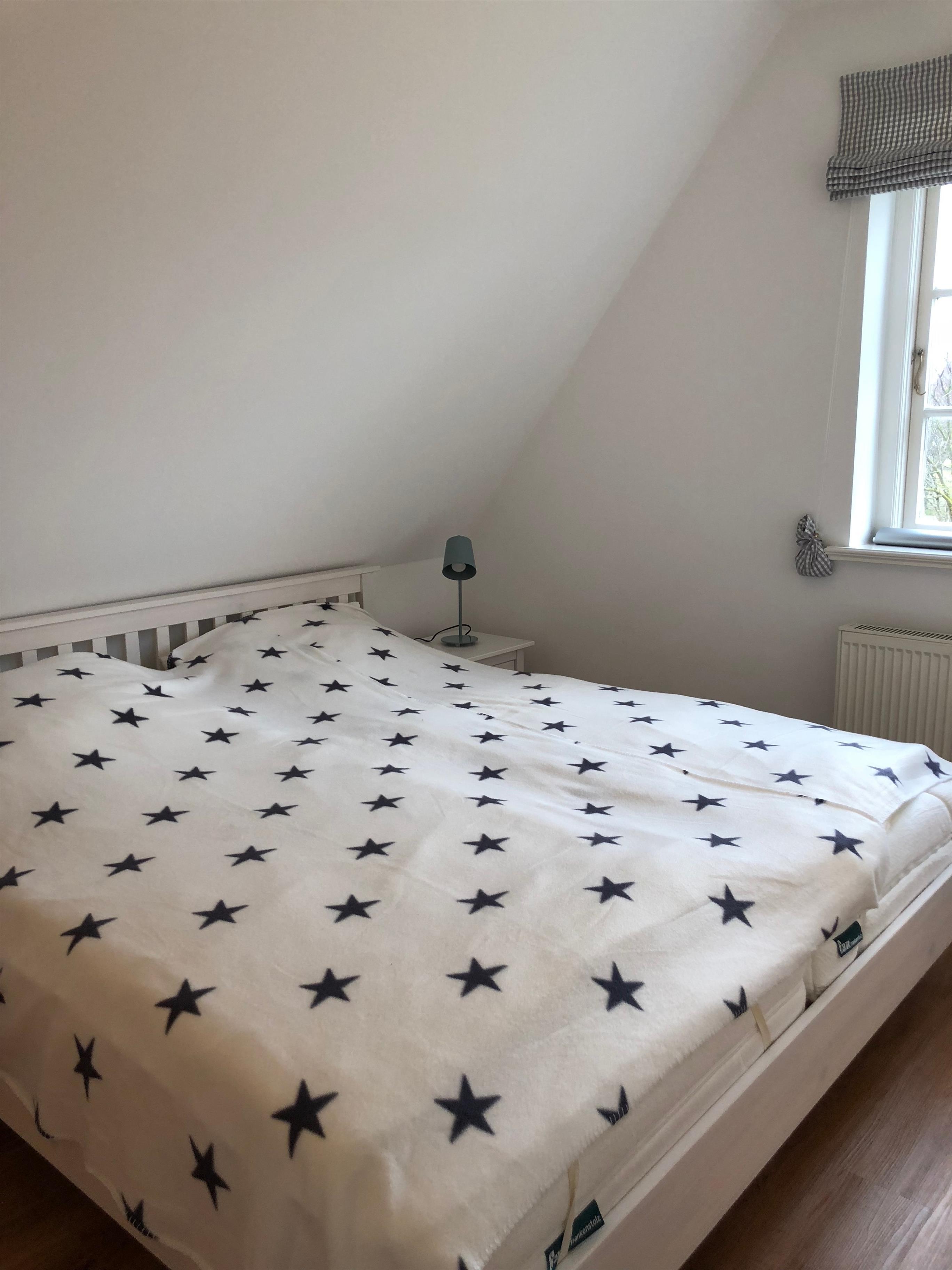Im ausgebauten Dachgeschoss ist eine zusätzliche Schlafmöglichkeit (zwei Einzelbetten) für bis zu 2 Personen eingerichtet. Ein Einbauschrank ist natürlich integriert. Im Garten steht eine Gemeinschaftsterrasse mit eigenem Strandkorb und Gartenmöbeln für Sie bereit.