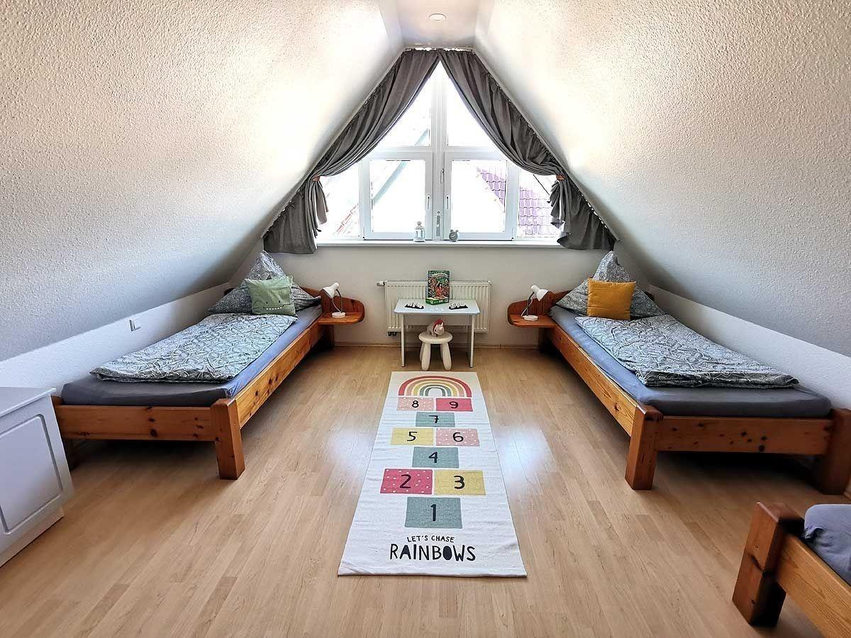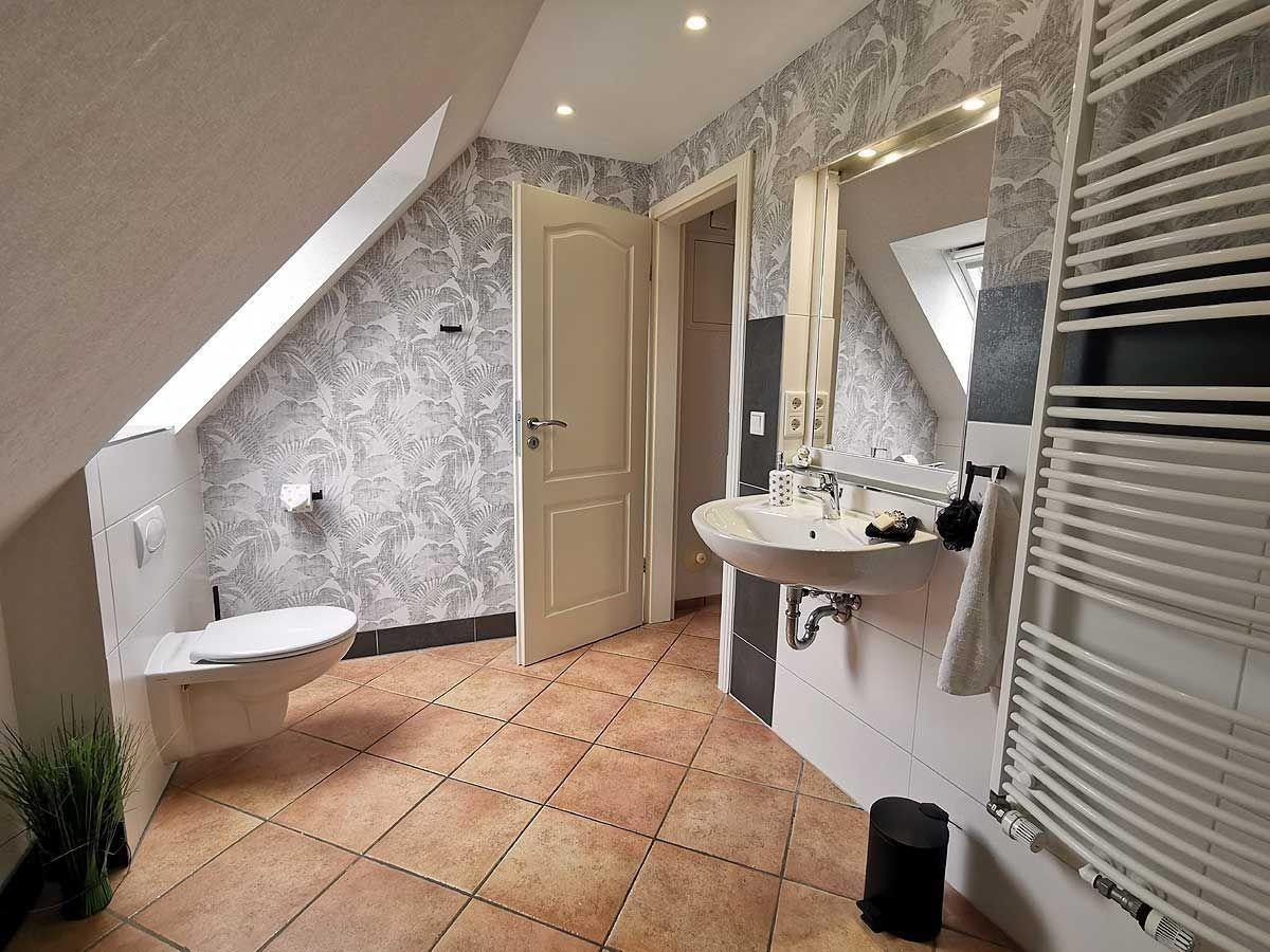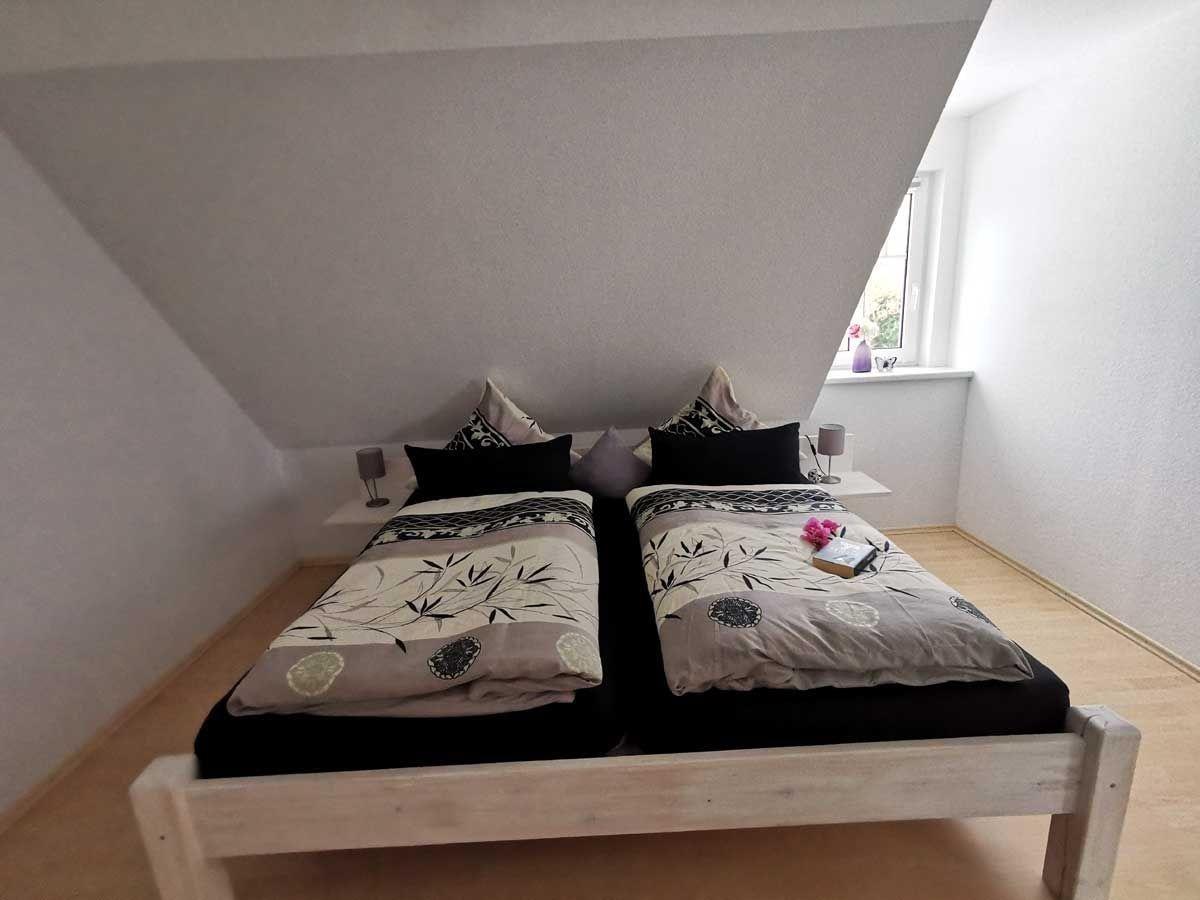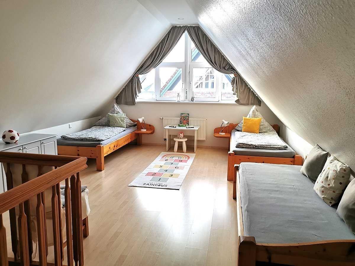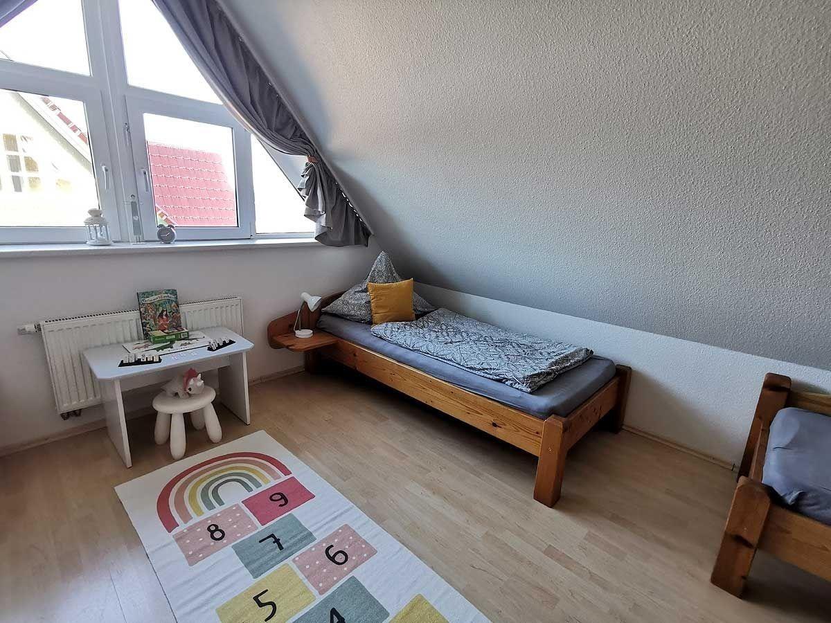 Die Wohnung erstreckt sich über 2 Etagen und hat 2 Schlafräume mit Platz für 2-5 Personen(eventuell 6.Person möglich), sowie ein Duschbad.