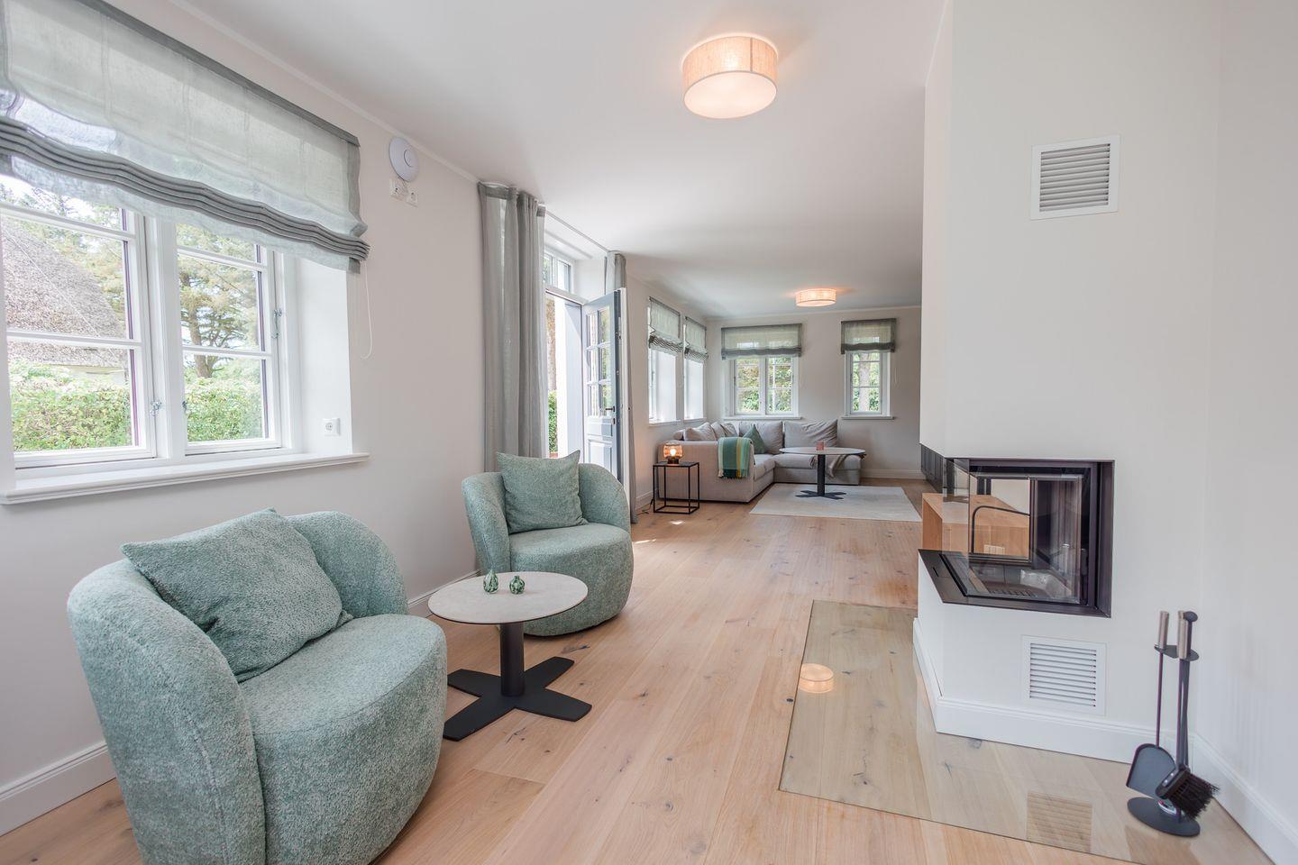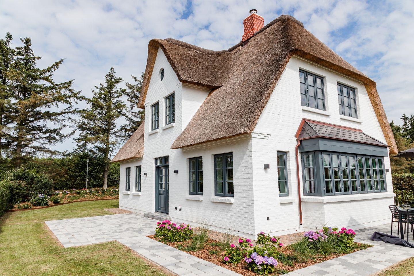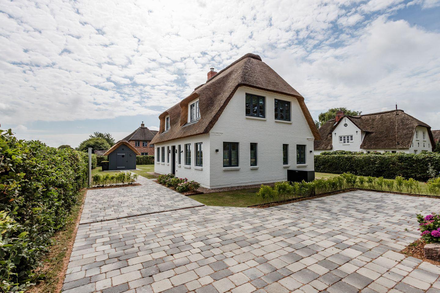 Exklusives Ferienhaus unter Reet in ruhiger, strandnaher Lage mit Kamin, Garten und Terrasse.