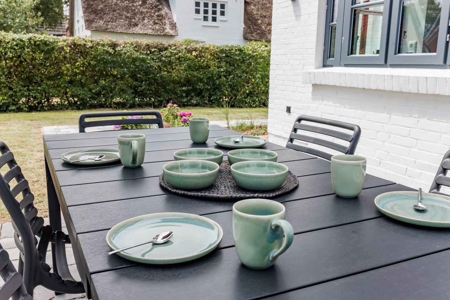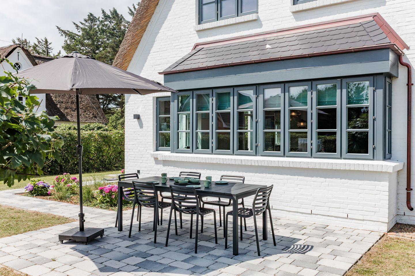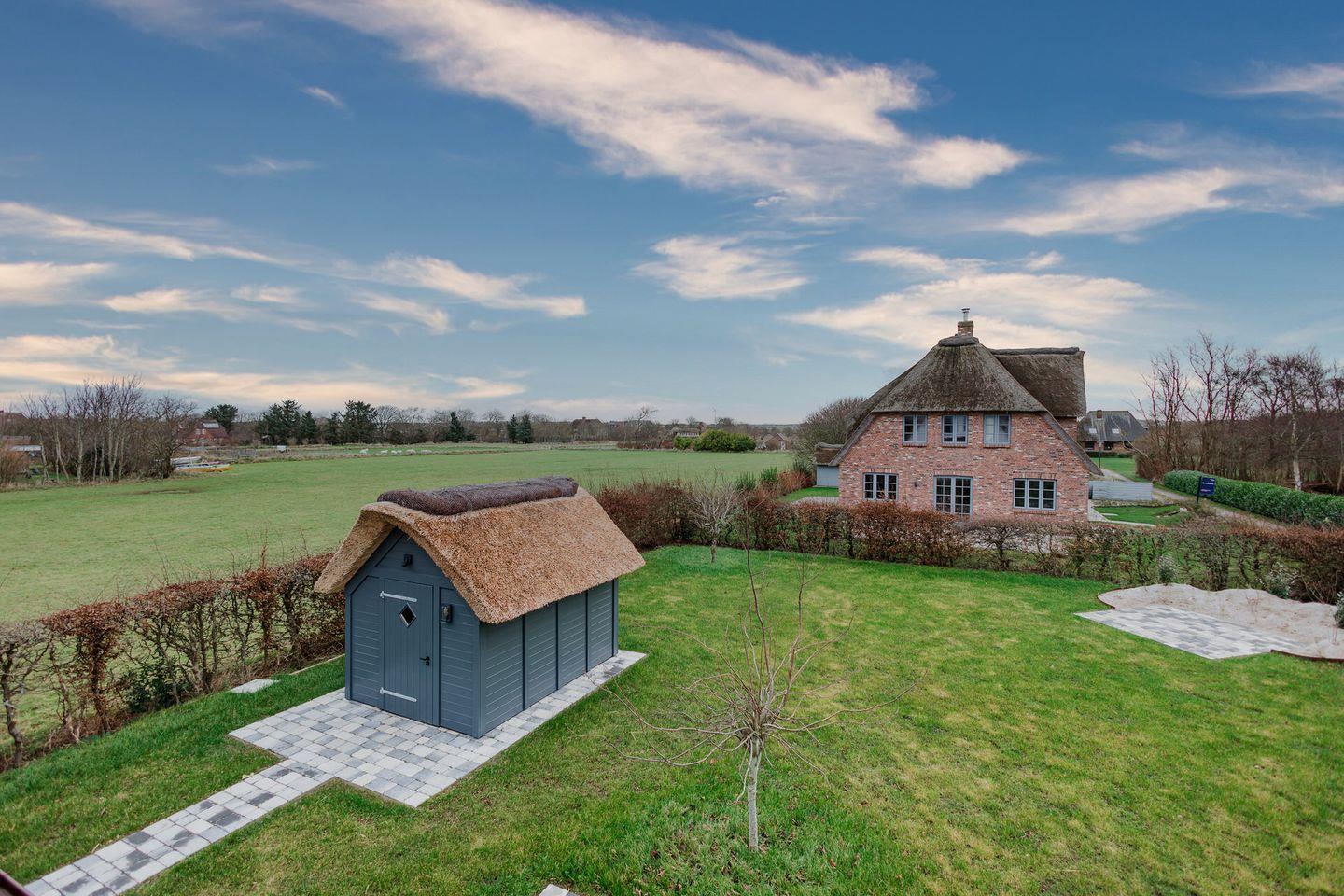 Exklusives Ferienhaus unter Reet in ruhiger, strandnaher Lage mit Kamin, Garten und Terrasse.