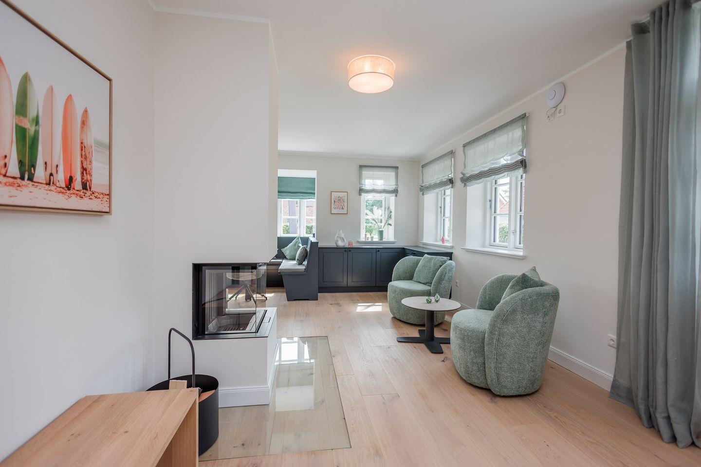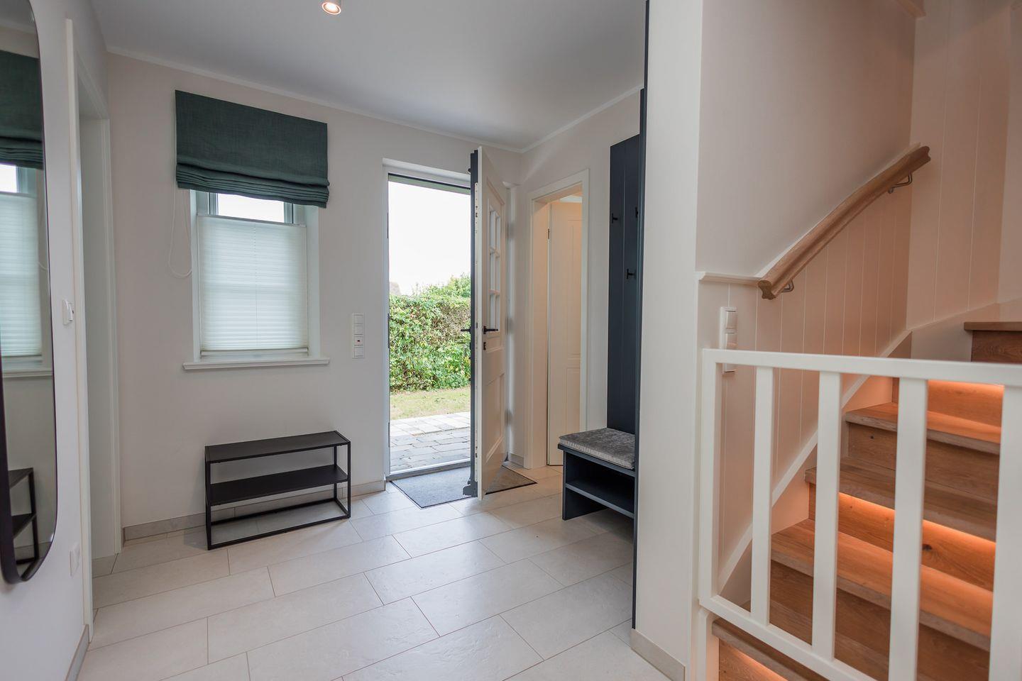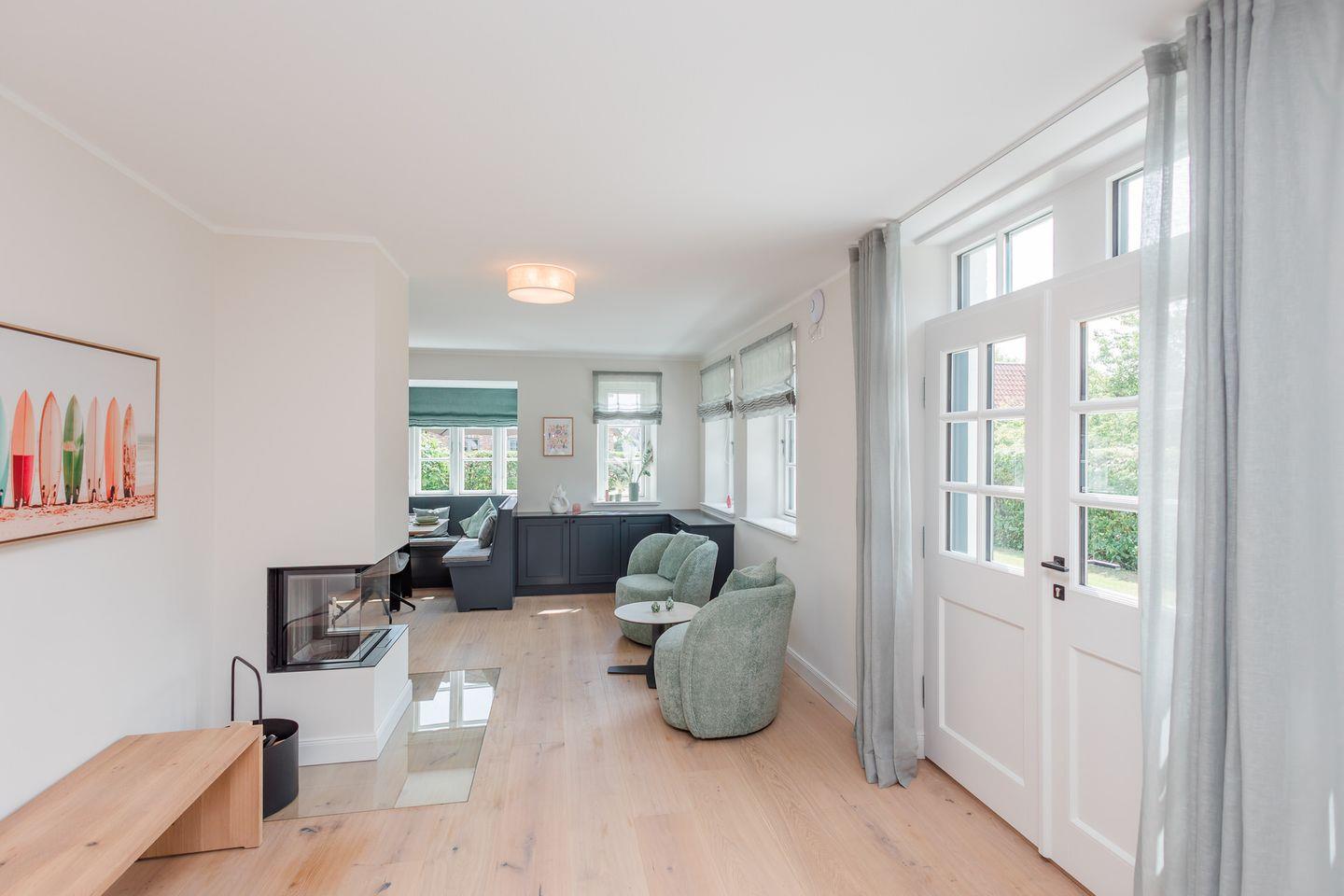 Zu den Highlights des in 2025 neu gebauten Hauses zählen wir u. a. der großzügige Garten mit Südwest-Terrasse, den eigenen Kamin, sowie die ruhige Lage in Strandnähe.