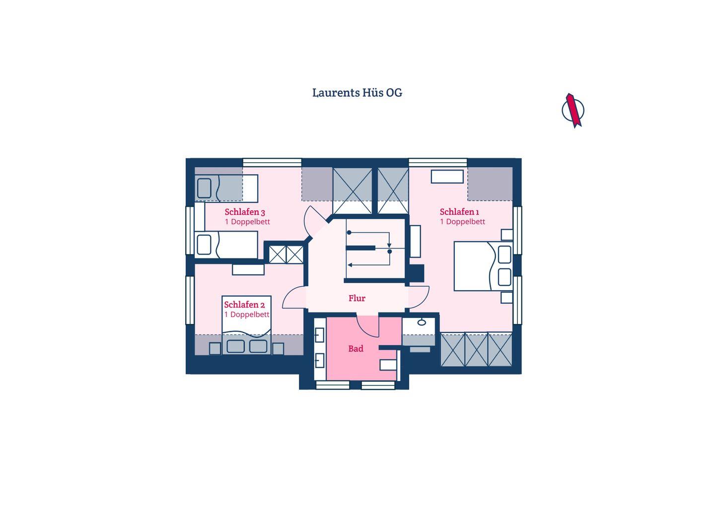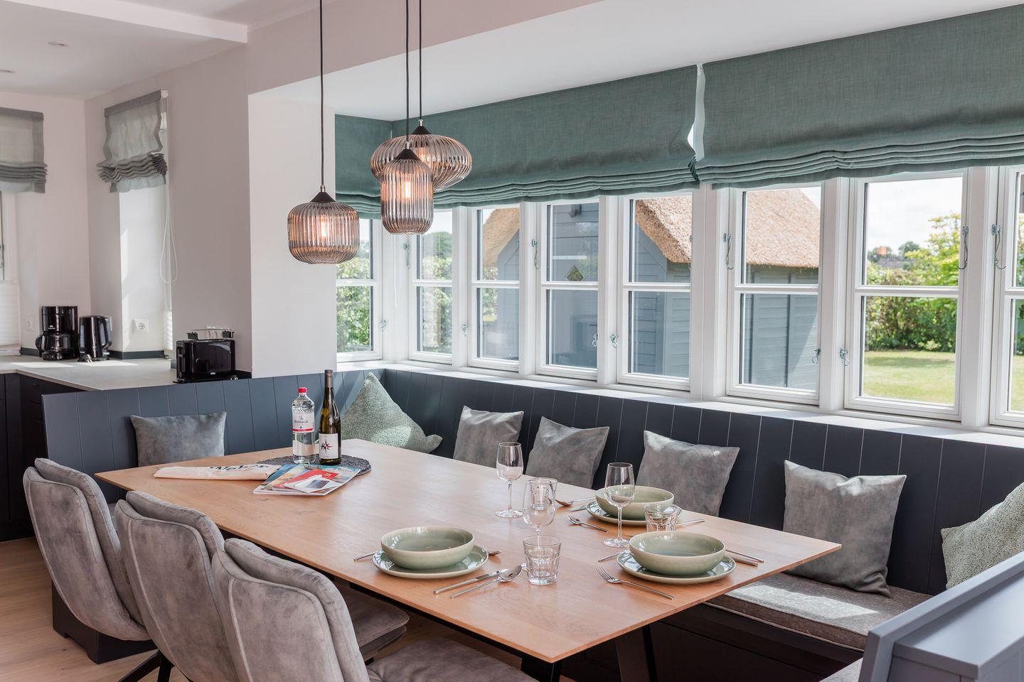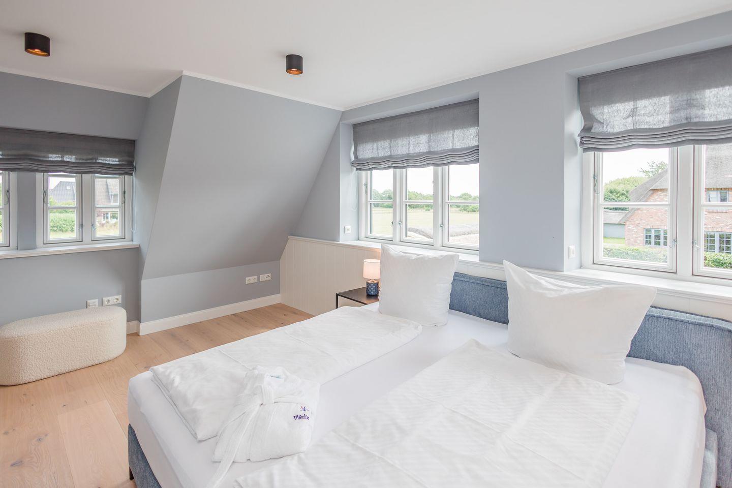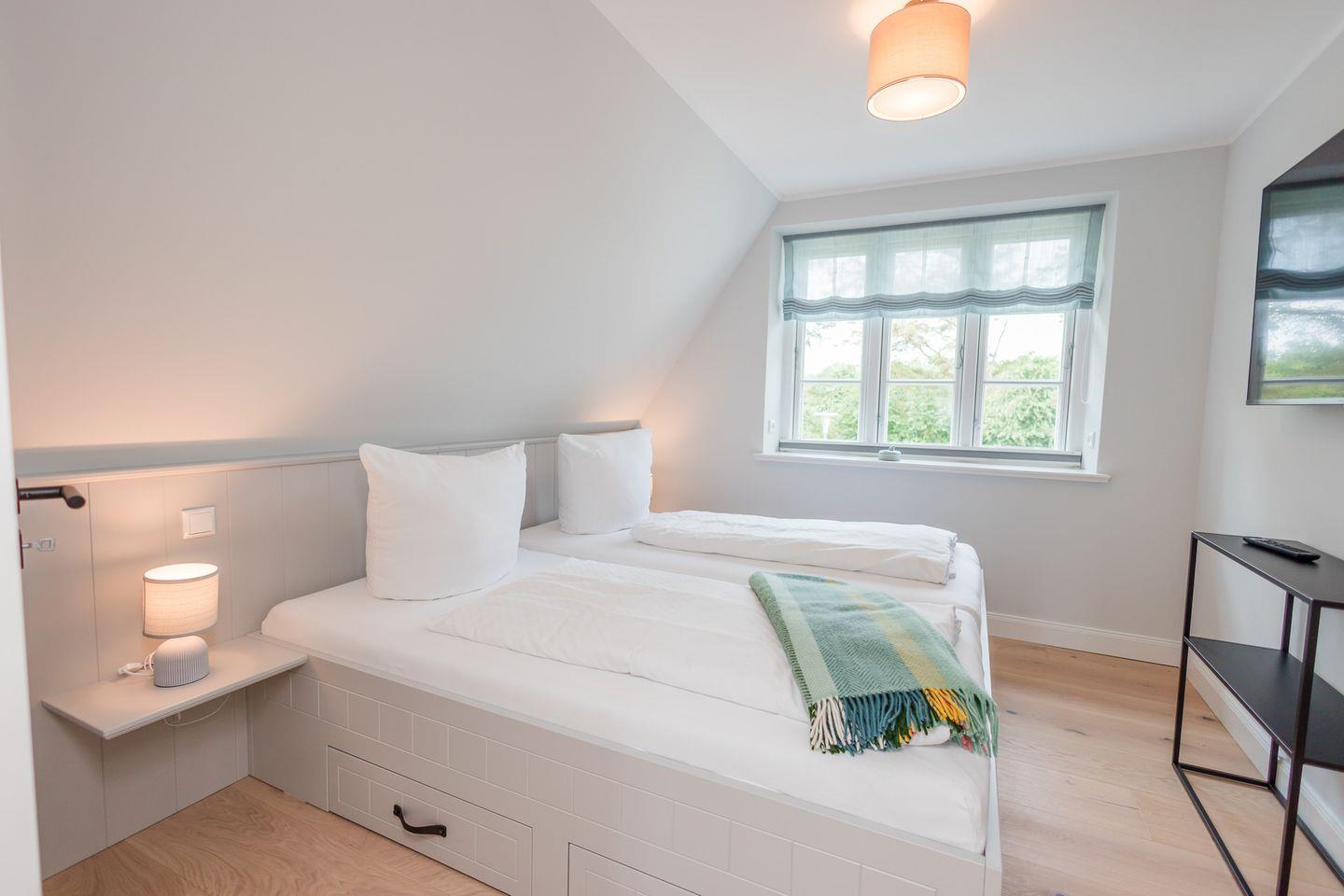 Das reetgedeckte Laurents Hüs verfügt über 3 Schlafzimmer und 2 Bäder und bietet somit komfortabel Platz für bis zu 6 Personen zuzüglich einer Kleinkinderaufbettung.