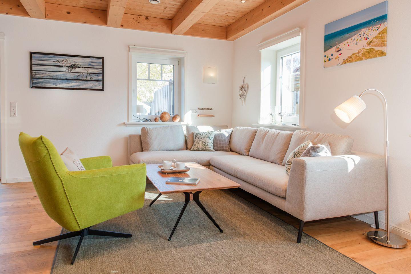 Reetgedecktes Ferienhaus, modern ausgestattet, mit Ethanol-Kamin und Garten mit Terrasse.