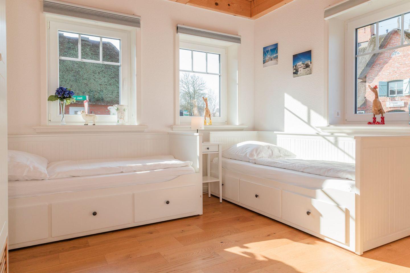 Das reetgedeckte Ferienhaus Tills Hüs verfügt über 3 Schlafzimmer und 2 Bäder und bietet somit komfortabel Platz für bis zu 6 Personen zuzüglich einer Kleinkinderaufbettung. Auch bis zu 2 Hunde sind herzlich willkommen.