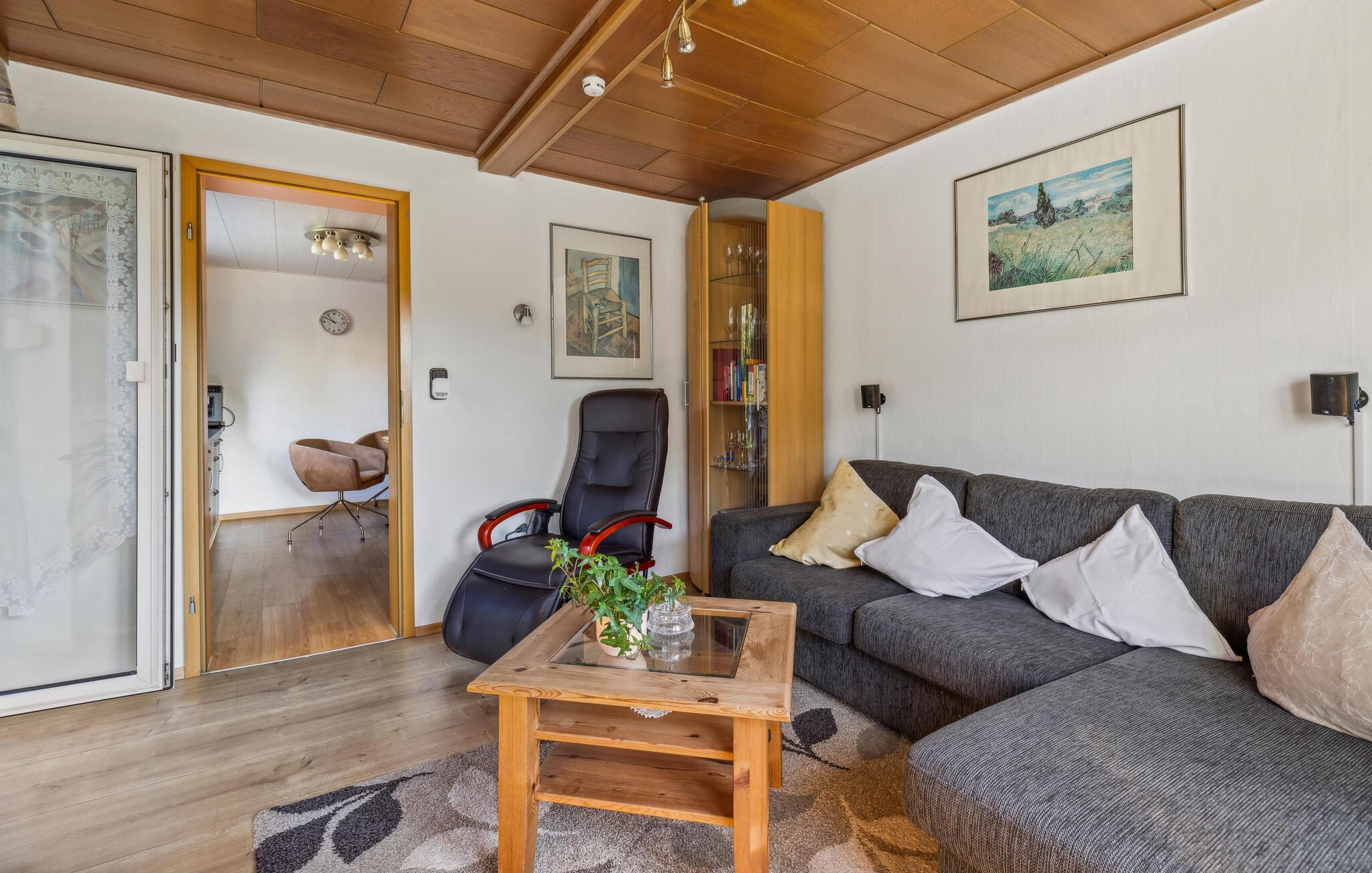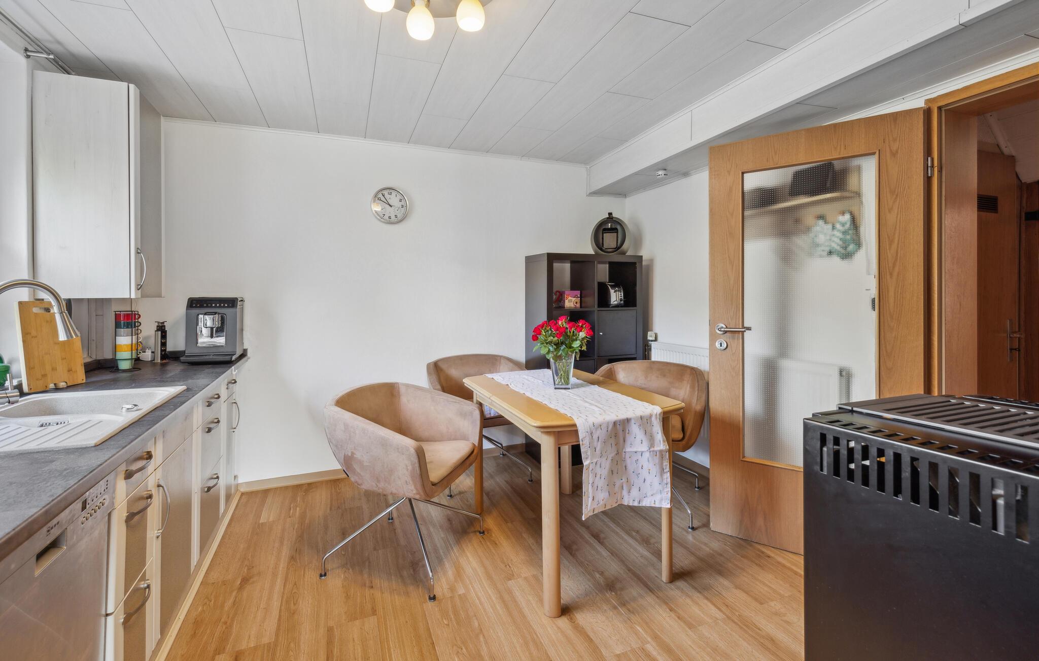 Denne charmerende ferielejlighed giver jer en fredelig oase. Det velindrettede interiør udstråler en hyggelig varme, der straks giver jer følelsen af at være ankommet. Oplev de smukke møbler og gode faciliteter, og kom sammen for at lave mad sammen i køkkenet eller se en film på sofaen.