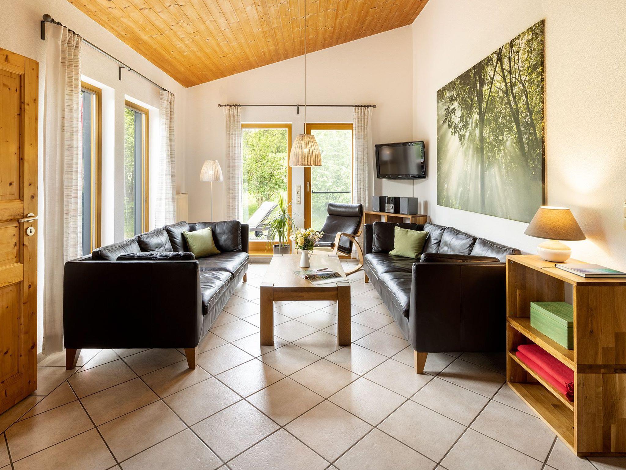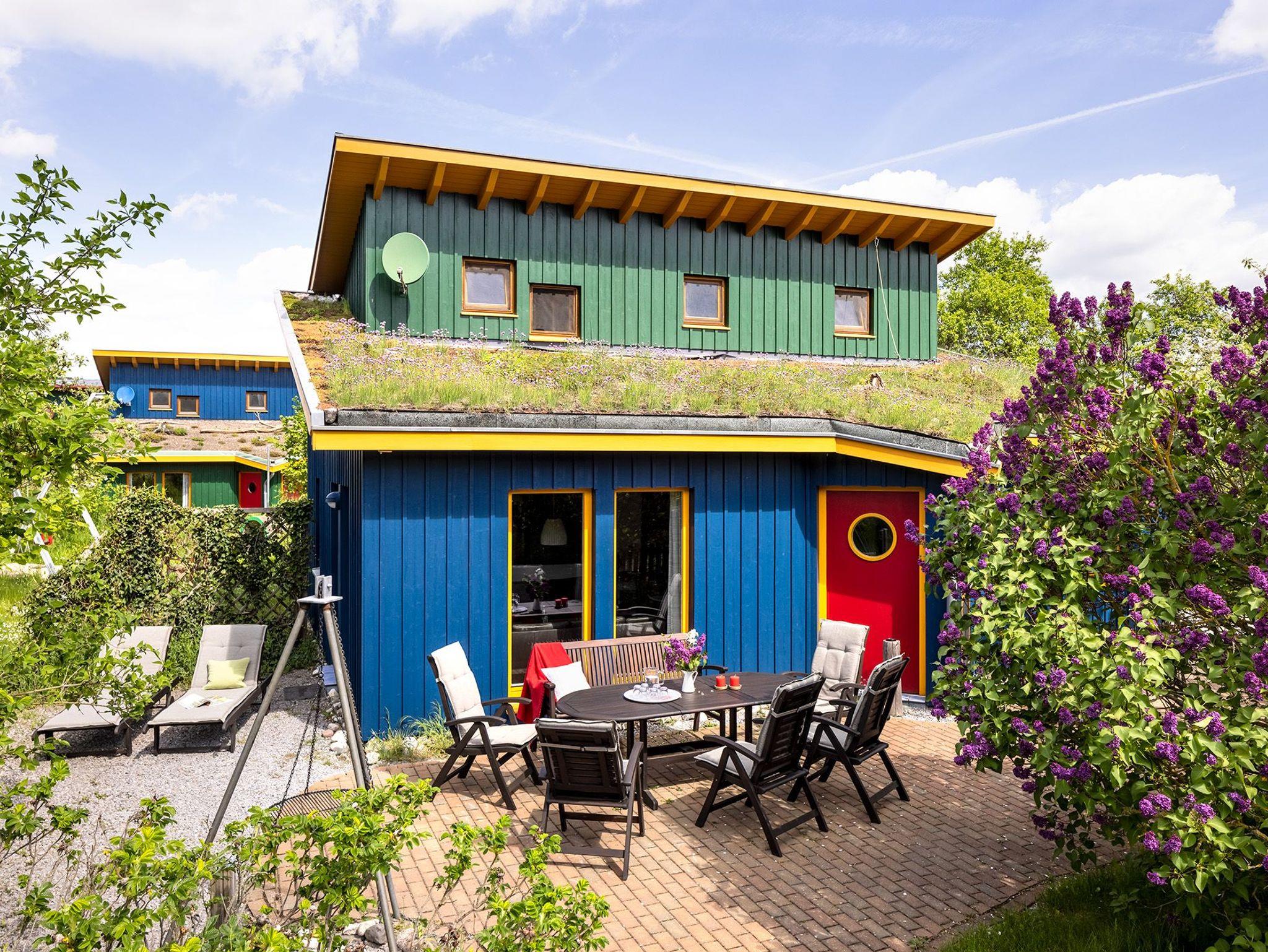 Die modernen Ferienhäuser bieten Platz für jeweils 8 Personen. Sie sind familienfreundlich und mit Kleinkindausstattung eingerichtet. Haus Grünspecht und Haus Rotmilan sind zudem im Erdgeschoß für Senioren gut geeignet und rollstuhlfreundlich konzipiert. Die Räume verteilen sich in allen Häusern auf 2 Etagen, das Obergeschoss ist über eine Wendeltreppe erreichbar.