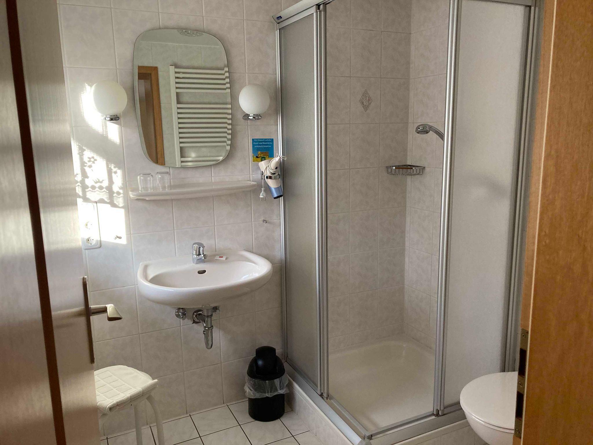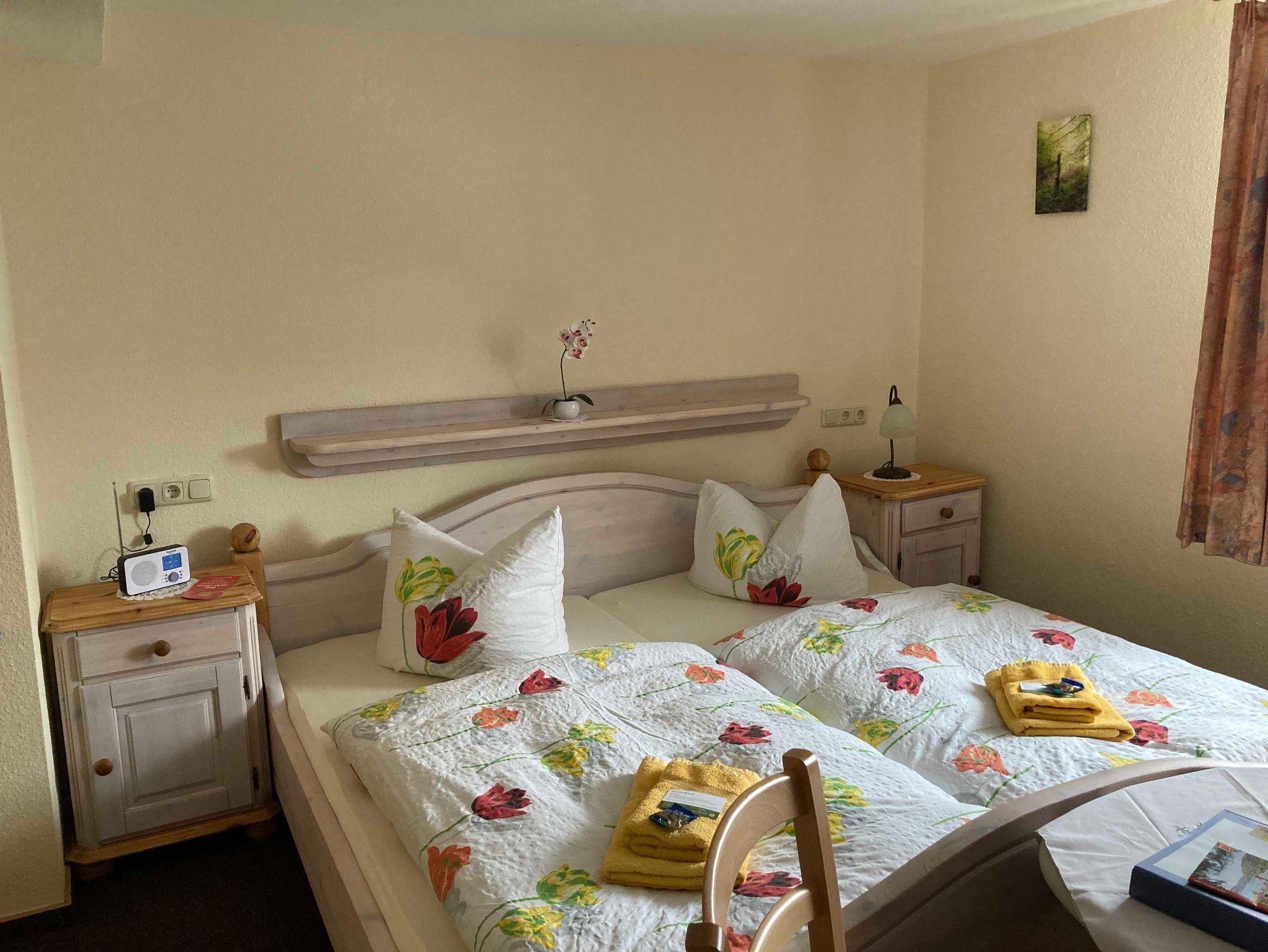 Gemütliches Doppelzimmer mit Du/WC, Kühlschrank, Radio und TV.