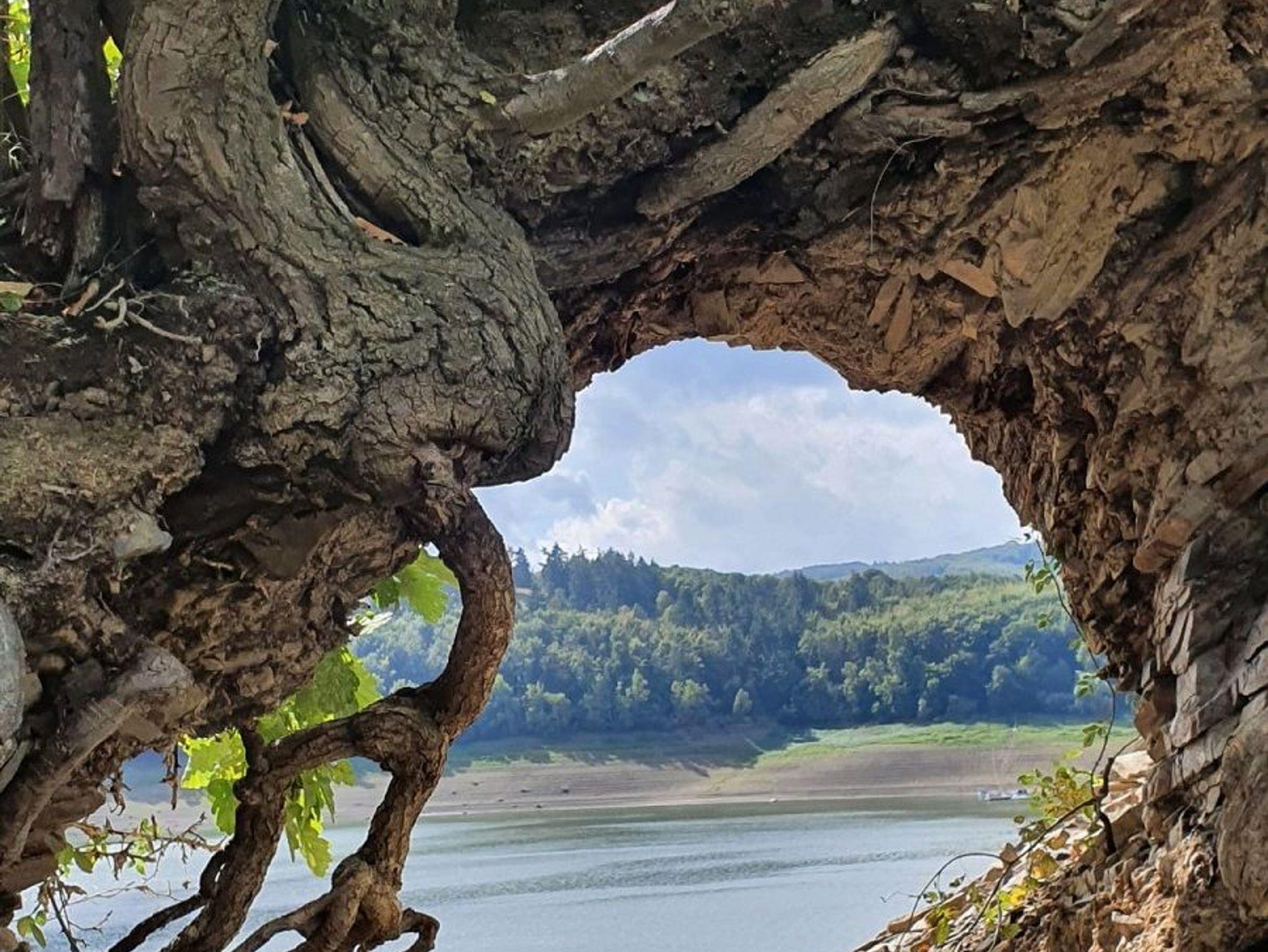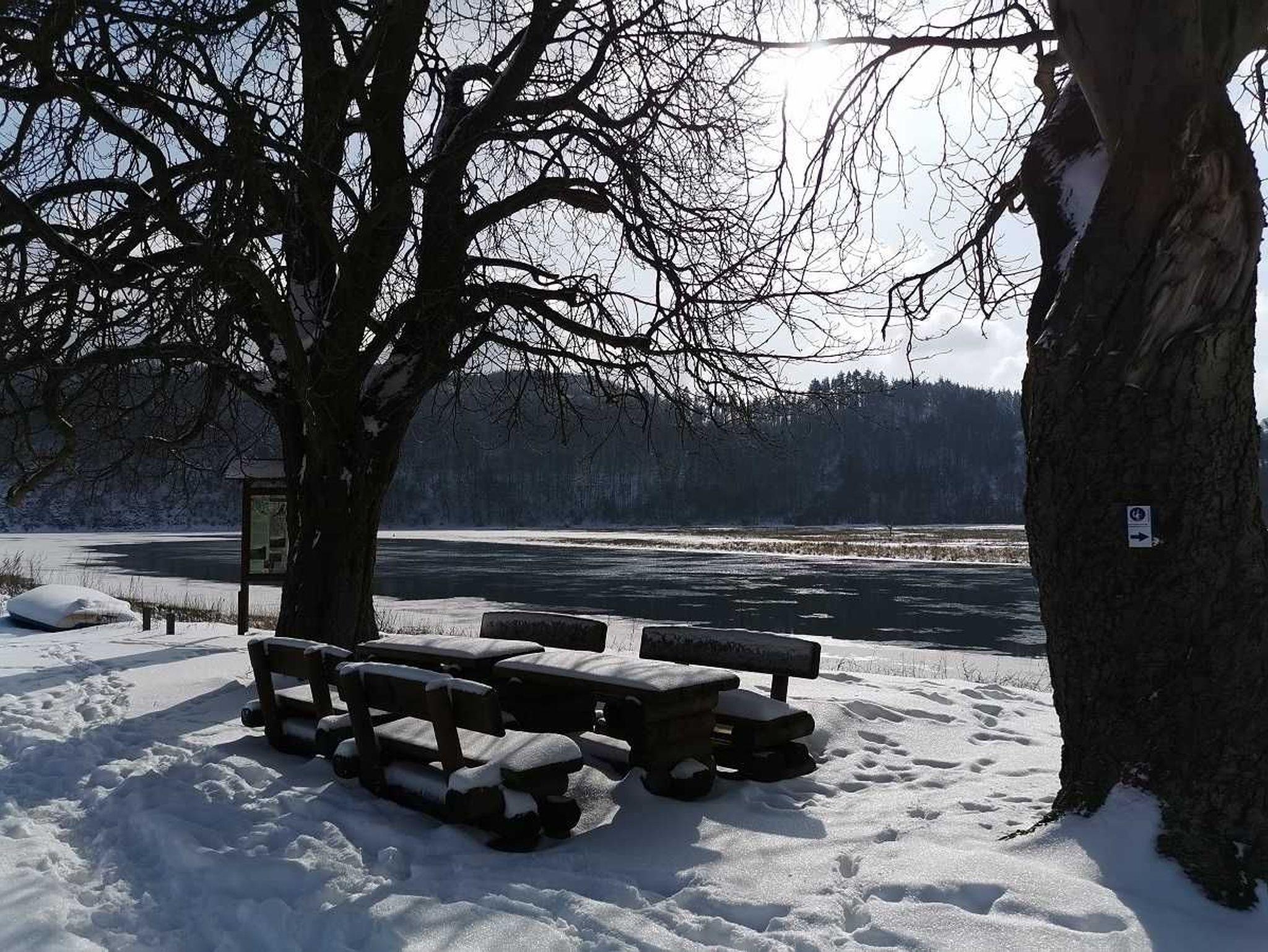 In unmittelbarer Nähe des großen Grundstückes kann man es sich unter 2 großen Kastanienbäumen auf Holzbänken und einem Waldsofa gemütlich machen und die Tier- und Vogelwelt beobachten.