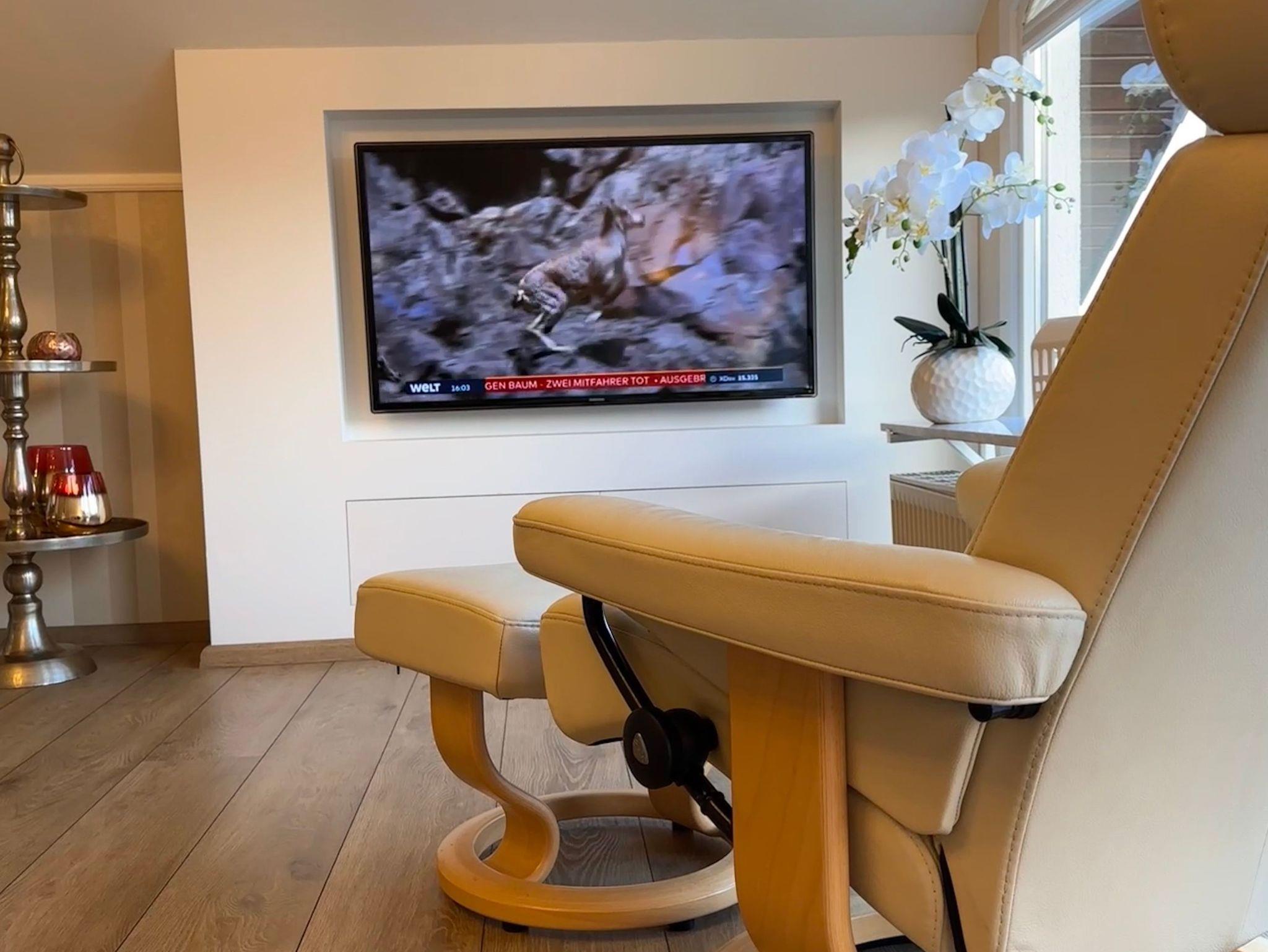 über 2 Schlafzimmer mit angrenzenden Ankleidezimmern, Wohnzimmer mit Stressless