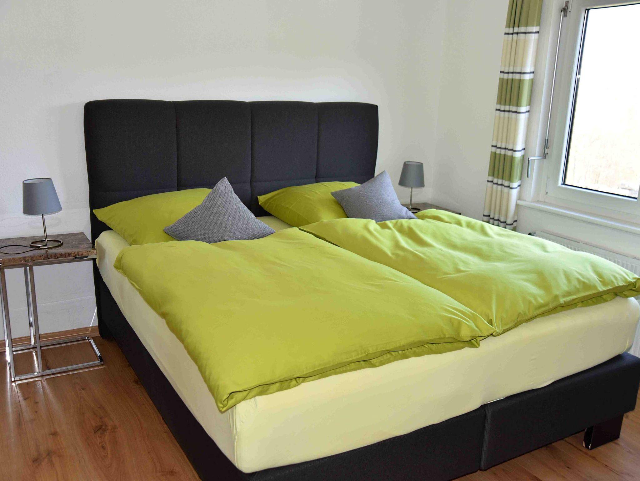 Die beiden Schlafräume sind mit Boxspringbetten ausgestattet und die modern eingerichtete Küche bietet alle entsprechenden Möglichkeiten. Das neue Bad verfügt über Dusche und WC.