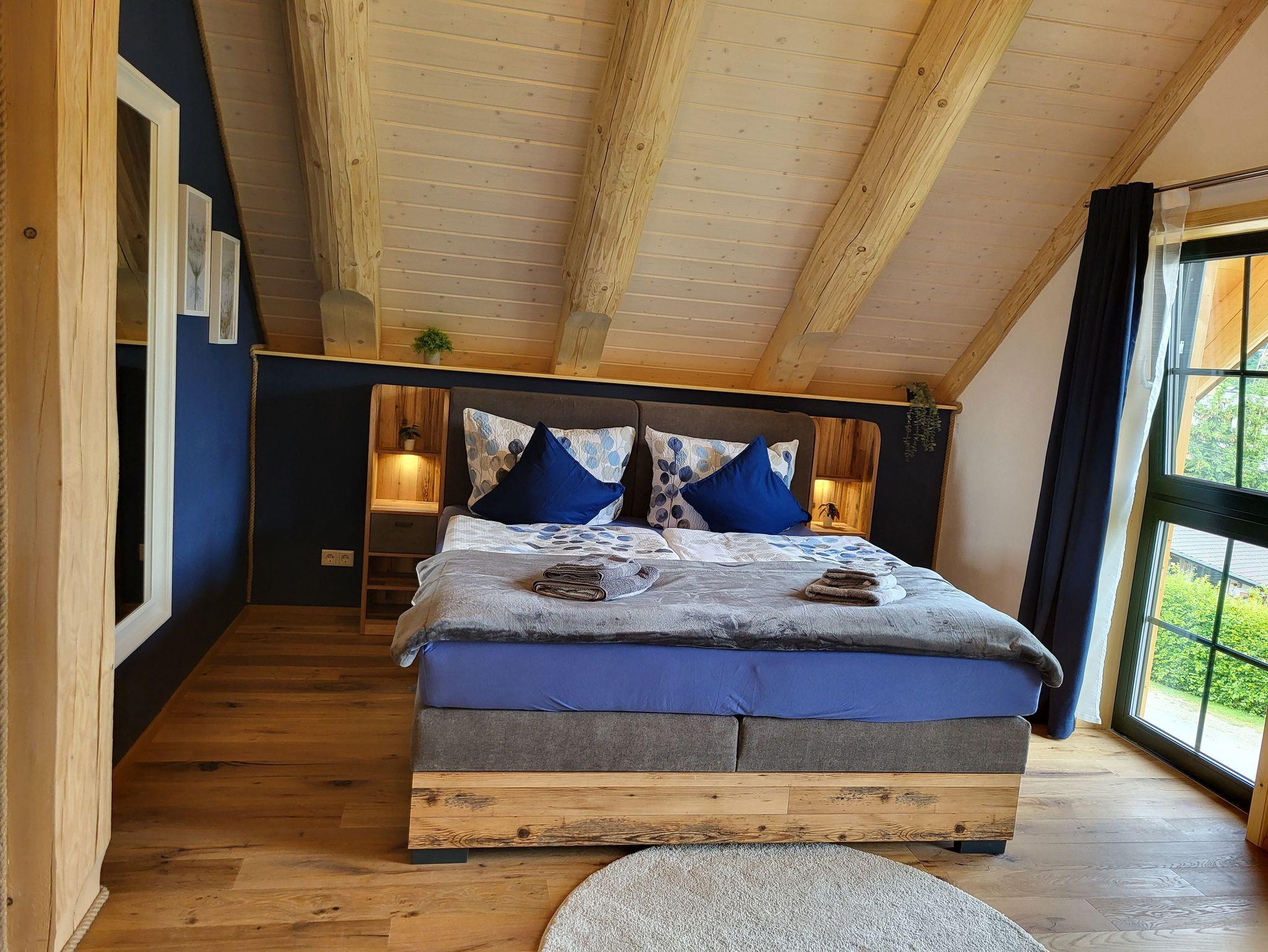 • Die 2023 erbaute Waschbärhütte hat 100 qm Wohnfläche ist ist für bis zu 4 Personen geeignet. Das Haus hat 2 Schlafzimmer , 1 Bad und ein separates Gäste WC.