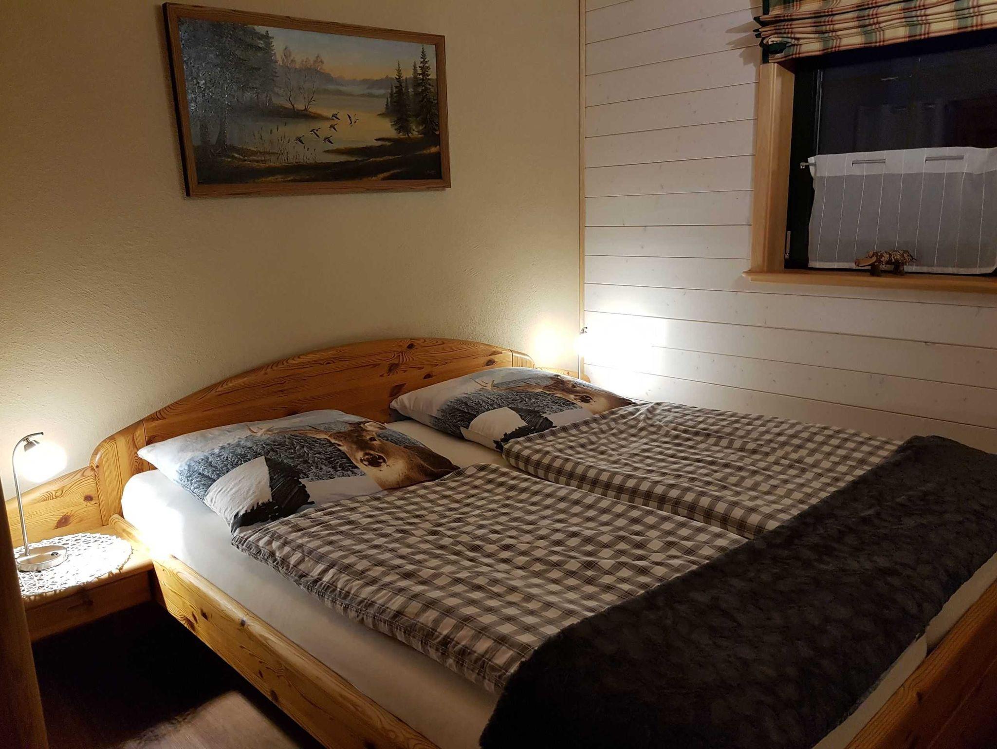 Im Schlafbereich befindet sich ein großes Doppelbett 1,80 x 2,00 m mit Kaltschaummatratzen und Kleiderschrank.
