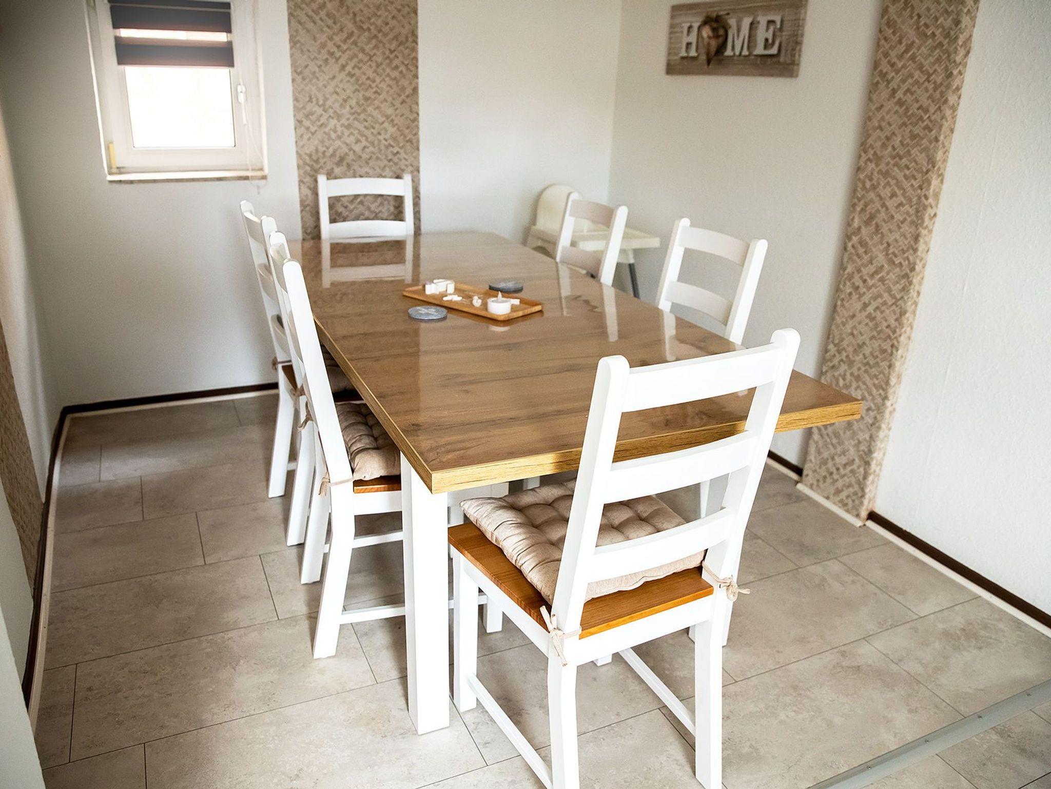 Mit einer Gesamtwohnfläche von 115 qm, 3 Schlafzimmern und 5 Betten (Babybett auf Anfrage zustellbar), Wohnzimmer mit Ess- u. Leseecke, Küche mit Essecke, Bad, Gäste-WC, Waschküche mit Waschmaschine und Trockner, komplett eingezäunten Garten mit Sitzecke (Zaunhöhe 1,5 m), Sonnenschutz, Hängematte und Grill, kostenlosem W-LAN und einem großen Balkon bietet ihnen das Ferienhaus alles, was man für einen entspannten Urlaub braucht. Hier können Sie Ruhe finden, sich wie zu Hause fühlen und einfach den Alltag vergessen.