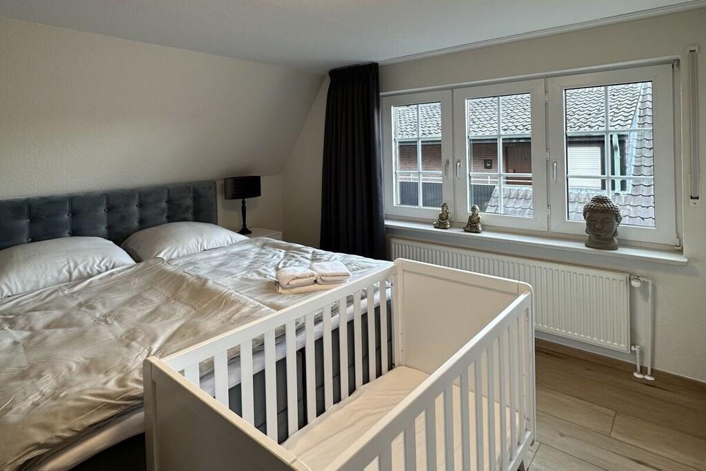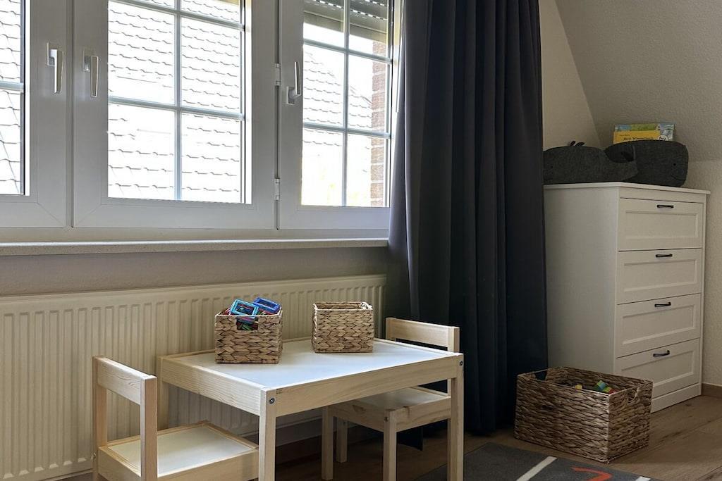 PERFEKT PLACERING!!! Alt er inkluderet i feriehuset Maila! Alle priser inkluderer sengelinned (sengene er redte), håndklæder, badehåndklæder, gratis parkering, brug af vaskemaskine, brug af opvaskemaskine, høje stole til børn, energi, WiFi og meget mere. Et nyrenoveret feriehus af høj kvalitet med en lille indhegnet have med sandkasse til børn, lige i kunstnerlandsbyen Dangast! 150 meter fra stranden! Interiøret i høj kvalitet omfatter åben opholds- og spisestue, to soveværelser med smart-tv, badeværelse med bruser, gæstetoilet og selvfølgelig et veludstyret køkken med fuldautomatisk kaffemaskine. Udendørsområdet byder på en stor terrasse med fortelt og siddepladser, liggestole og sandkasse.