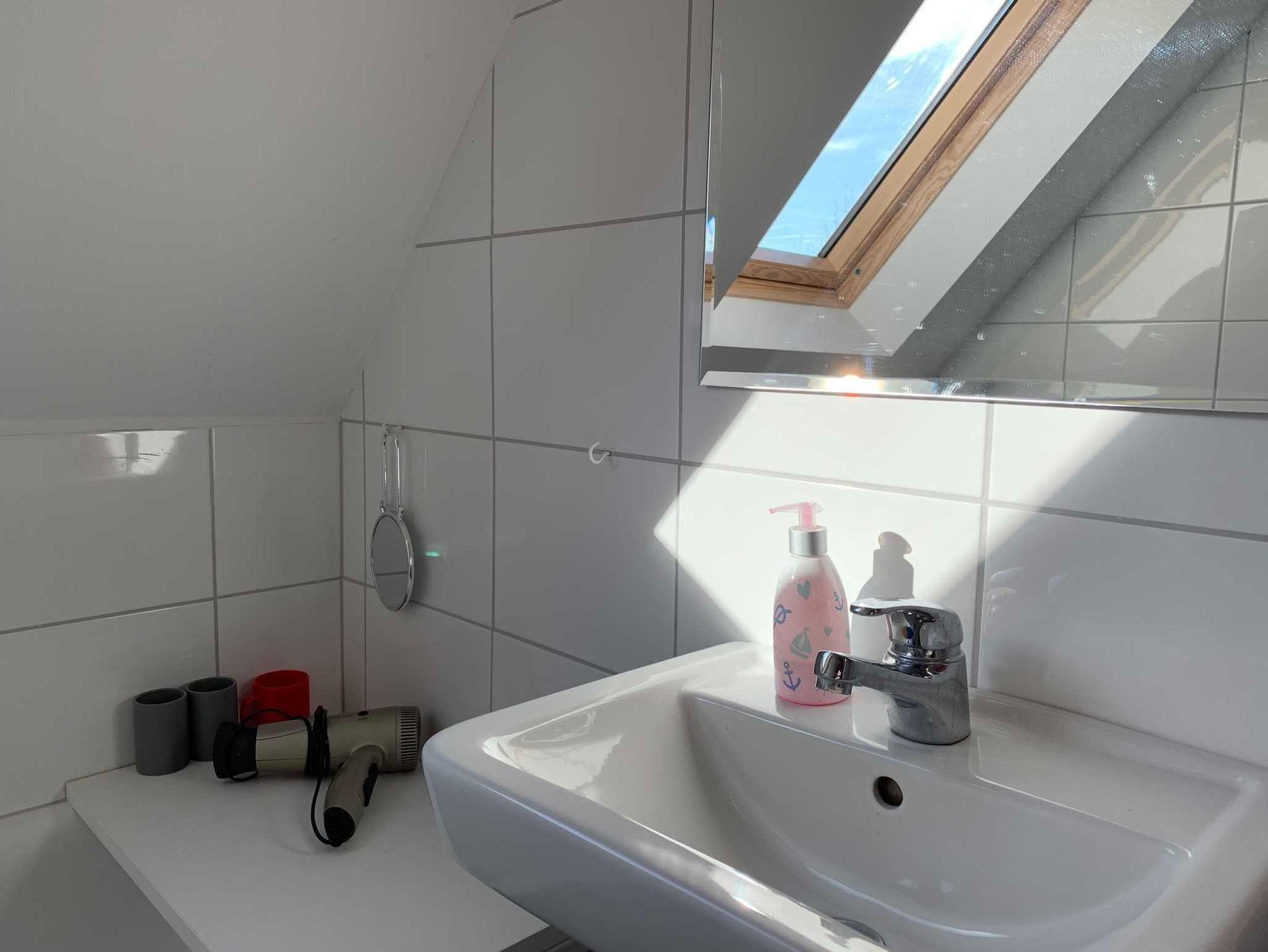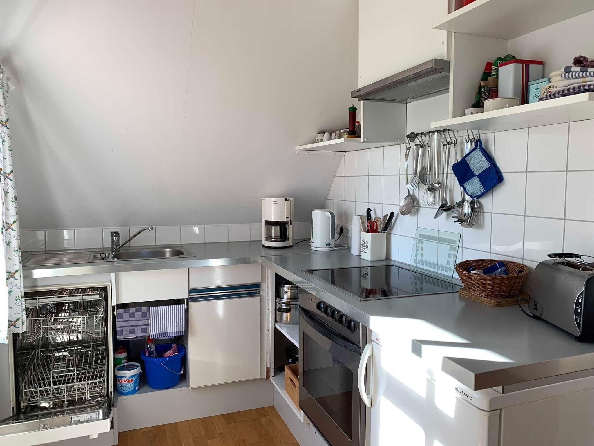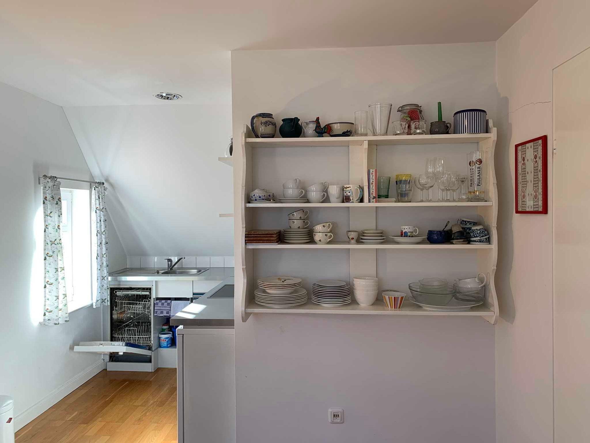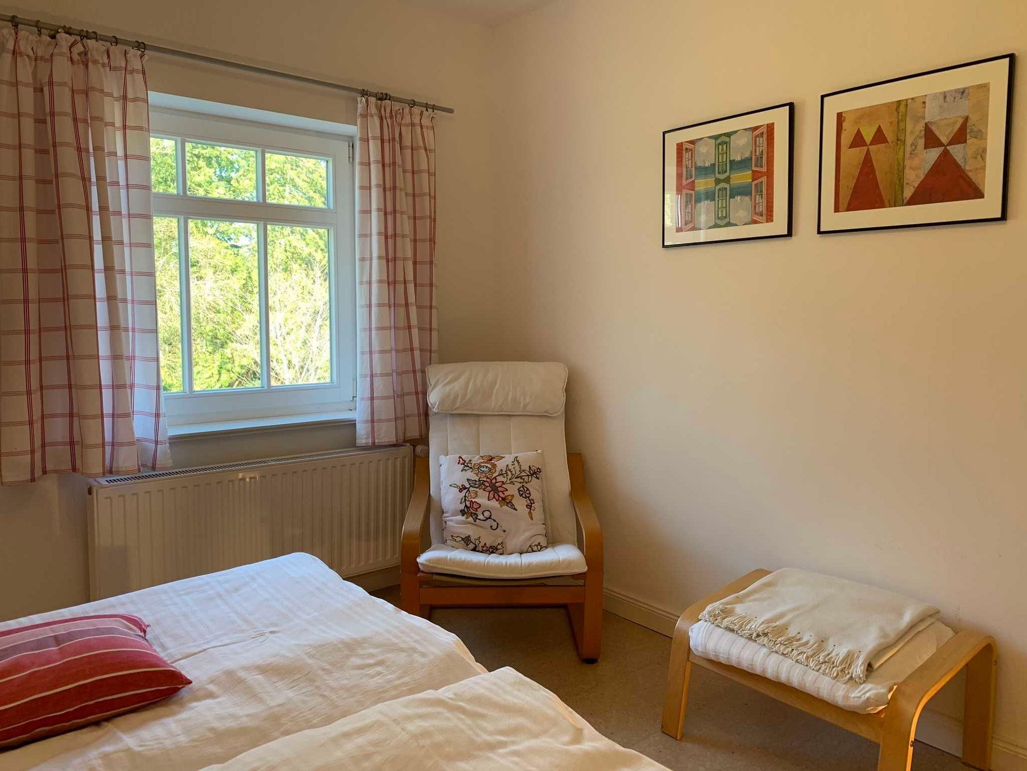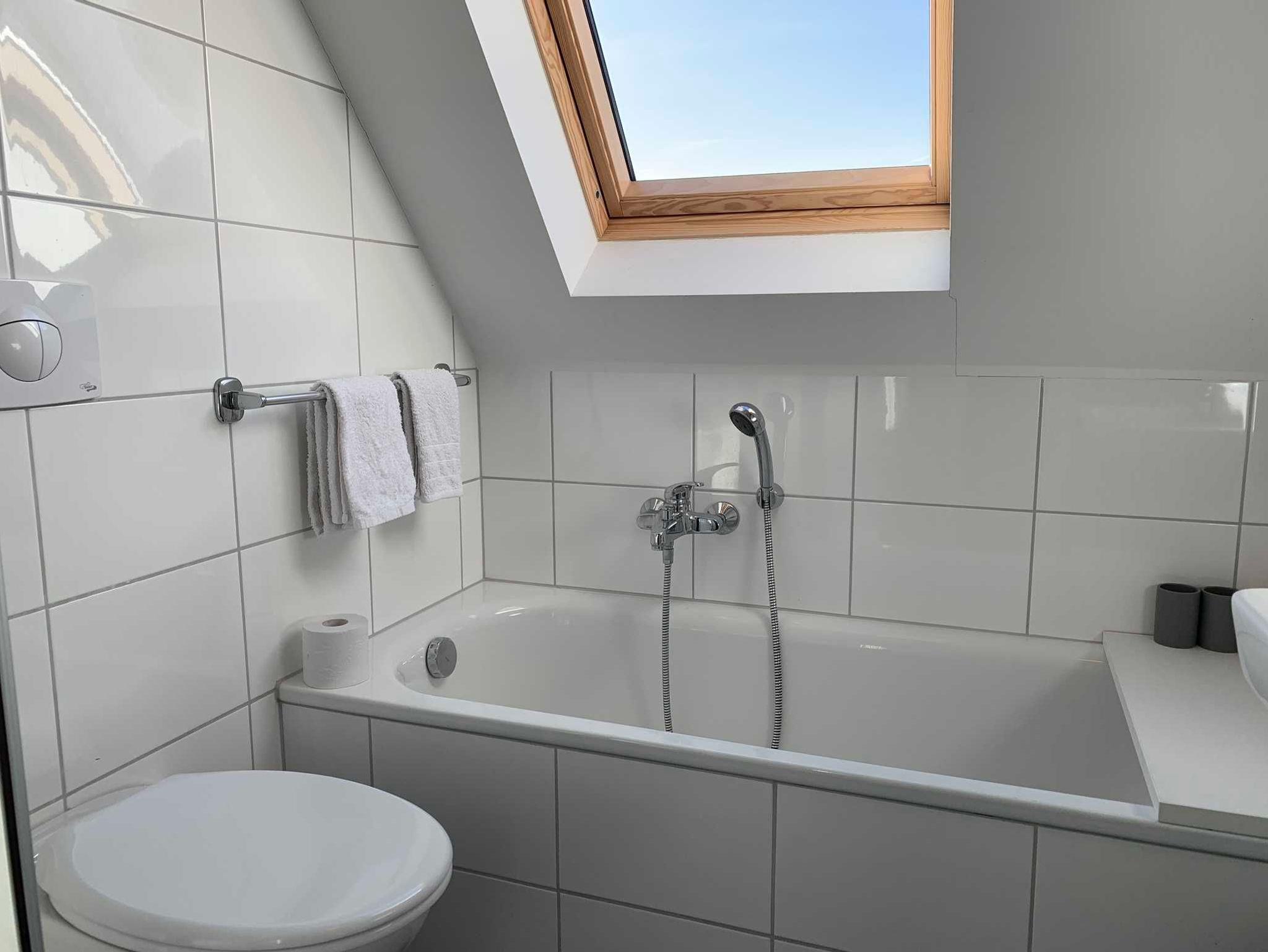 Die Ferienwohnung im Obergeschoss hat ein Badezimmer mit Dusche, Badewanne und WC, ein Schlafzimmer mit Doppelbett, ein Kinderzimmer mit zwei Einzelbetten sowie eine gemütliche Wohnküche und bietet Platz für zwei Erwachsene und zwei Kinder. Es sind Spiele und Bücher vorhanden. Die Wohnung wurde 2020 renoviert und entspricht modernen Ansprüchen.