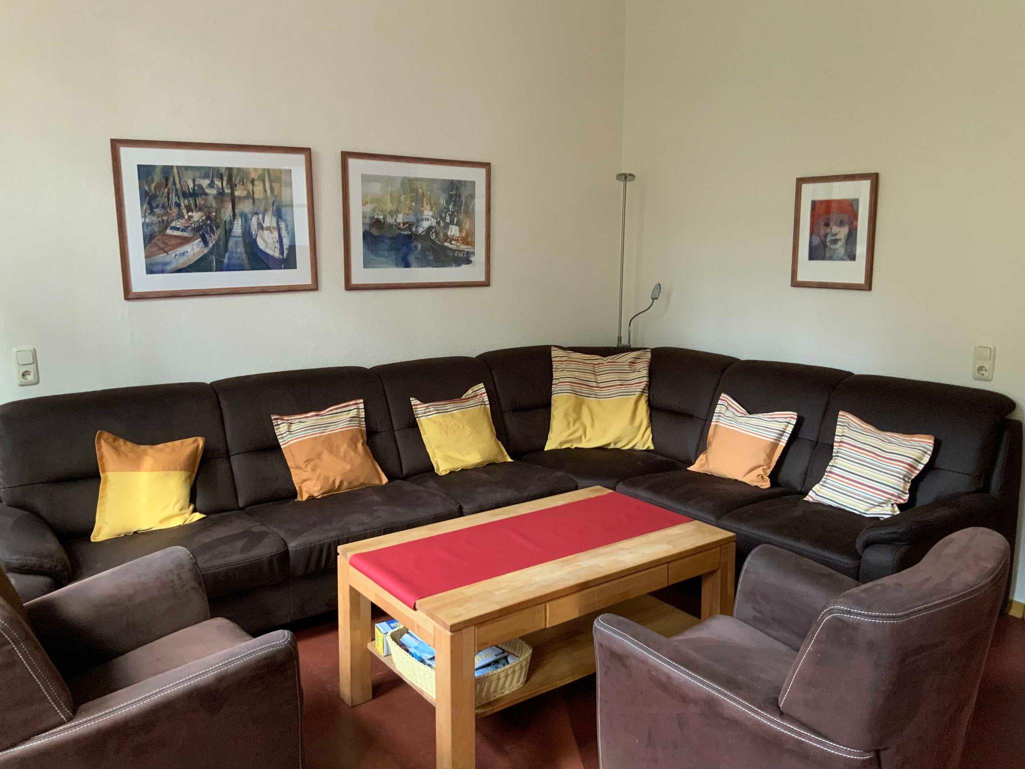 Dirkshof 1 Ost ideal für - Gruppenreisen - ca. 170 qm, Hochparterre, rollstuhlgerecht. Eine Ferienwohnung für 10 bis 12 Personen, freundlich und modern eingerichtet. - DSL-Wireless-Lan - Große Terrasse mit Gartenmöbeln und Grill - Balkon mit Gartenmöbeln - ca. 400 qm eingezäunter Garten mit Sandkiste, Schaukel und Kinderspielhaus. Bei Bedarf kann folgende zusätzliche Ausstattung zur Verfügung gestellt werden: Kinderbetten, Kinderstühle, Patientenbett, Rollstuhl, Toiletten-Duschstuhl, zusätzlicher mobiler Haltegriff.