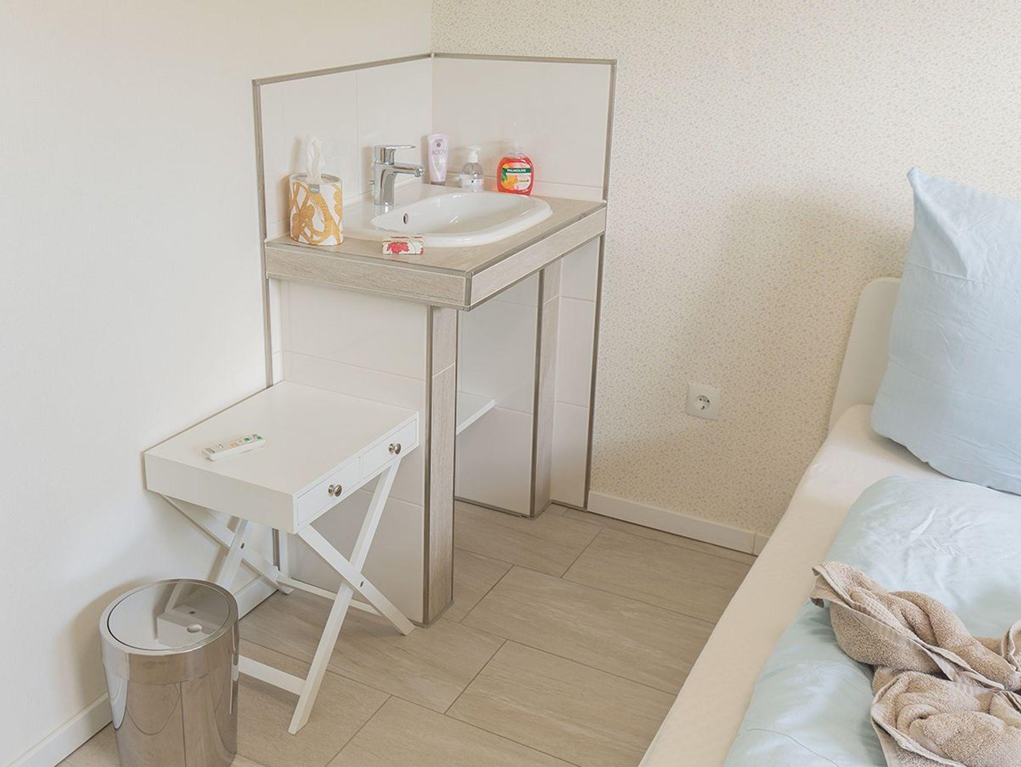 Das Haus verfügt über drei Schlafräume mit je einem Doppelbett und mit einem ausziehbaren Schlafsofa 140x200 cm. Das Schlafsofa befindet sich im Kinderzimmer und dort können Sie in der Infrarotsauna Wärme tanken. Oder nutzen Sie den Schreibtisch im Rahmen ihrer Workation.