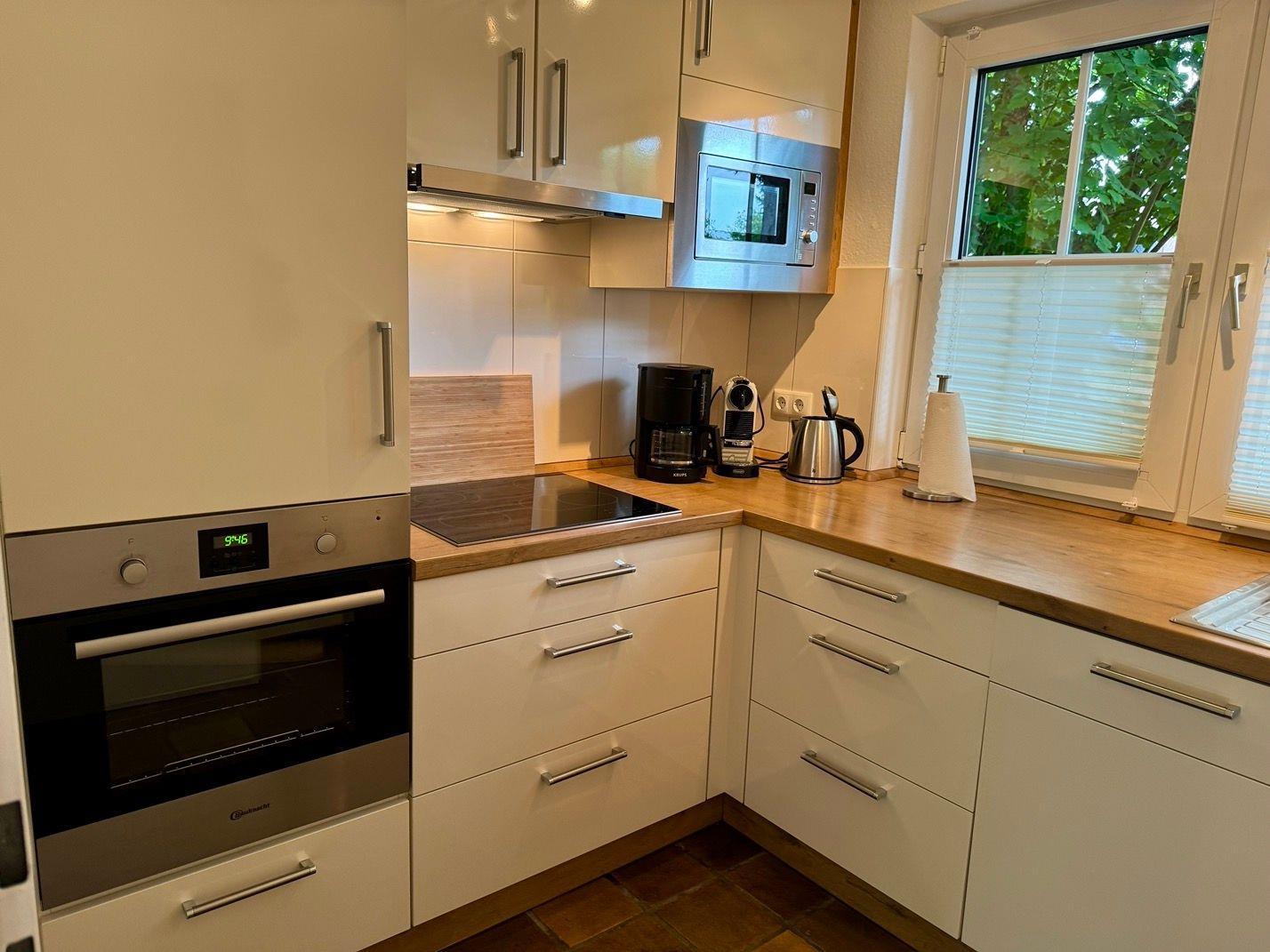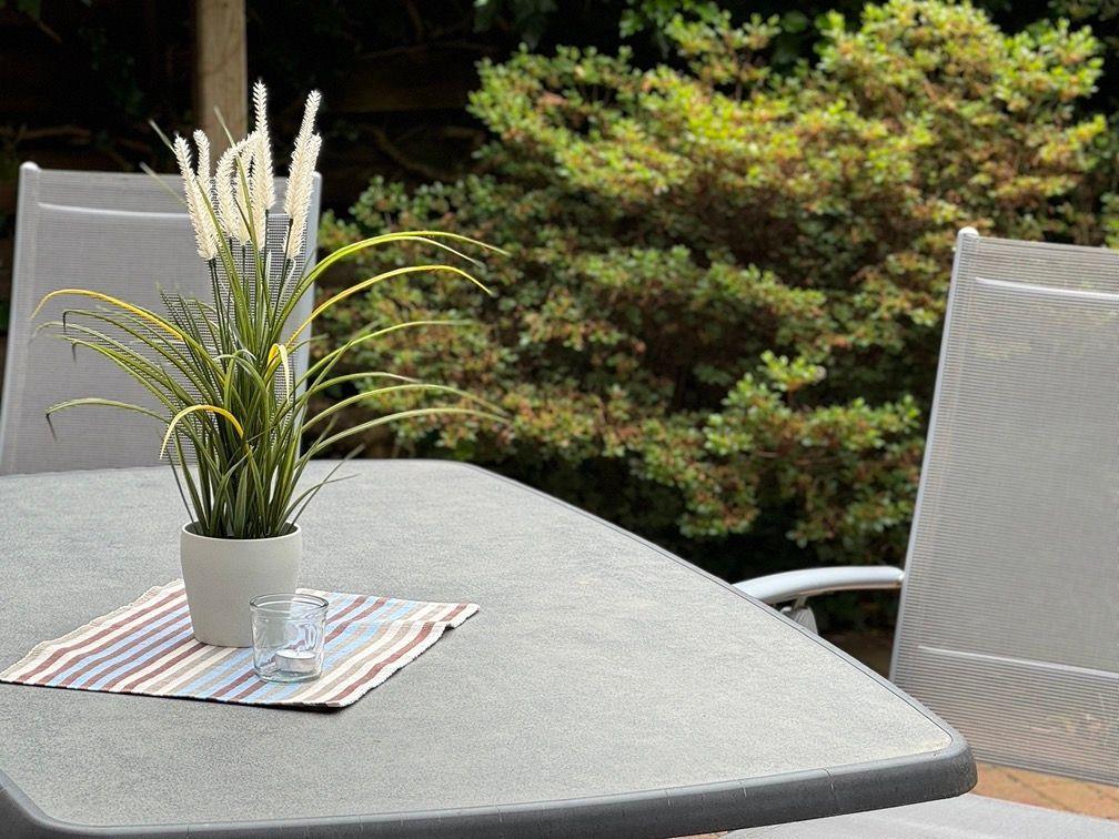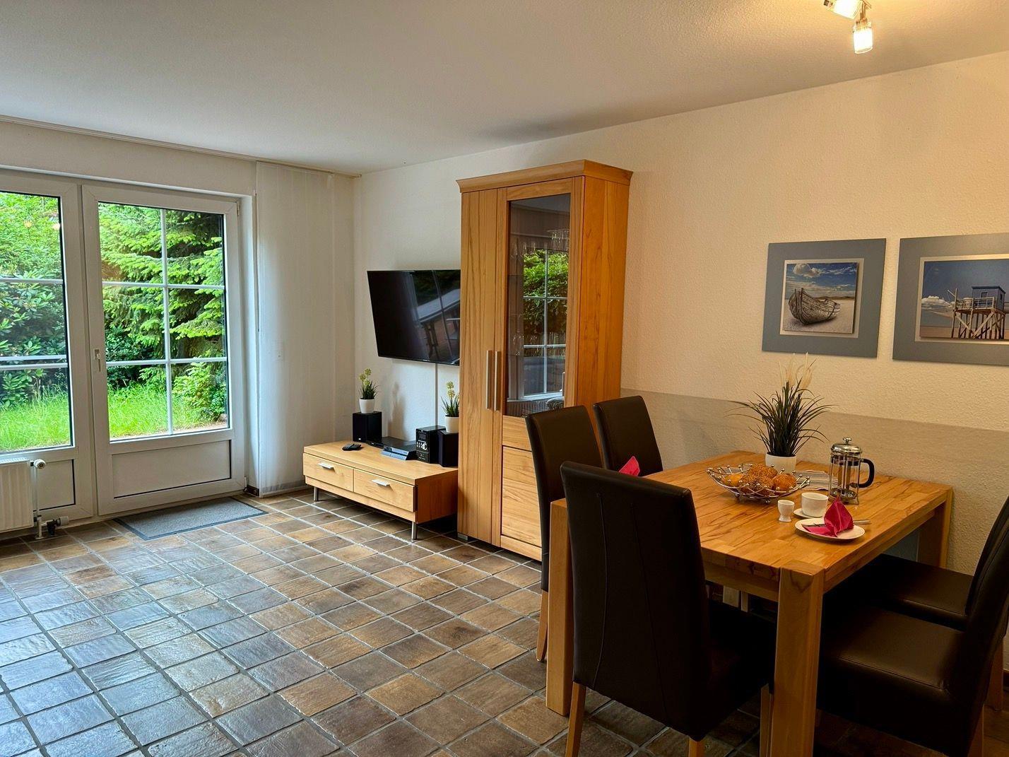 Ein wunderschönes großes Reihenendhaus mit KAMIN, gemütliches Wohnzimmer mit Essecke und Blick in den großen Süd-Garten, separate neue moderne Küche mit schönem Ausblick, 3 Schlafzimmer für 5 Personen - 1x mit Doppelbett 2x2 m und die Bettdecken mit 1,55x2,20m,
