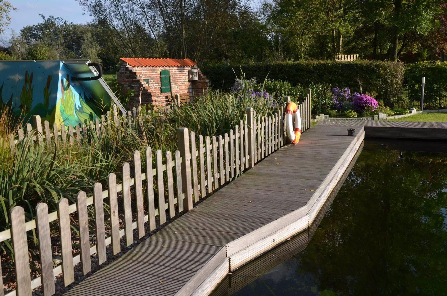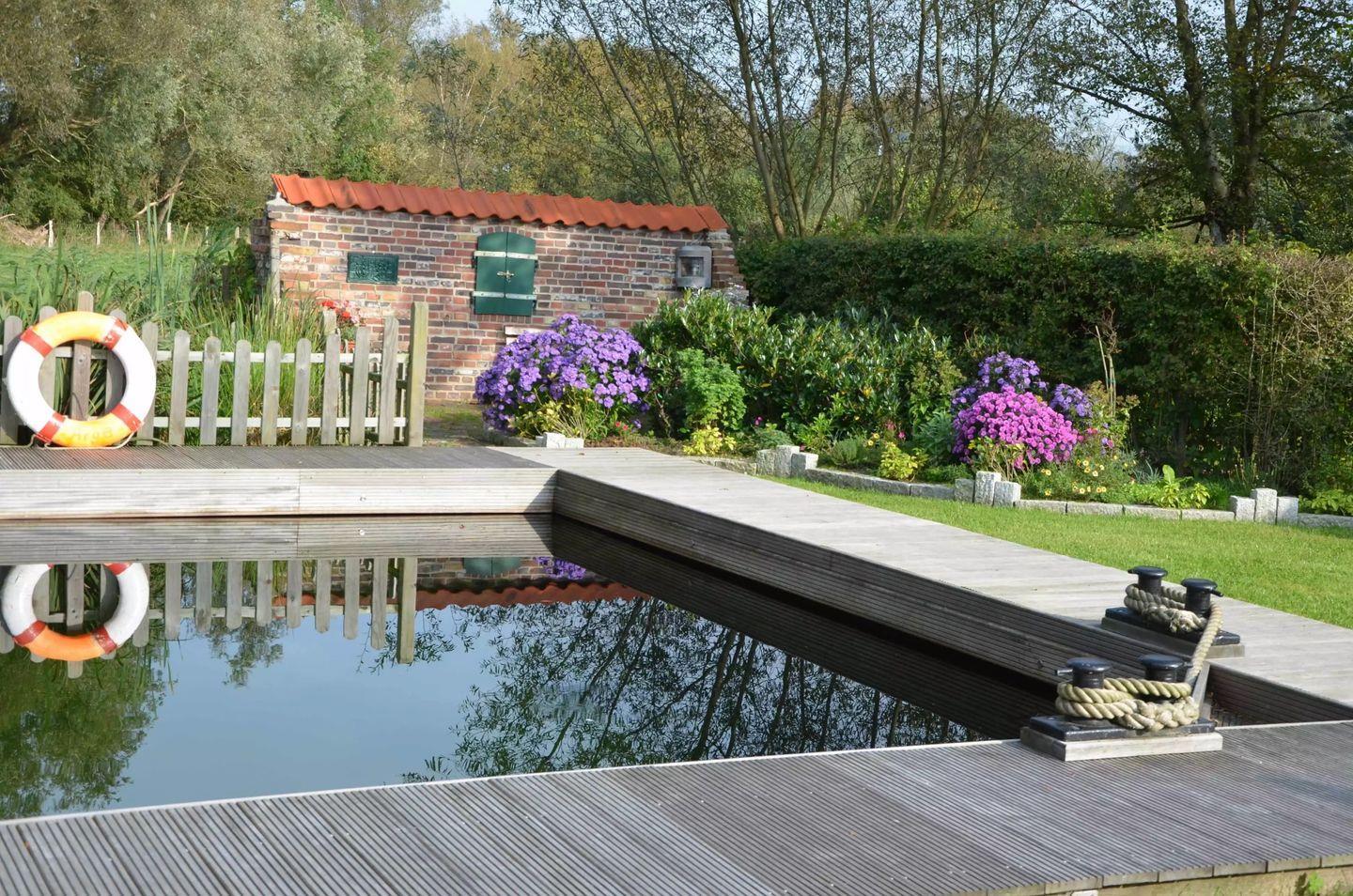 Mit Sauna, Schwimmteich und Dusche, Gartenhaus und Grillplatz.