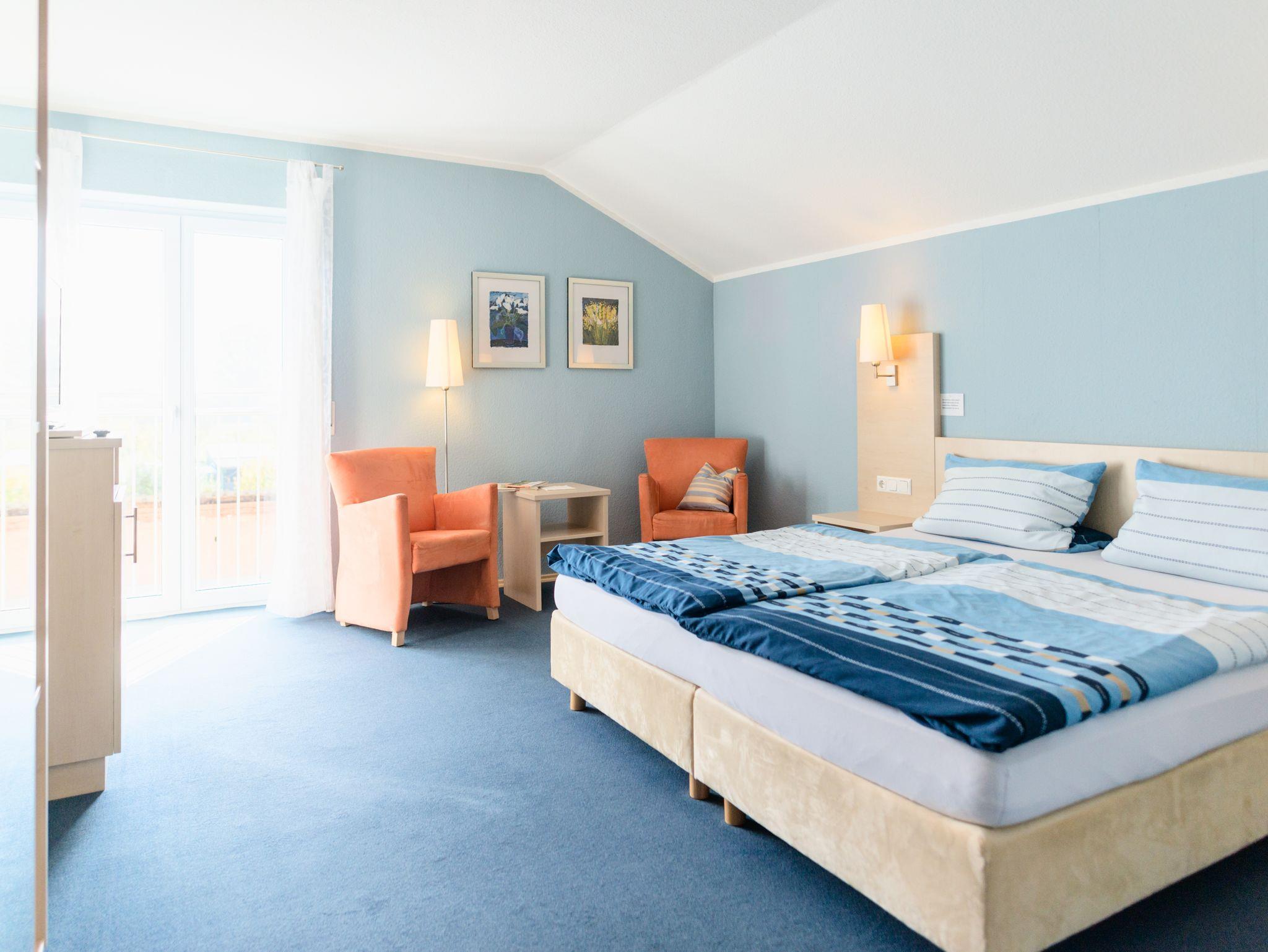 Schöne Doppelzimmer zum Wohlfühlen im idyllischen Weinort Escherndorf (ein großes Doppelbett mit 180 x 200 cm, getrennte Matratzen). Jedes Doppelzimmer ist mit Flachbild-TV, zwei Sitzgelegenheiten und einem Kleiderschrank ausgestattet. Außerdem gehört zum Doppelzimmer ein eigenes Bad mit DU/WC, Haartrockner und Handtüchern.Gemütlicher Sitzplatz auf der Terrasse,