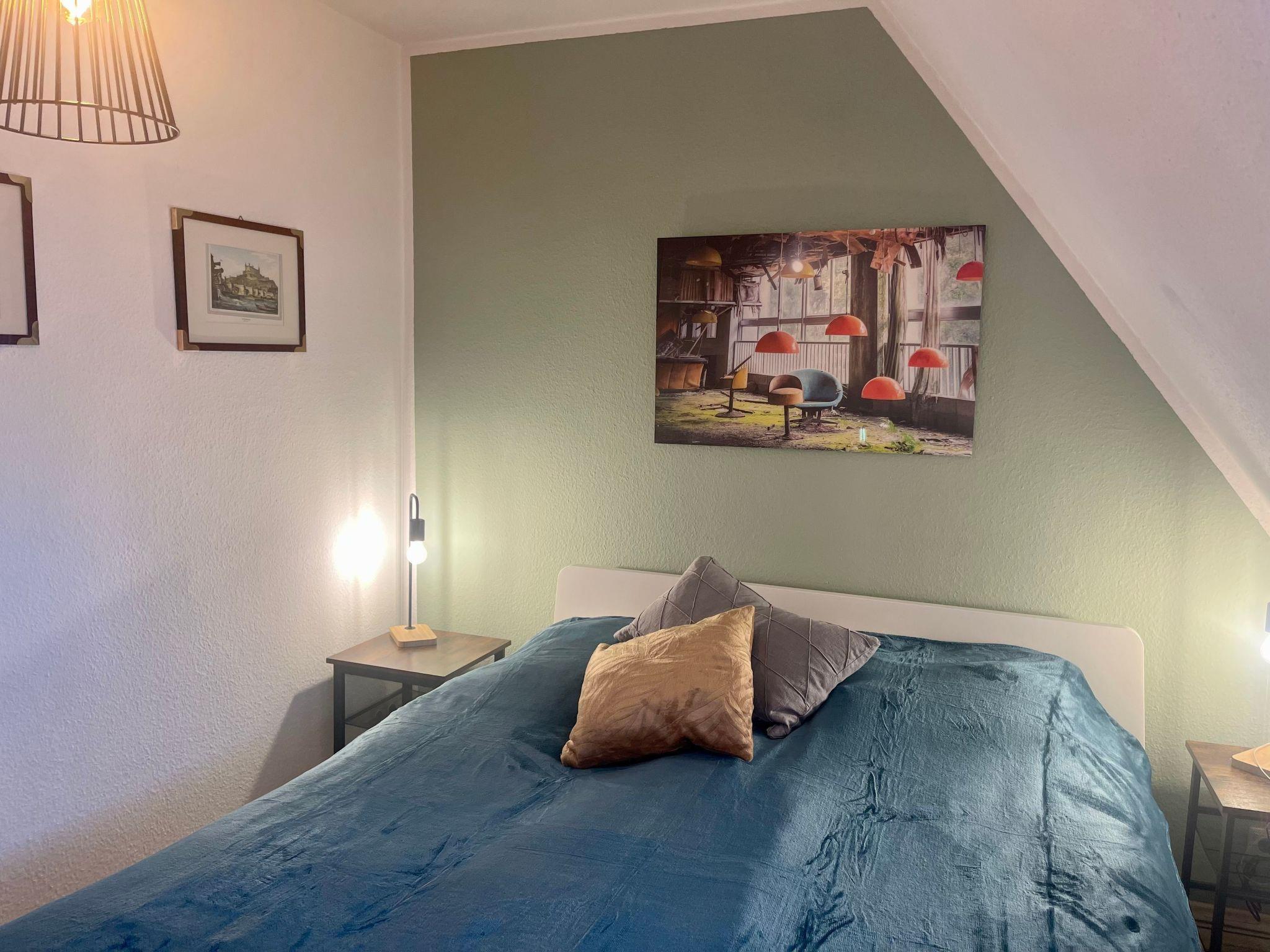 At Ferienhof Peter you will find a cosy holiday flat furnished in blue and white with a hallway, an eat-in kitchen with dining area, the adjoining living room, a separate bedroom and a bathroom with shower. The detached house with several flats is located on a quiet village street, the main road is about 1.5 km away. To the south there is a small pond as well as meadows and fields, behind it you can see the dyke directly from the balcony, on which you have an unobstructed view.