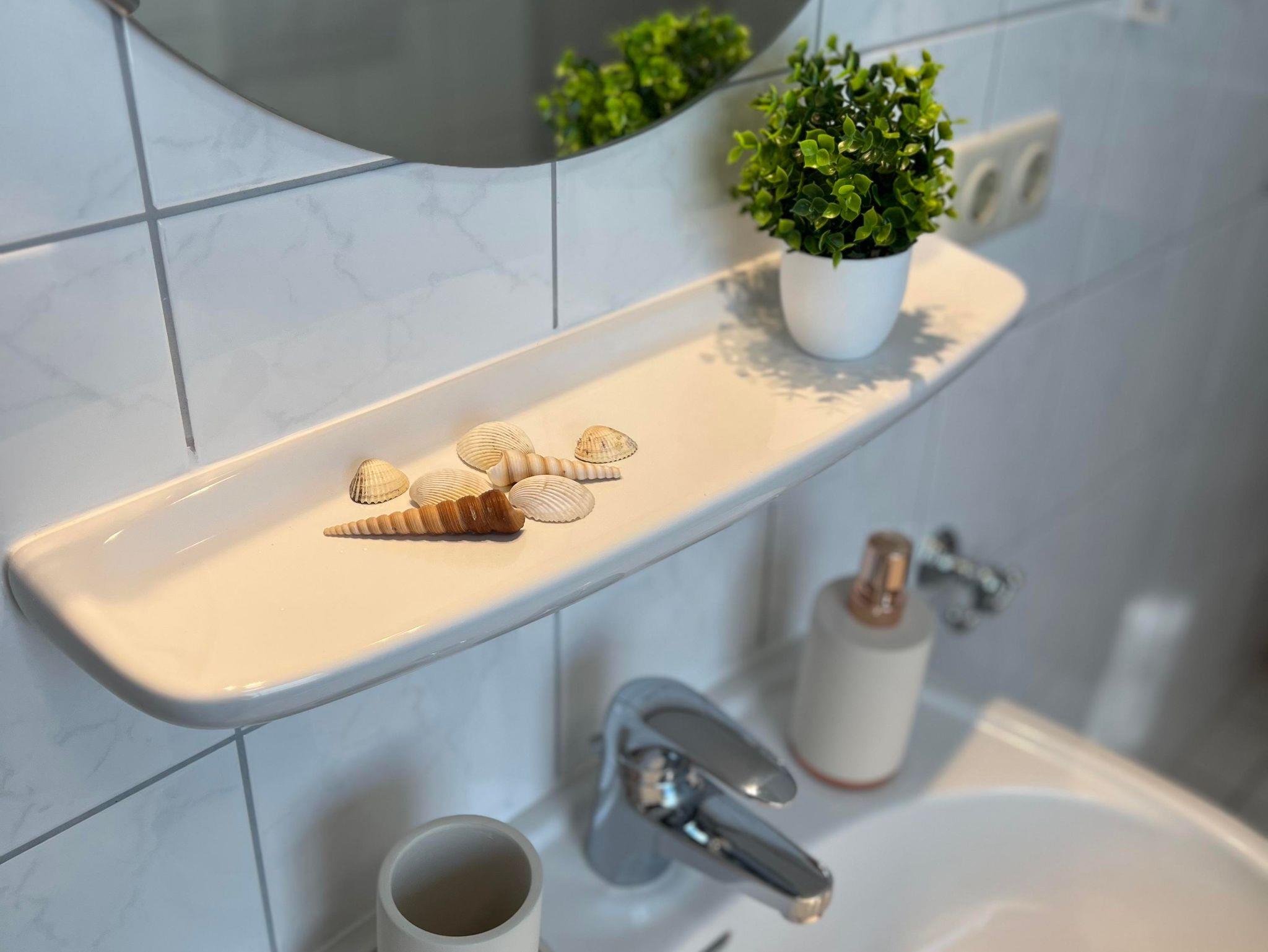Das Duschbad ist mit einer Fußbodenheizung und ebenso mit einem Fön ausgestattet.