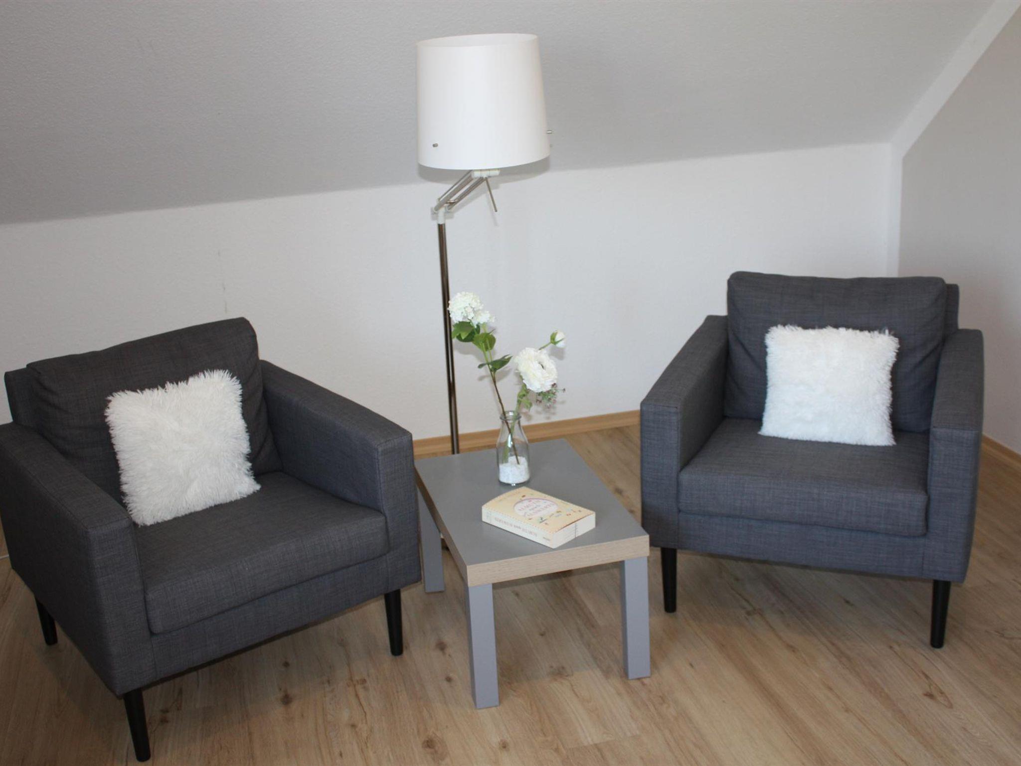mit neuen Matratzen, ein großes Wohnzimmer mit Schlafcouch (140x200cm) und einer gemütlichen Lounge-Ecke, einem SAT-Flachbild-Fernseher und einer Musikanlage.