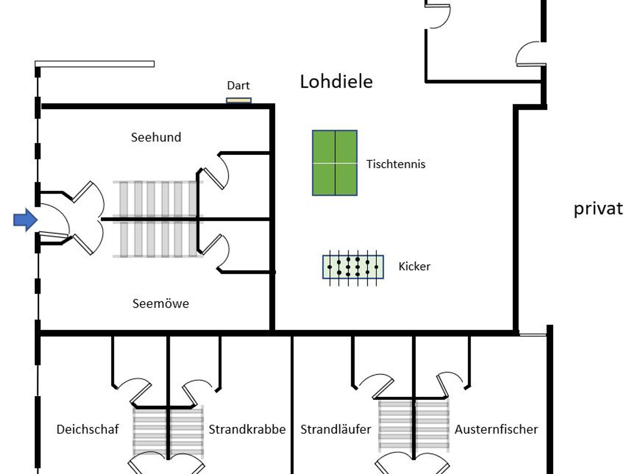 Auf dem 10000 qm großen Grundstück gibt es ausreichend Raum mit Terrassen, Sitz- und Liegemöglichkeiten, Kinderspielplatz und einer großen umzäunten Wiese, die als Hundeauslauf genutzt werden kann. Die große Lohdiele bietet Platz zur Aufbewahrung eurer Sportgeräte und für Spaß und Spiel. Hier findet man neben einer Tischtennisplatte, einen Kicker und eine Dartscheibe falls das Wetter einen mal nicht rauslässt.