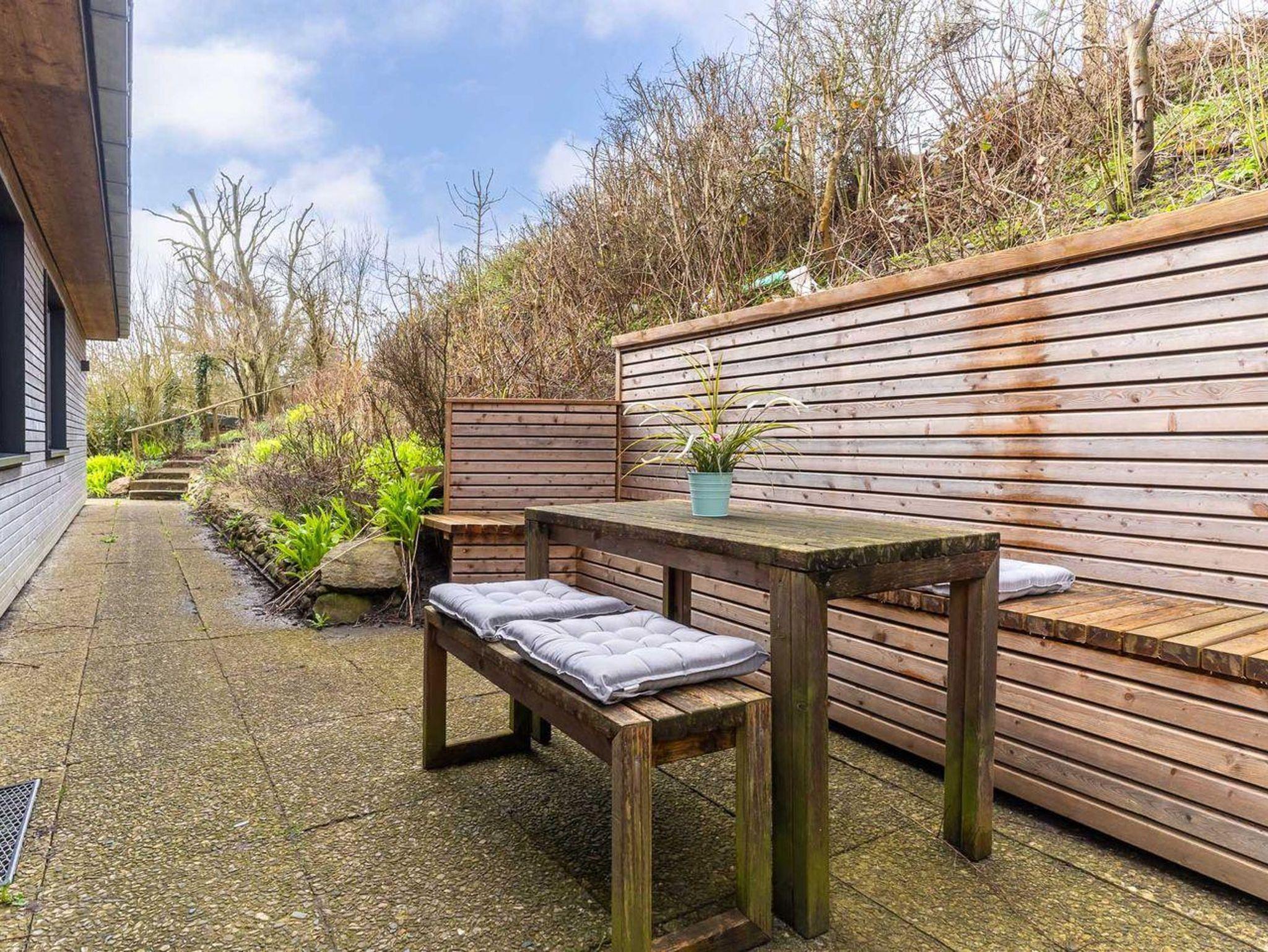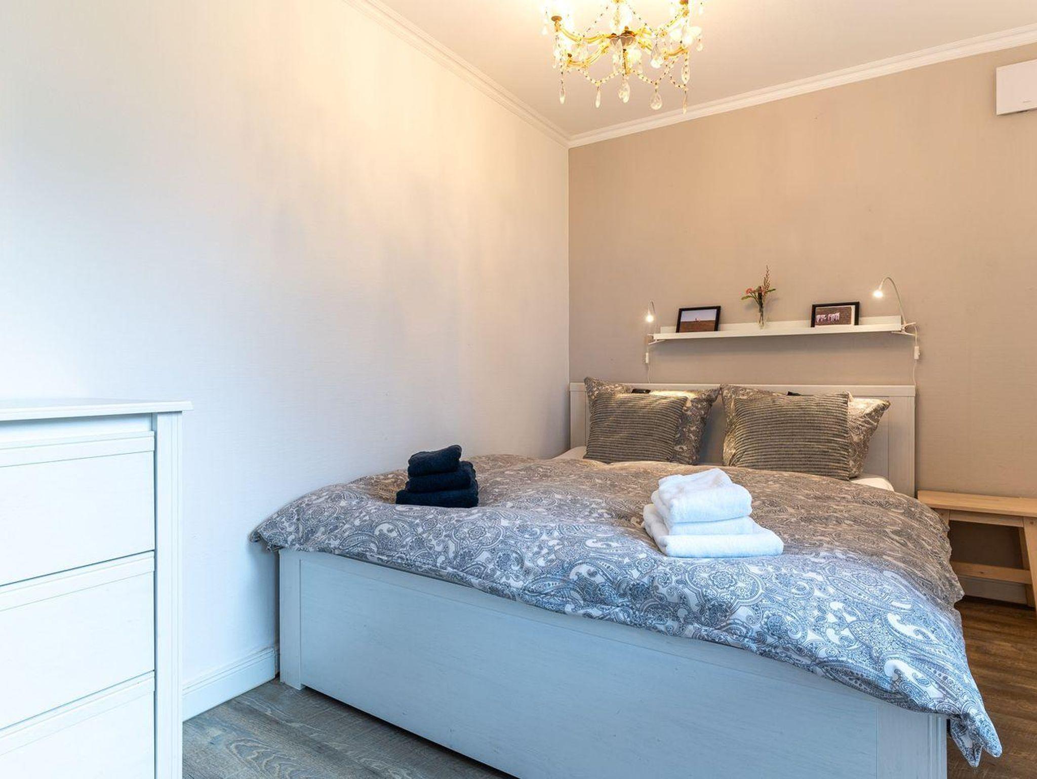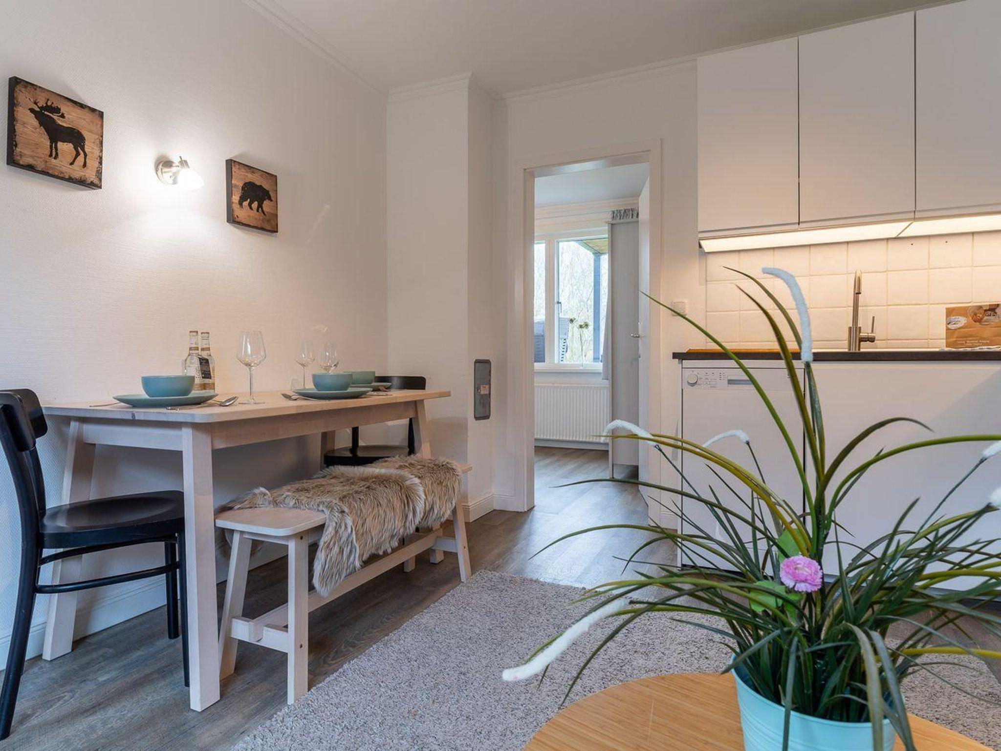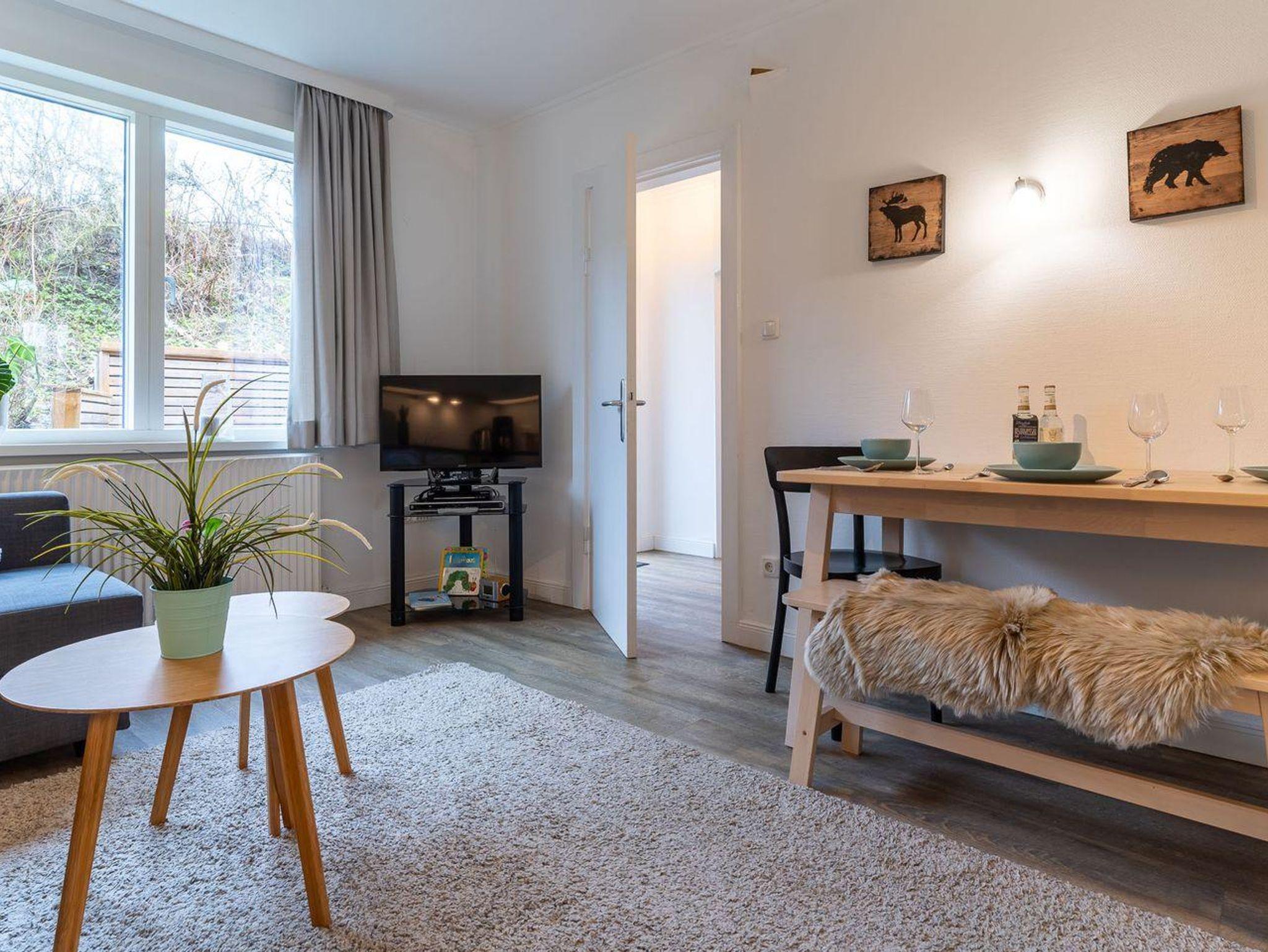 Der Wohnraum ist der ideale Ort zum Entspannen und Verweilen. Hier finden Sie einen Esstisch, eine bequeme Couch, eine TV-Anrichte und eine gut ausgestattete Küchenzeile. Die Küche ist mit einer Spülmaschine, einem Backofen, einer Kaffeemaschine, einem Toaster und reichlich Geschirr ausgestattet, um Ihre Mahlzeiten bequem zuzubereiten.
