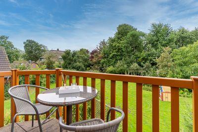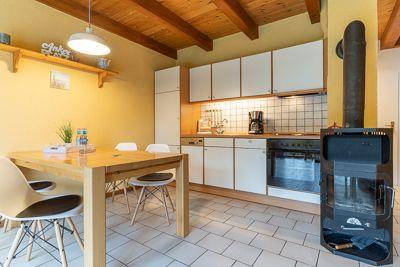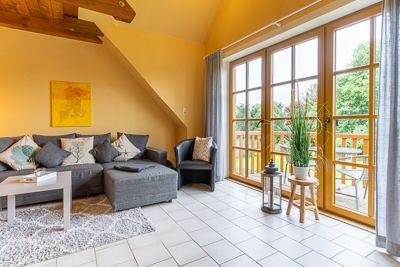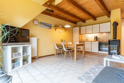 Die ca. 65qm große Wohnung befindet sich im 1. OG des Hauses und bietet Platz für 4 Personen. In der ersten Etage befindet sich ein geräumiges Duschbad und eine großzügige Wohnküche mit Kamin und Zugang zum möblierten Balkon. Über eine Holztreppe gelangen Sie in das 2. Obergeschoss und zu den Schlafräumen. Dort befindet sich ein Schlafzimmer mit einem Doppelbett ( 1,80 x 2,00m ) und ein Schlafzimmer mit zwei Einzelbetten.