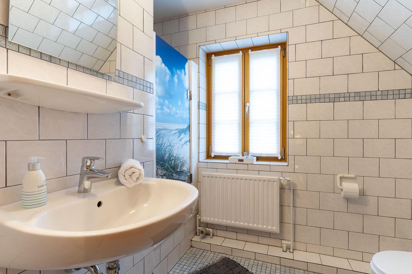 Die ca. 60qm große Wohnung befindet sich im 1. OG des Hauses und bietet Platz für 4 Personen. In der ersten Etage befindet sich ein Schlafzimmer mit Doppelbett, ein geräumiges Duschbad und eine großzügige Wohnküche mit Kamin. Über eine Holztreppe gelangen Sie in das 2. Obergeschoss und in ein weiteres Schlafzimmer mit zwei Einzelbetten.