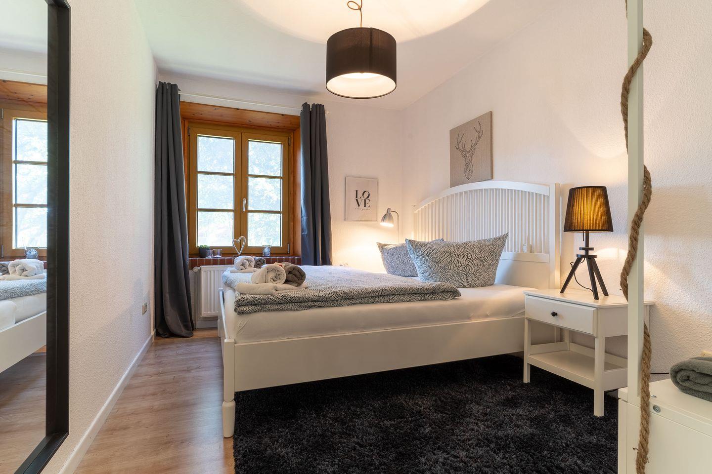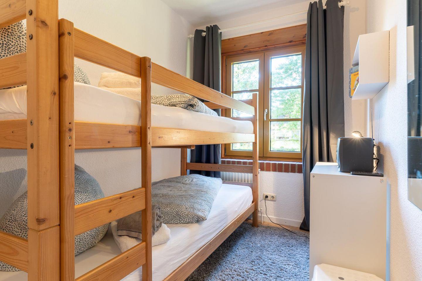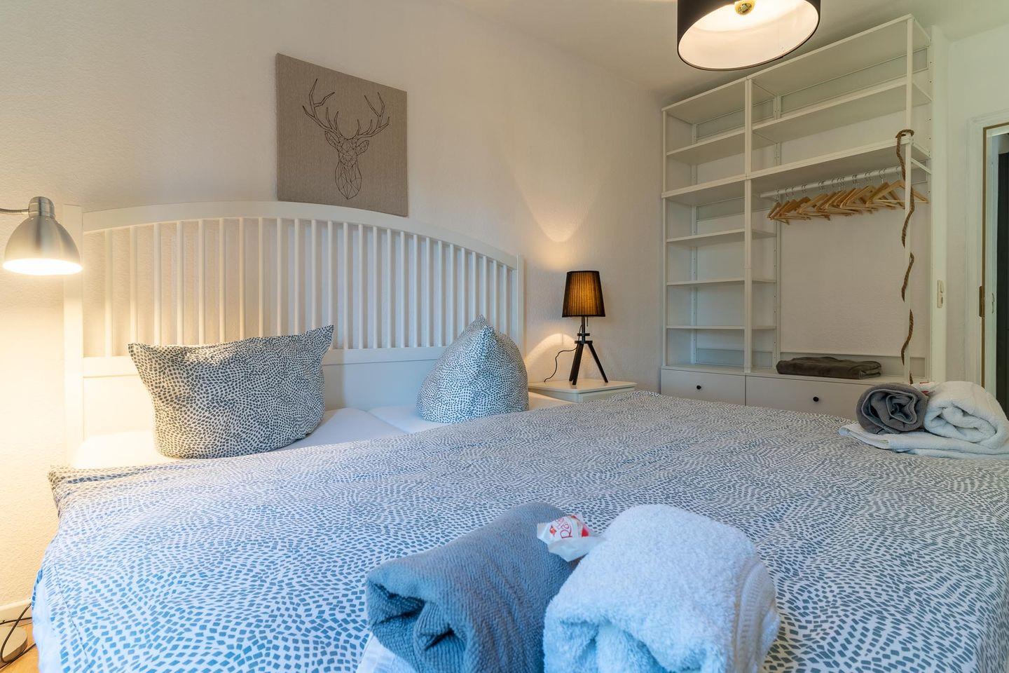 Beim Betreten der Wohnung werden Sie von einer einladenden Atmosphäre empfangen. Der gemütliche Schlafraum mit einem Doppelbett lädt zum Entspannen und Träumen ein. Der zweite Schlafraum ist mit einem Etagenbett ausgestattet und bietet ausreichend Platz für Kinder oder Freunde.