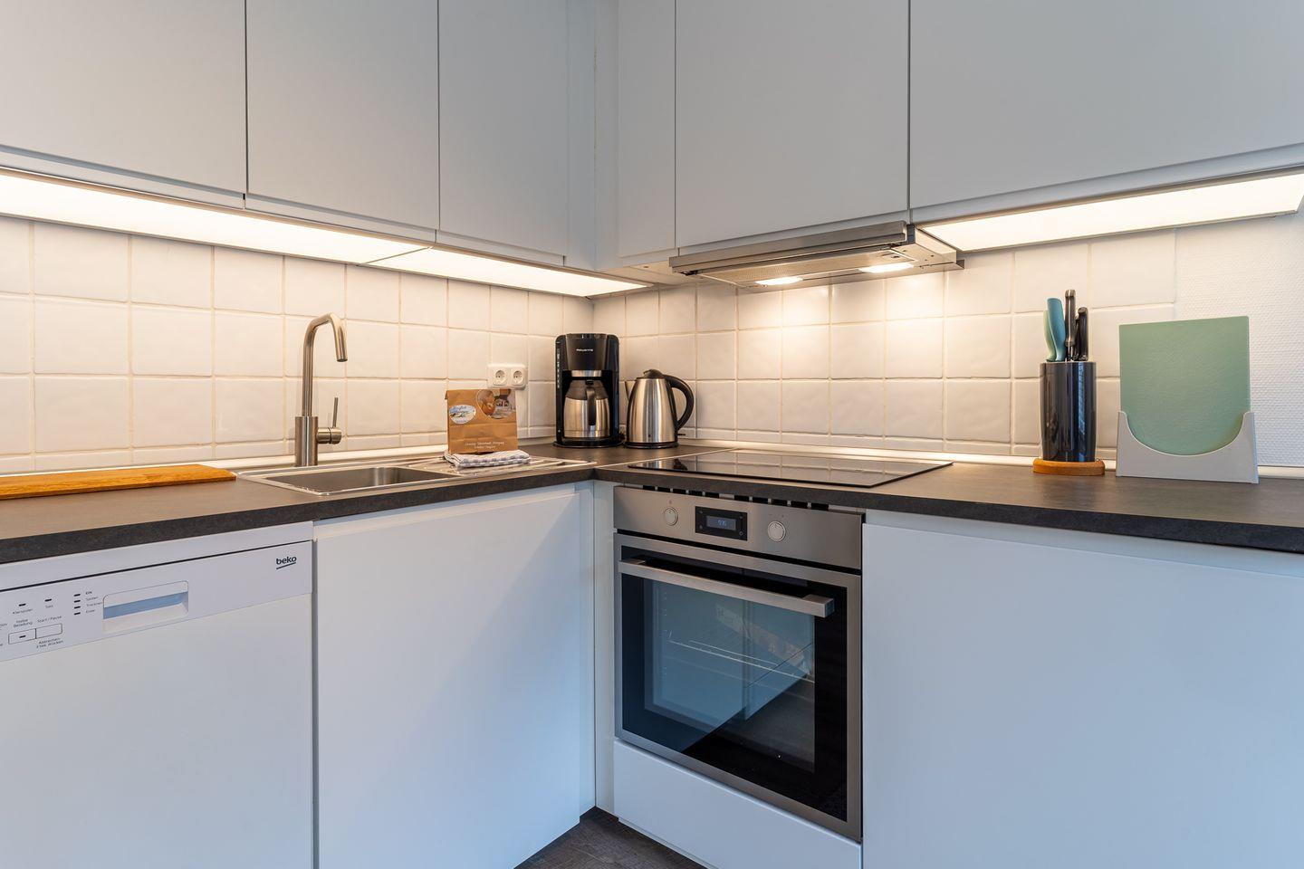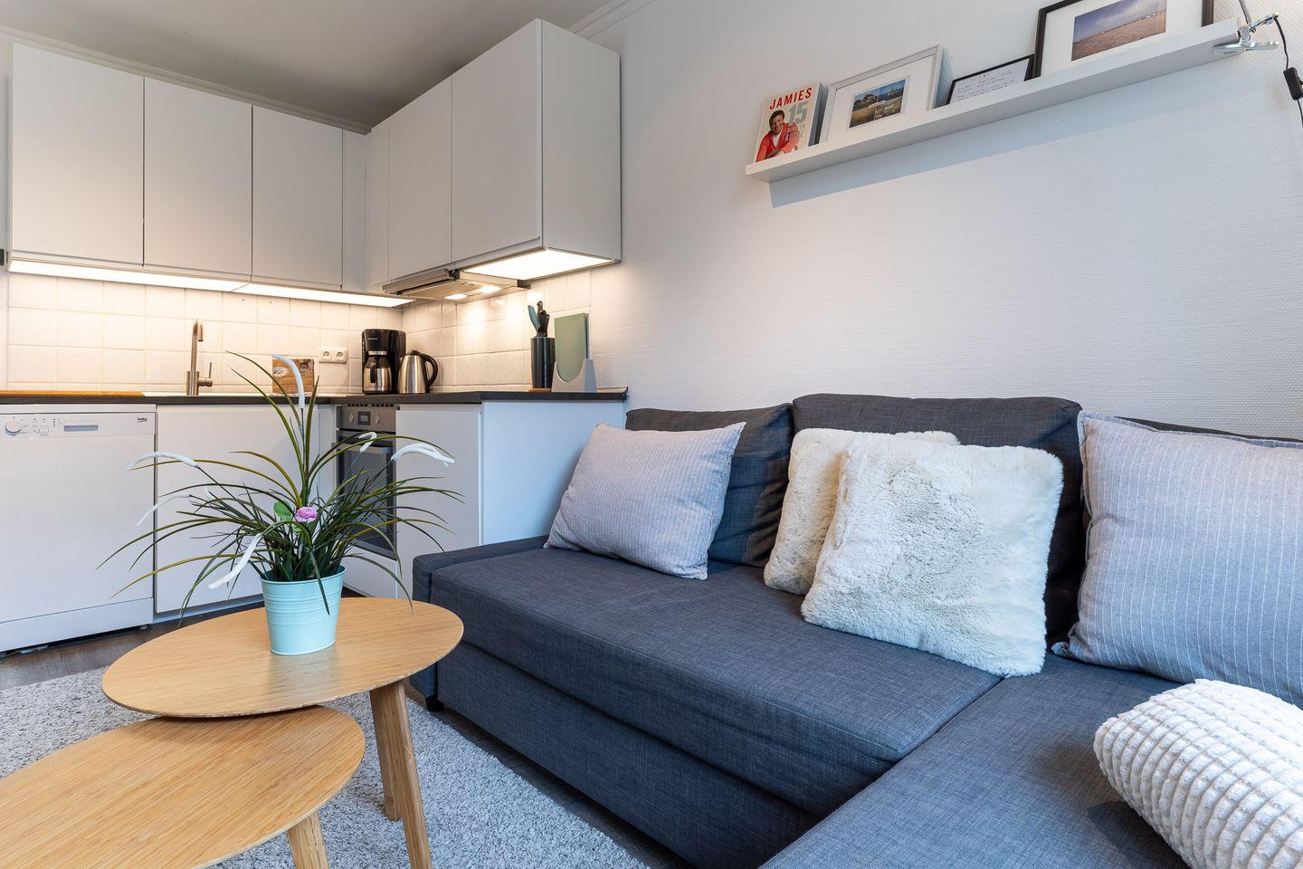 Der Wohnraum ist der ideale Ort zum Entspannen und Verweilen. Hier finden Sie einen Esstisch, eine bequeme Couch, eine TV-Anrichte und eine gut ausgestattete Küchenzeile. Die Küche ist mit einer Spülmaschine, einem Backofen, einer Kaffeemaschine, einem Toaster und reichlich Geschirr ausgestattet, um Ihre Mahlzeiten bequem zuzubereiten.