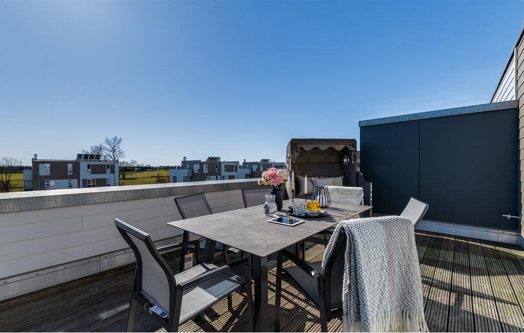 VON MANDERLEY BALTIC VIEW er en stilfuld, maritim og højkvalitets møbleret maisonette ferielejlighed på 1. og 2. sal med en lysbelyst vinduesfront og en stor terrasse, hvorfra I har udsigt til de naturbeskyttede strandenge og Østersøen. Hav. Hyggelig afslapning med BALTIC VIEW. Når I træder ind i ferielejligheden på første sal, begynder I at sætte farten ned fra første øjeblik, fordi I befinder jer direkte i lejlighedens afslapningsområde. Uanset hvilket af de tre stilfuldt indrettede soveværelser I vælger, er I garanteret en afslappende søvn. To af de tre soveværelser er udstyret med komfortable boxspring dobbeltsenge, det andet har to boxspring enkeltsenge. Der er tv i alle soveværelser, så I kan afslutte jeres vellykkede dag med at slappe af i sengen. Der er også et veludstyret badeværelse på denne etage med bruser i gulvniveau og infrarød sauna. Der er også en vaskemaskine der. Vel på anden sal lever ferielejligheden op til sit navn. Her vil I blive forkælet med en gulv-til-loft vinduesfront med den tilstødende terrasse og udsigt over de naturbevarende strandenge til Østersøen. Ren faktor! Opholdsstuen i maritim stil med den hyggelige opholdsstue indbyder til mange timer sammen. Hvis vejret tager en nordlig drejning, vil pejsen skabe en hyggelig atmosfære. Stuen er også udstyret med et fjernsyn. Det integrerede køkken med spiseplads til 6 personer er perfekt udstyret. På den store terrasse med sydvendt orientering og drømmeudsigt kan I arrangere hyggelige grillaftener eller nyde solen på liggestolen. Et andet badeværelse med ekstra toilet, håndvask og badekar byder på plads nok og alternative muligheder til flere personer og afrunder udstyret i denne velværeoase, som sikrer afslapning på ethvert tidspunkt af året. Kunne I tænke jer at rejse med to biler? Det er ikke noget problem, for VON MANDERLEY BALTIC VIEW har to parkeringspladser lige foran huset. I finder også plads nok til cykler eller barnevogn i cykelskuret. Den naturlige sandstrand Weidefelder med kiosk, restaurant, strandstole og forskellige muligheder for vandsport kan nås på få hundrede meter. I umiddelbar nærhed er der også den fantasifuldt designede Adventure Golf minigolfbane og lystbådehavnen i OstseeResort Olpenitz med forskellige indkøbsmuligheder. Resortets beliggenhed direkte mellem mundingen af Slime og Østersøen og tæt på den smukke by Kappeln byder også på en række forskellige udflugtsmuligheder med båd, cykel eller til fods. Vores foretrukne sted: den store terrasse med udsigt over Østersøen over de naturbevarende strandenge. BALTISK UDSIGT. Bemærk: Sommerhuset er stadig ved at blive færdiggjort. Billeder af huset, indretning og indretning blev visualiseret med venlig støtte fra Helma Ferienimmobilien. Feriehuset adskiller sig i indretningsstil. Bemærk venligst: OstseeResort Olpenitz er meget populært, og der bygges fortsat i parken. Ikke desto mindre kan I se frem til en 5-stjernet standard og et førsteklasses ophold. Byggeaktiviteterne kommer ikke til at forstyrre jer på ferien, og derfor gives der ikke yderligere afslag i prisen.
