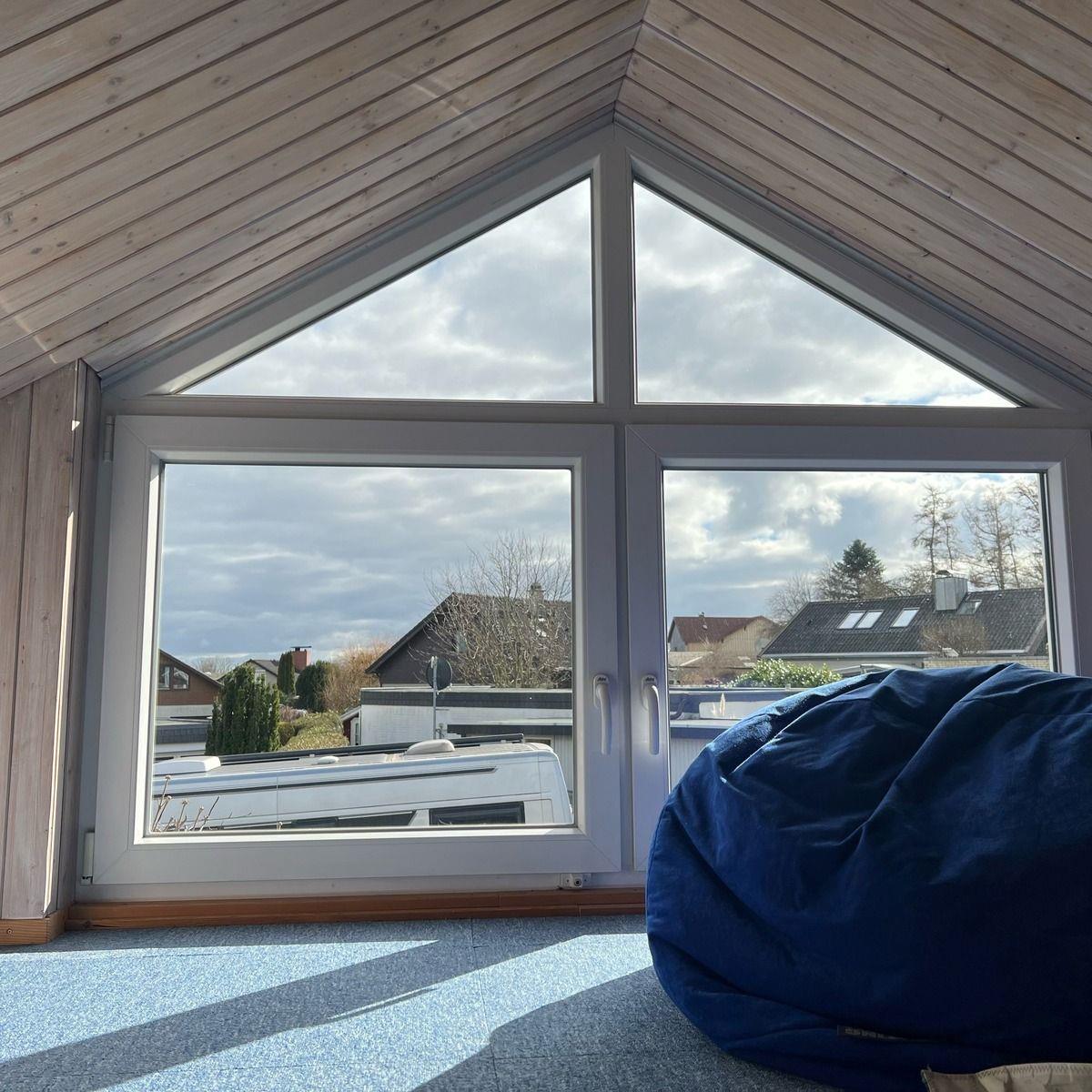In unserem freistehenden, 49 qm großen Ferienhaus mit eigenem Garten erwartet Sie im Erdgeschoss ein kombiniertes Wohn- und Esszimmer mit einer Schlafcouch, einem großen Smart-TV und einem Kaminofen für gemütliche Stunden in der kälteren Jahreszeit. Ein zusätzlicher, gemütlicher Sitzbereich mit Meerblick liegt auf der Empore unter dem Dach und ist über eine Leiter zu erreichen.