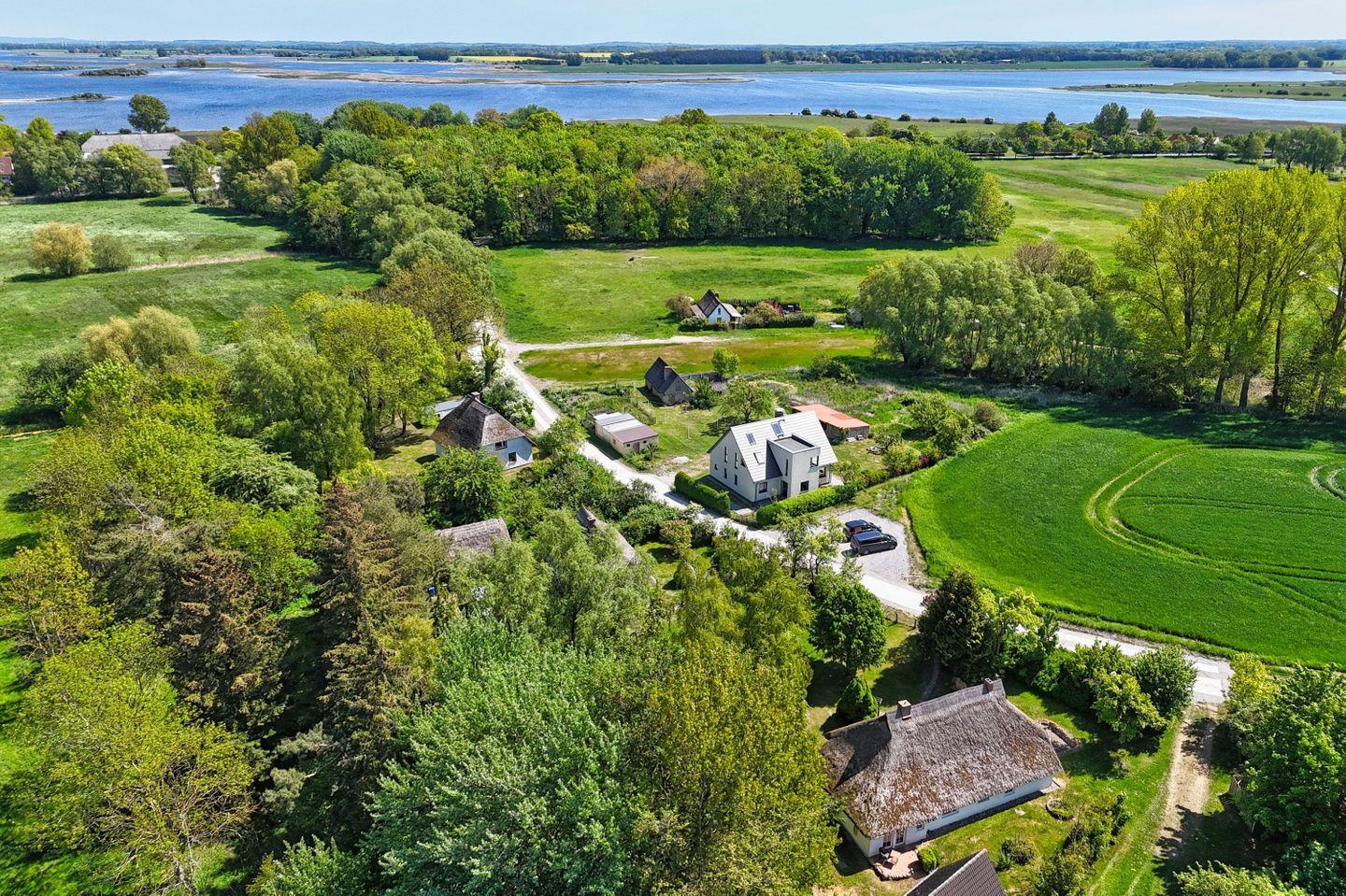 Der Ort selbst bezaubert mit traditionellen Backsteinbauten, reetgedeckten Dächern und gepflegten Gärten. Im Zentrum thront die imposante St.-Marien-Kirche aus dem 14. Jahrhundert, ein Meisterwerk gotischer Backsteinkunst mit einem kunstvoll geschnitzten Flügelaltar. Von hier aus eröffnet sich ein weiter Blick über die weite Marschlandschaft – geprägt von Wiesen, Feldern und stillen Boddengewässern.