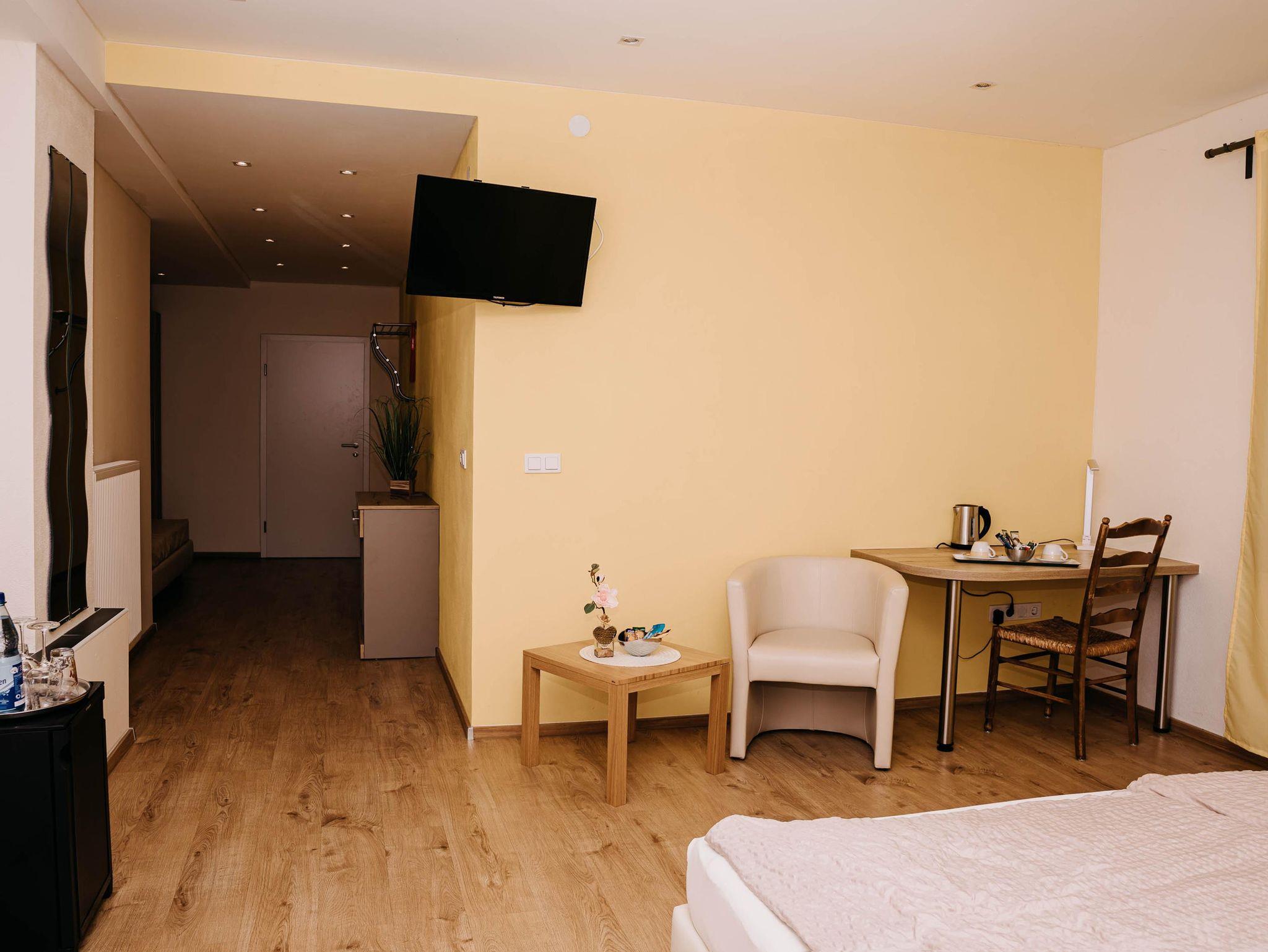 Die Zimmer sind mit allem ausgestattet, was zu einem wohlfühlen in der Pfalz gehört, natürlich ist in jedem Zimmer eine Mini-Bar mit einem guten, leckeren Manz-Wein.