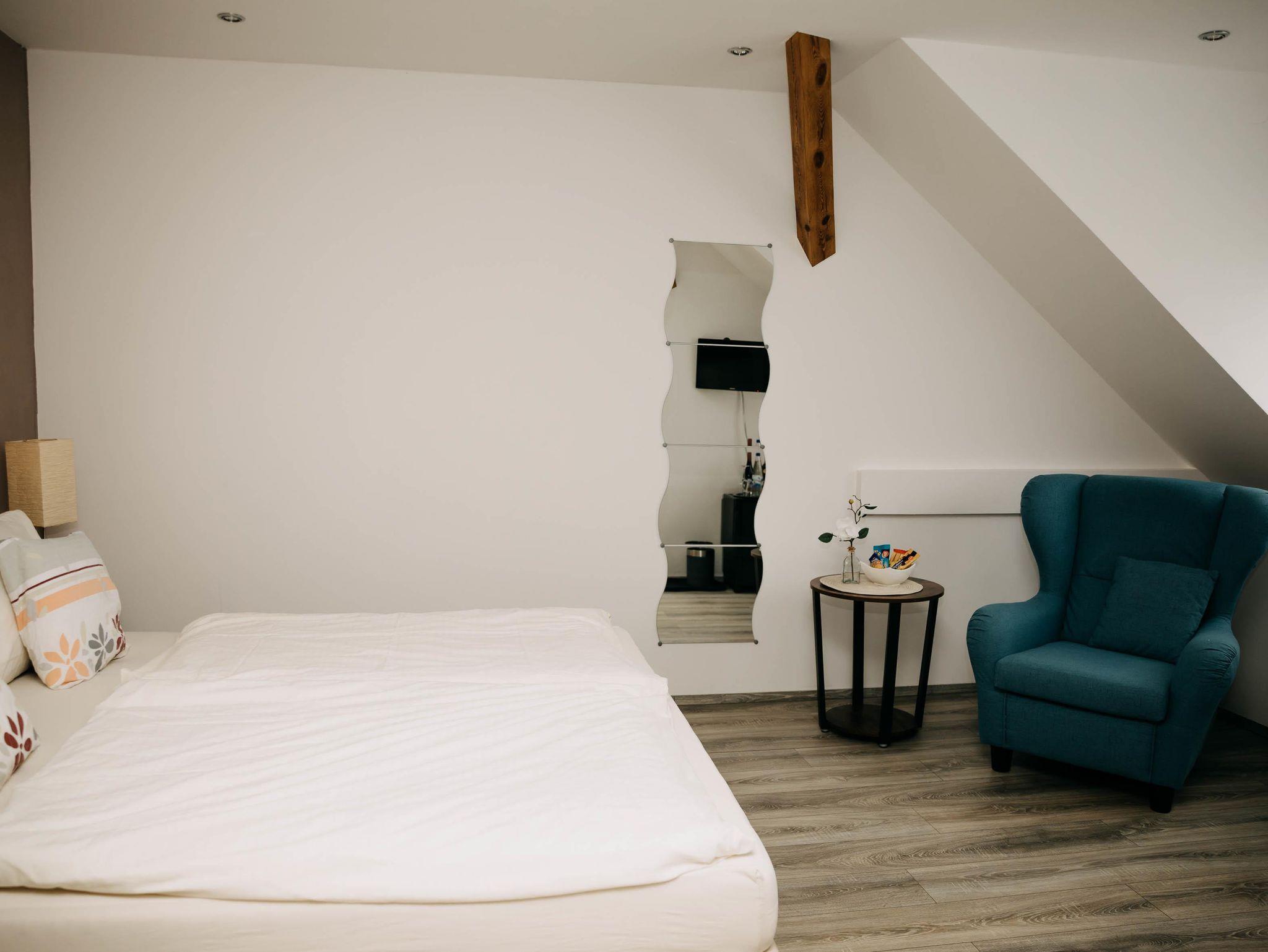 Nach fast einjähriger Bauzeit, entstanden in einem alten Gebäudetrakt 6 Doppelzimmer. Seit 2023 verfügen wir auch über ein barrierefreies siebtes Zimmer.