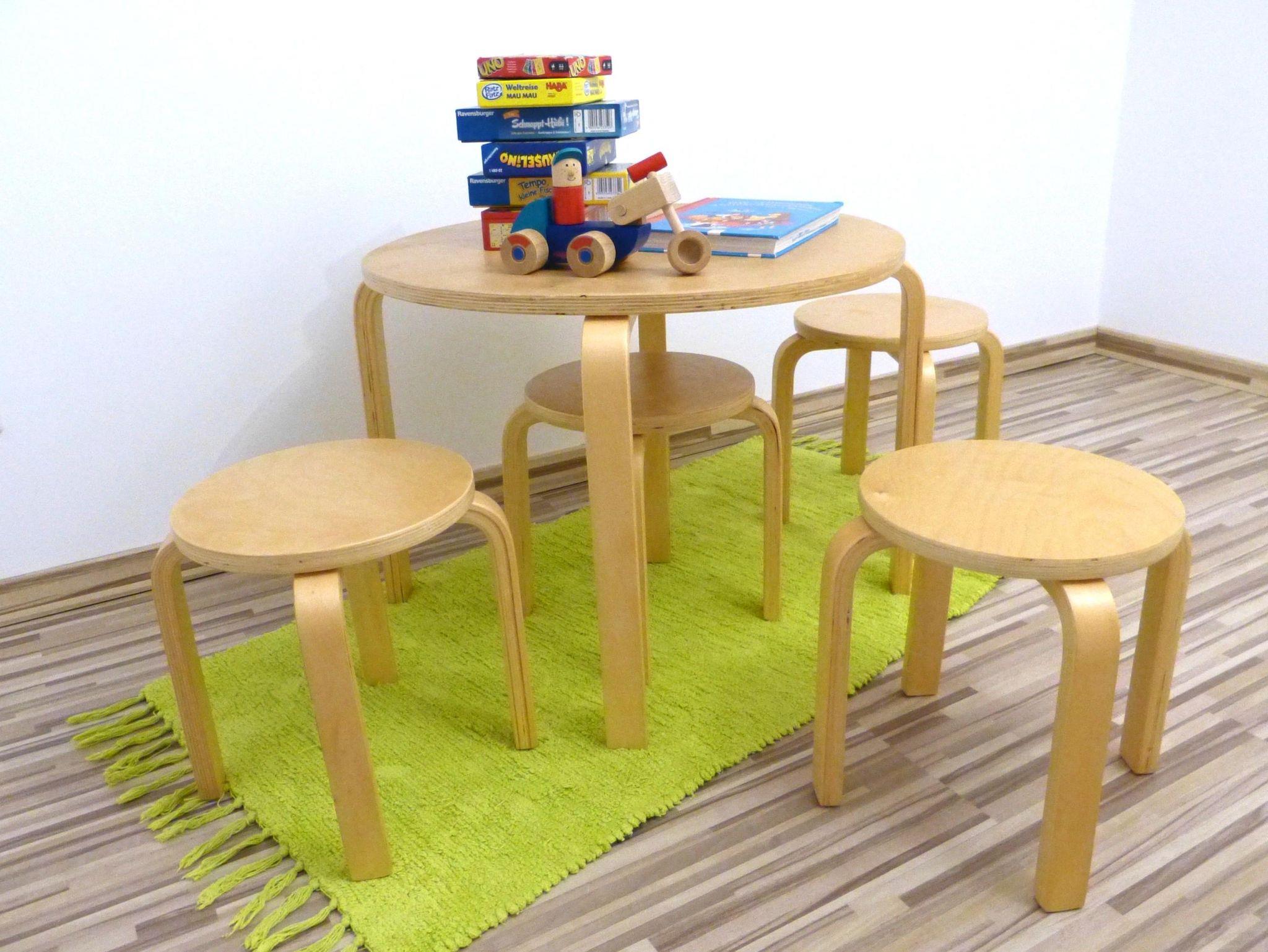 Um kleinen Gästen den Aufenthalt so angenehm wie möglich zu machen, ist die Ferienwohnung mit einer umfassenden Baby- und Kleinkinderausstattung ausgerüstet. Dazu gehört ein Holzgitterbett für Babys und Kleinkinder, eine Bade-Wickel-Kombination im Schlafzimmer der unteren Ebene, ein variabler Hochstuhl, Spielmaterial, ein Fahrradkindersitz und ein Bobby Car. Die Steckdosen sind mit einer Kindersicherung geschützt. Um die Unterkunft perfekt auf Ihre Bedürfnisse abzustimmen, teilen Sie Ihre Wünsche zur Kinderausstattung bis spätestens 10 Tage vor der Anreise mit.