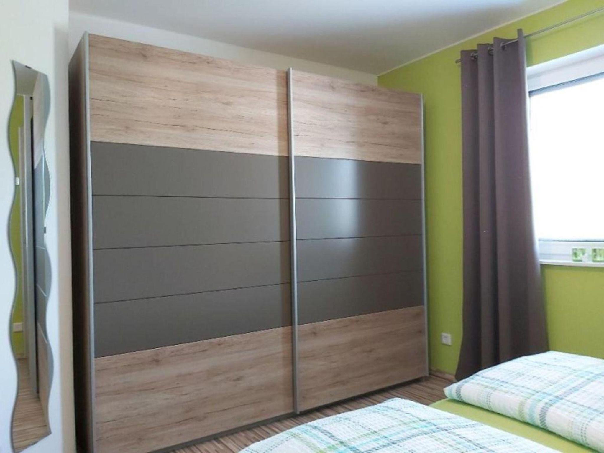 Das Zuhause auf Zeit bietet zwei Schlafzimmer - eines davon befindet sich in der unteren Ebene. Dieser Schlafraum ist mit einem komfortablen Doppelbett mit offenem Fußteil, einem großzügigen Schwebetürenschrank sowie zwei Nachtkonsolen ausgestattet. Ein Safe in diesem Schlafzimmer, bietet Raum für Ihre wertvollsten Gegenstände.