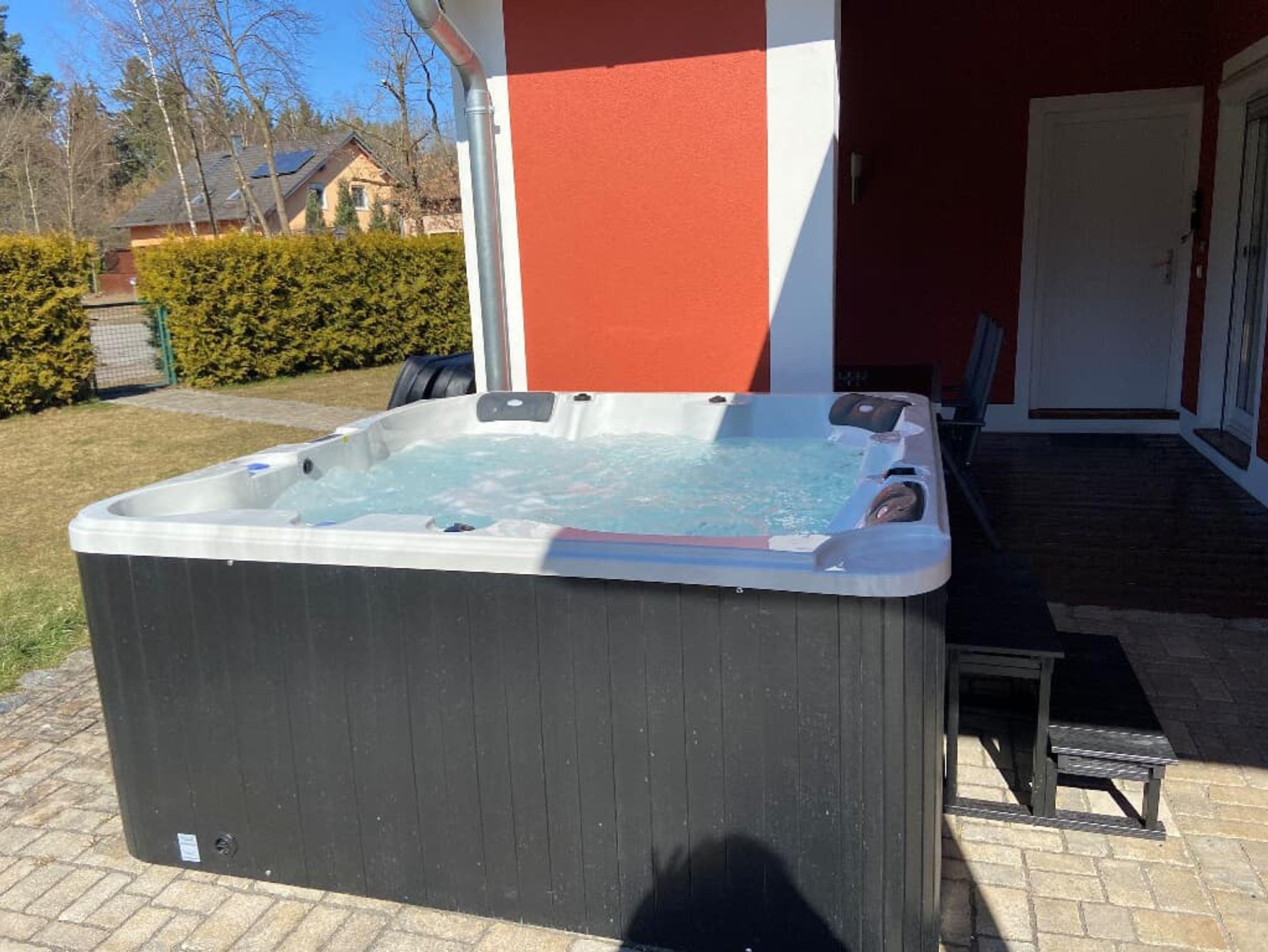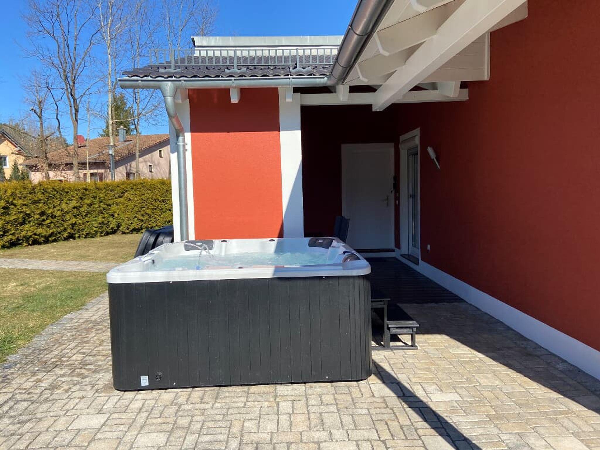 Zwei Bungalows nebeneinander, hier der kleine schnuckelige Winkelbungalow, genannt: Brückelseehaus ist ideall für Familie und Firmenangestellte. Die gute Raumaufteilung ermöglicht dennoch für 6 Personen Platz: 5 Betten und eine zusätzliche Schlafmöglichkeit im WZ (auf Anfrage).Der Whirlpool vor der Terasse kann gegen einen Aufpreis dazugebucht werden.