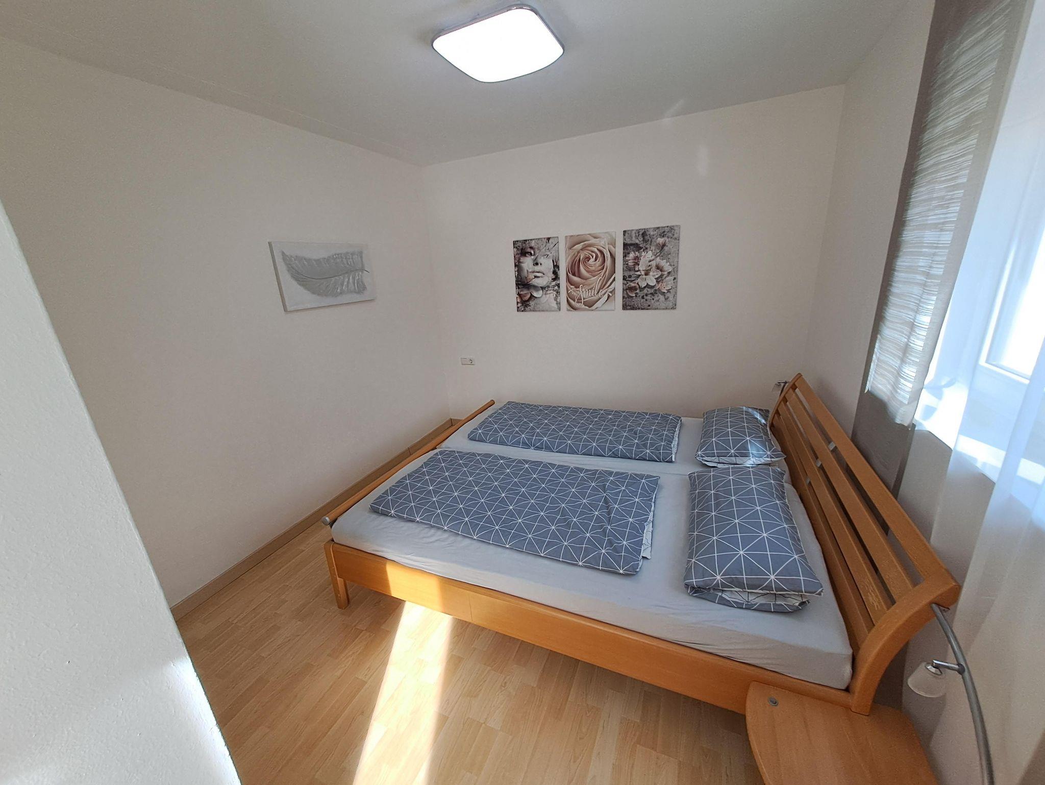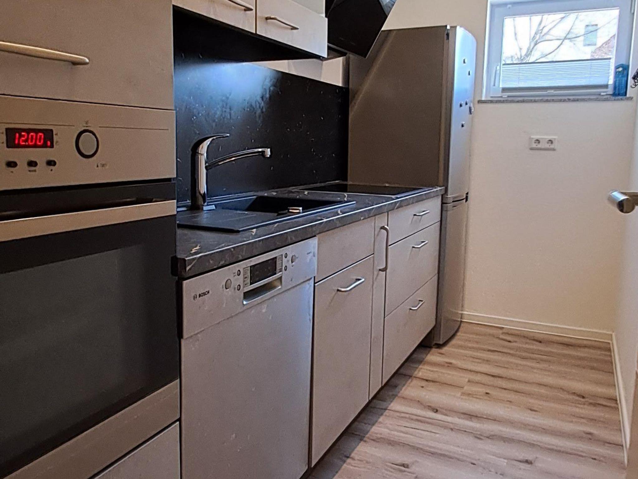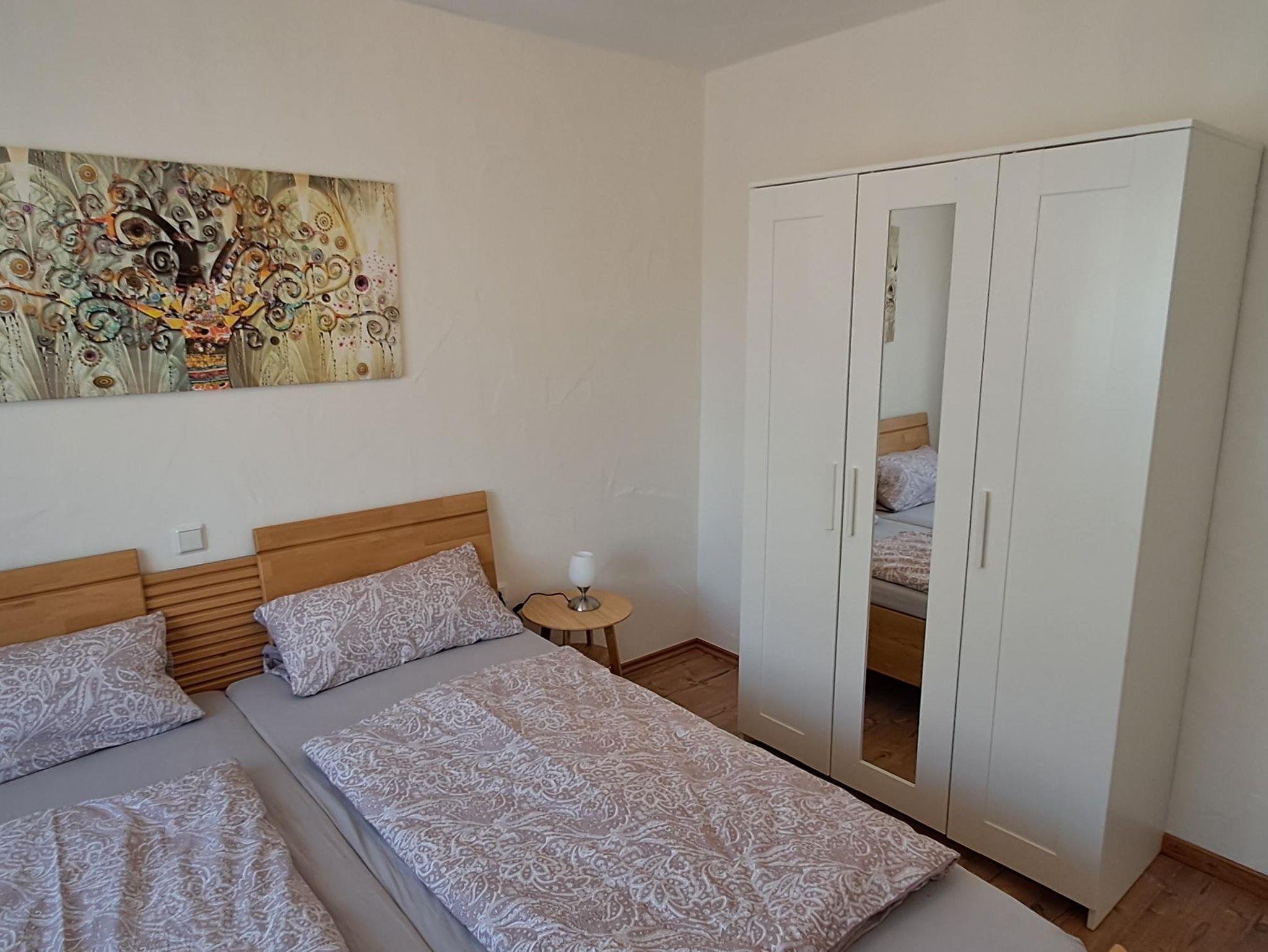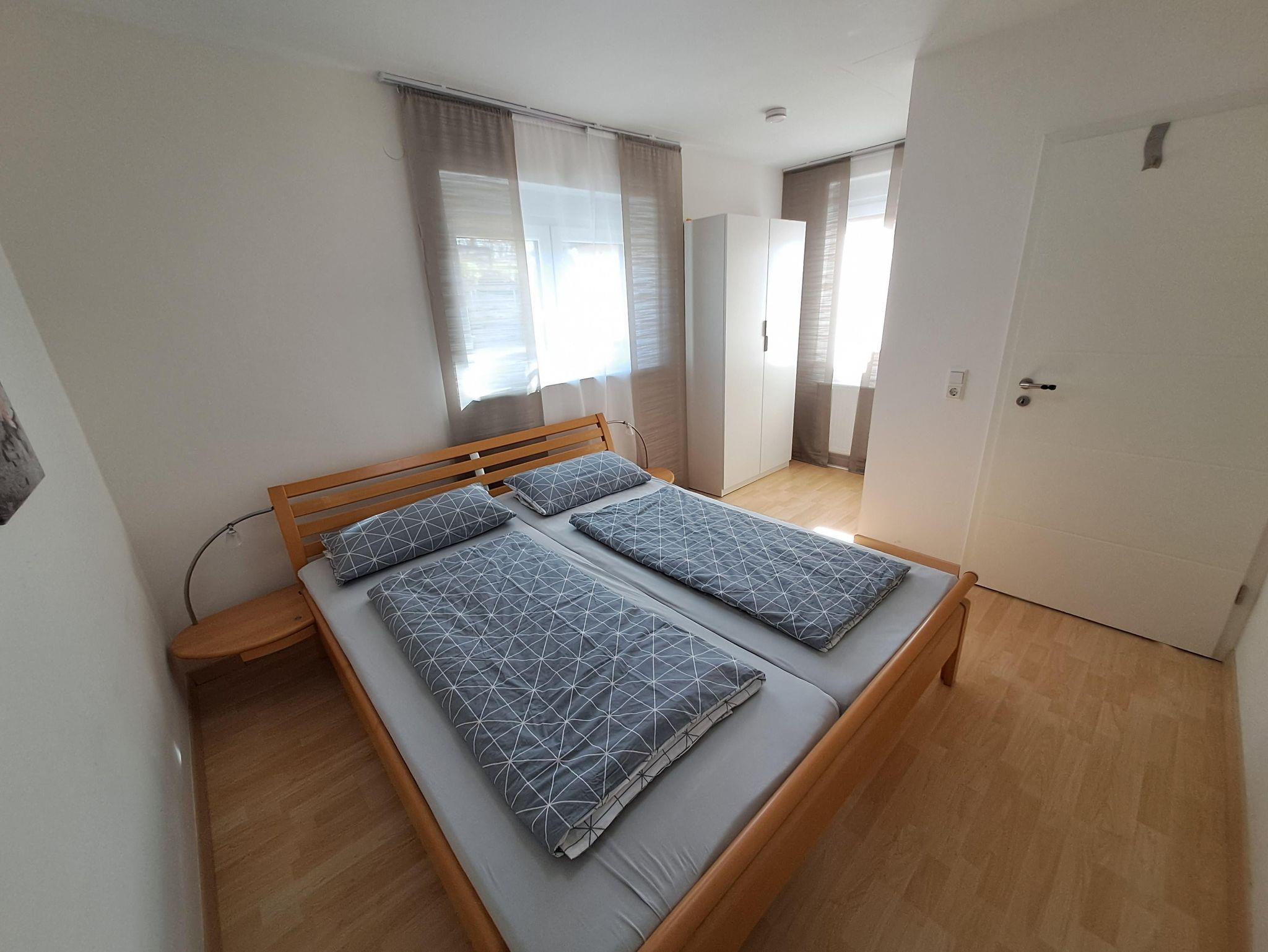 Wir vermieten unsere gemütliche, neu renovierte Ferienwohnung im Erdgeschoss mit 76 qm, welche über 2 Schlafzimmer mit je einem Doppelbett (1,80x2m, 2 Matratzen) verfügt und für bis zu 4 Personen ausgelegt ist. Bettwäsche und Handtücher müssen mitgebracht werden, Kinderbett und Kinderstuhl werden auf Anfrage bereitgestellt. Unsere neue Küche ist mit Spülmaschine, Backofen, Kochfeld, Kühl-Gefrierkombi, Mikrowelle, Kaffeemaschine, Wasserkocher und Toaster voll ausgestattet. Der Wohnbereich besteht aus großem Sofa, Fernseher, Tisch, 4 Stühlen und einer kleinen Leseecke. Das Badezimmer ist neu renoviert mit Dusche, WC und Waschbecken.