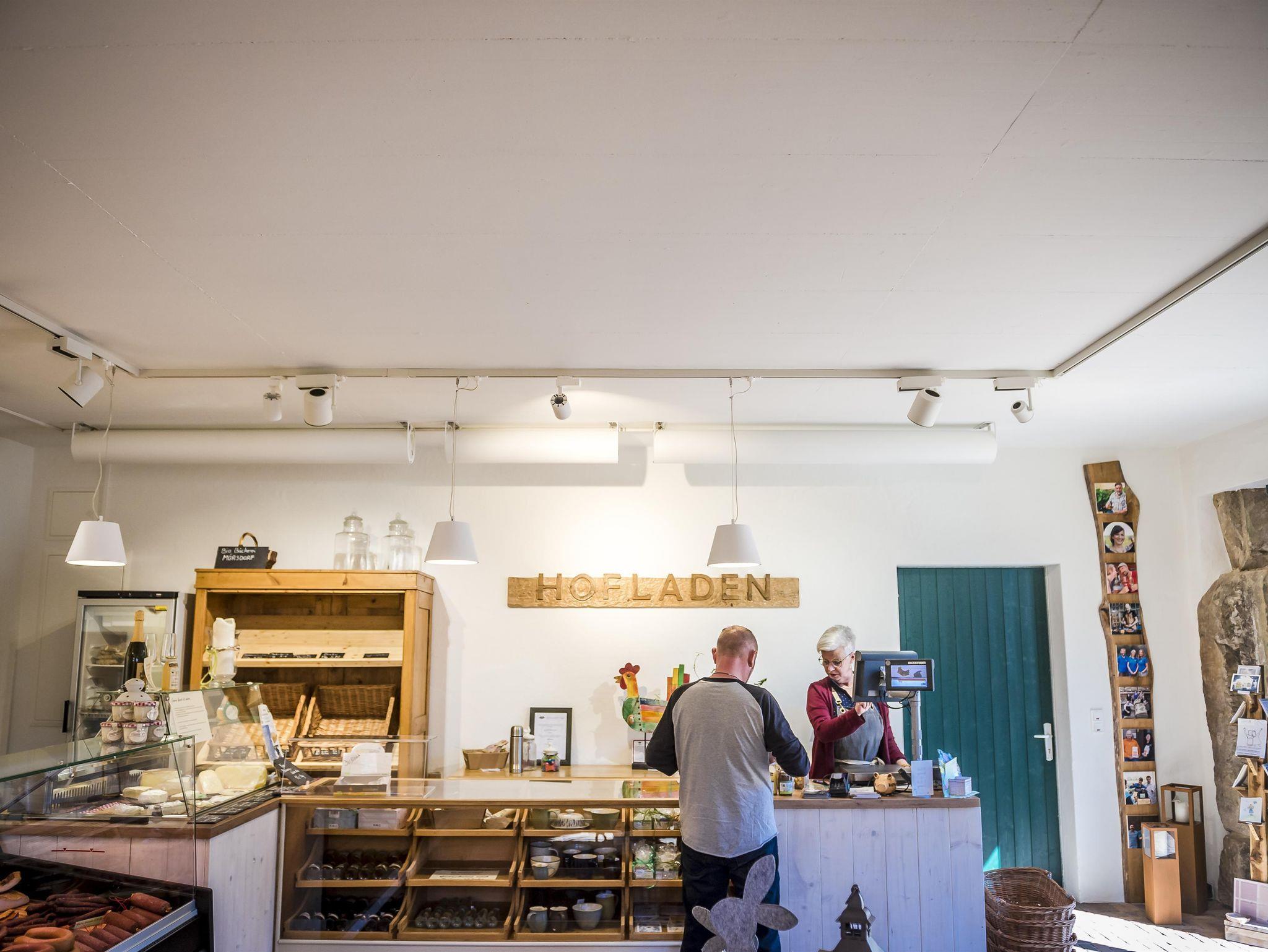 Lassen Sie sich in unserem Hofcafé und Hofladen mit hausgemachten Köstlichkeiten verwöhnen. In unserem Restaurantbetrieb im Hofcafé bietet unser Team Ihnen frische, saisonale Küche mit unserem hofeigenen Fleisch, hofgebackenen Kuchen und Torten sowie eine umfangreiche Getränkeauswahl mit Kaffeespezialitäten, hofgemachten Limonaden, frisch gezapftem Bier sowie Weinen ausgesuchter Winzer. Ab April können Sie unseren sonnigen Biergarten nutzen. Unsere Küche ist durchgehend geöffnet. Hofcafé geöffnet Freitag, Samstag, Sonntag und an Feiertagen.