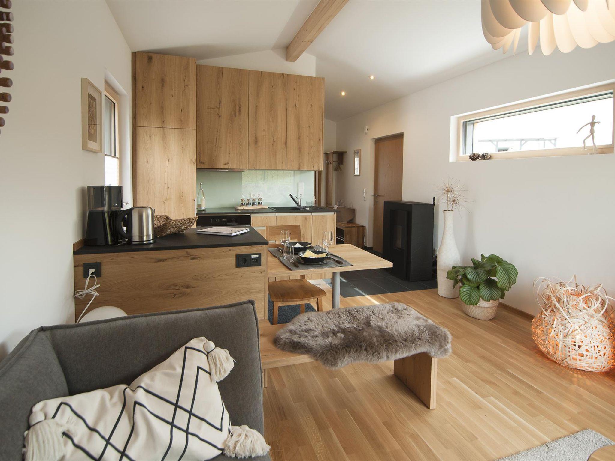 Dieses 48 m² große Ferienhaus ist perfekt für 2 Personen und bietet höchsten Komfort. Die voll ausgestattete Küche verfügt über Backofen, Ceranfeld, Kühlschrank & Kaffeemaschine. Das Badezimmer bietet Handtücher, Föhn & Kosmetikspiegel. Ein Pelletofen sorgt für wohlige Wärme. Für erholsamen Schlaf gibt es ein metallfreies Bett & schadstofffreie Matratzen. WLAN optional, TV & Elektrosmog-Schutz inklusive. Perfekt für eine entspannte Auszeit in natürlicher Umgebung!
